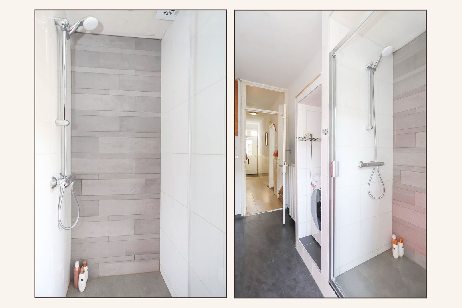Begane grond: Entree met trapkast, toiletruimte, toegang tot de woonkamer en toegang tot de keuken. De woonkamer is heerlijk licht door de grote raampartijen aan weerszijde en biedt veel ruimte voor een ruime zithoek, eethoek en zelfs voor een fijne werkplek. Verder is een sfeervolle gashaard aanwezig. Aan de achterzijde bieden openslaande deuren toegang tot de ruime achtertuin. De nette keuken is aan de achterzijde gelegen en is voorzien van alle gangbare inbouwapparatuur zoals een vaatwasser, koel-/vriescombinatie, 4-pitsgasfornuis en een oven. Ook is in de keuken de cv-ketel, de opstelplaats voor de was-droogmachine en de toegang tot de douche aanwezig.