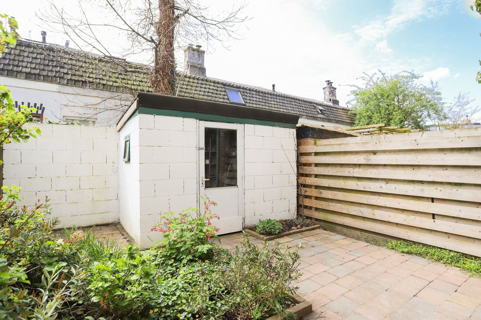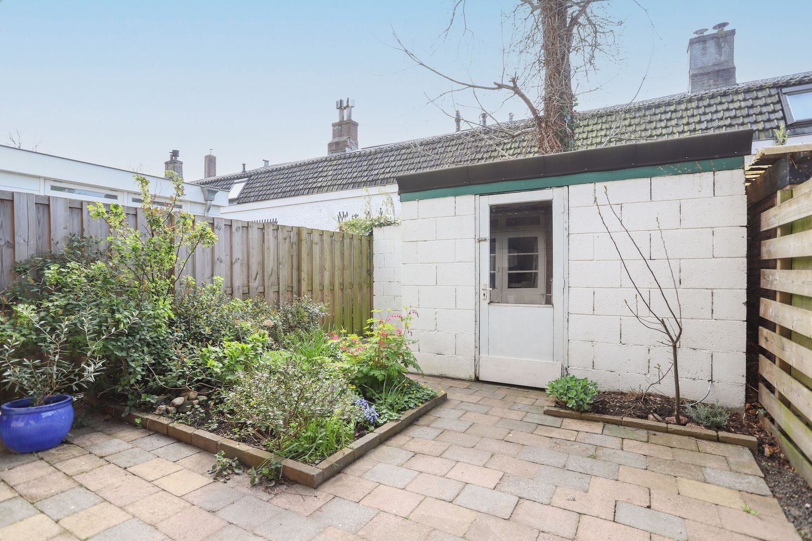 De achtertuin is gelegen op het zuidwesten en daardoor heerlijk zonnig. Onder de overkapping is het goed vertoeven en de tuin biedt voldoende ruimte voor een gezellige barbecue met familie of vrienden, zelfs als je de woning zou uitbouwen. Achter in de tuin staat een stenen berging, welke ideaal is voor het stallen van fietsen of als opbergruimte. Verder is de tuin voorzien van een terras en sfeervolle groene borders.