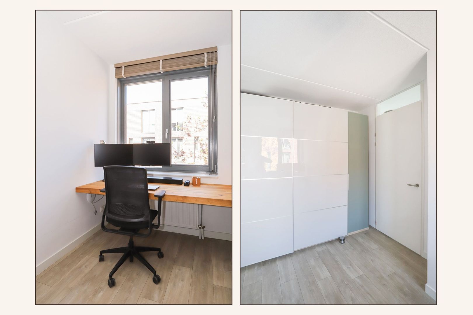 First floor: Landing with stairs to the second floor and access to three bedrooms and the bathroom. The largest two bedrooms are both spacious in size, these two are currently used as an office. However, due to their dimensions, these are both extremely suitable as a master bedroom. The third room is slightly smaller in size and is currently used as a guest room. However, this is not inferior to a good office or children's room, the possibilities are endless! The bathroom is located at the front of the house and is fully tiled in a modern style. Here is both a bath and a walk-in shower (with rain shower), and of course a washbasin with beautiful furniture and a second toilet.