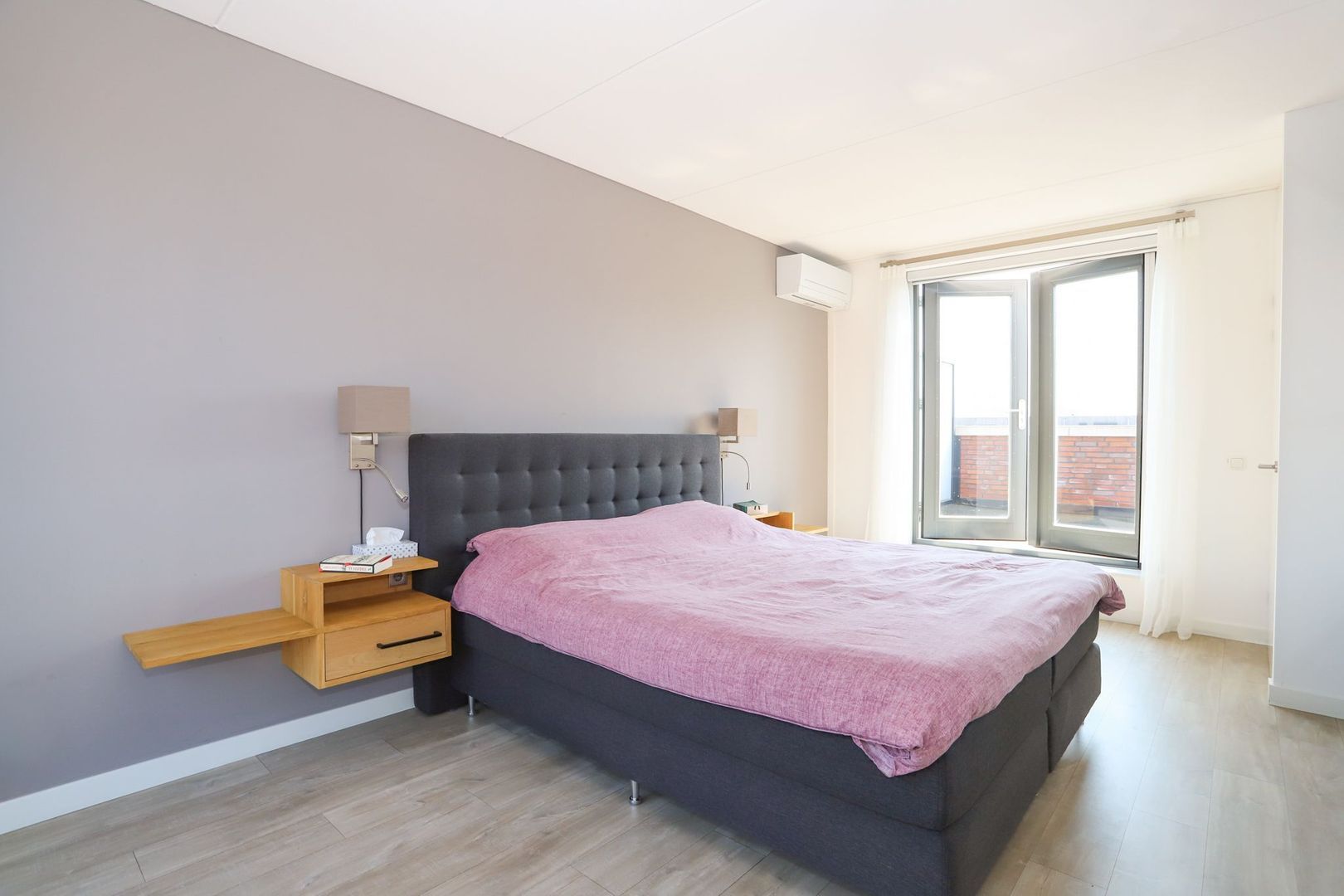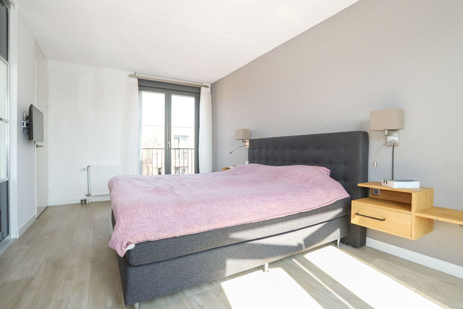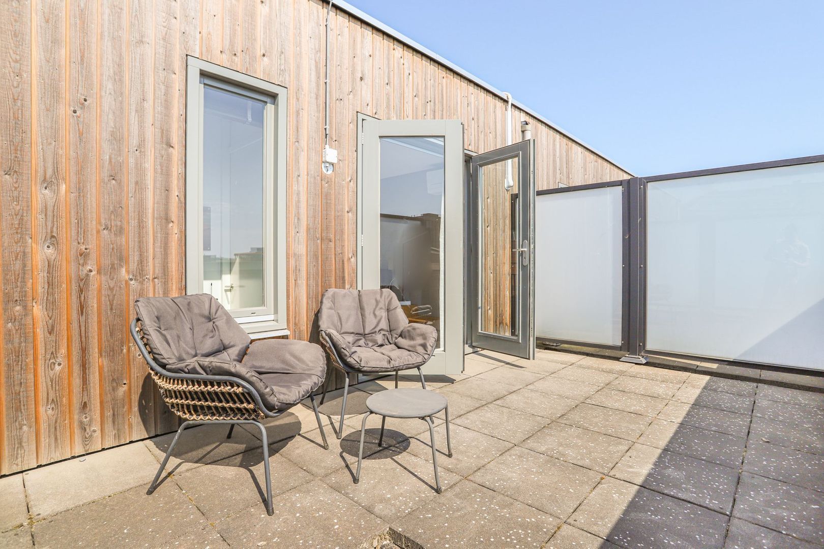 The garden can be entered through the patio doors in the living room and is located on the east. This is beautifully landscaped with a nice combination of terrace and greenery, making it a good place to stay. In the summer, the sun is present here from early in the morning until the end of the afternoon. In addition, the garden is equipped with a practical storage room and a back entrance. The back opens onto a shared courtyard with a private parking space. This courtyard is closed and you share it with the neighbours, for which a VvE has been established. Everything is well maintained, a few times a year even a gardener comes by. The periodic contribution for this is currently €30.50 per month.