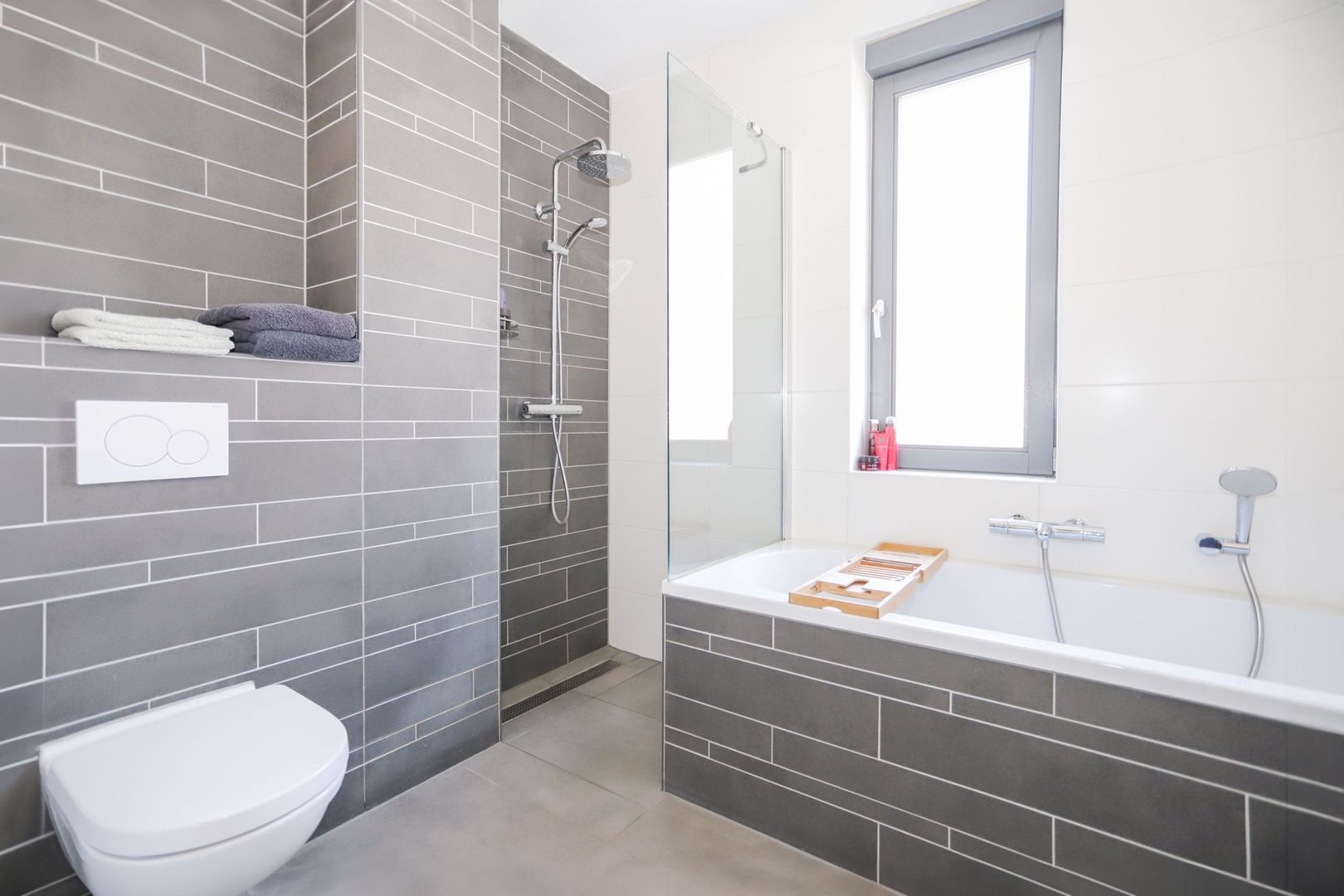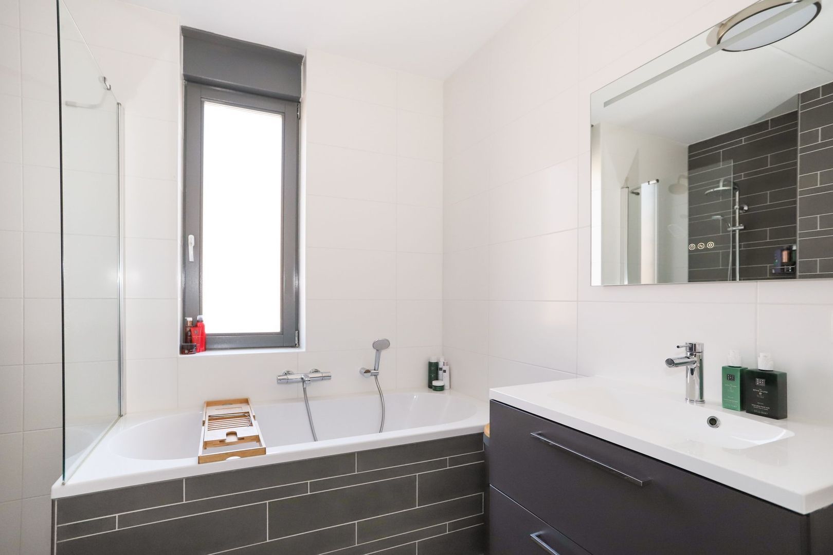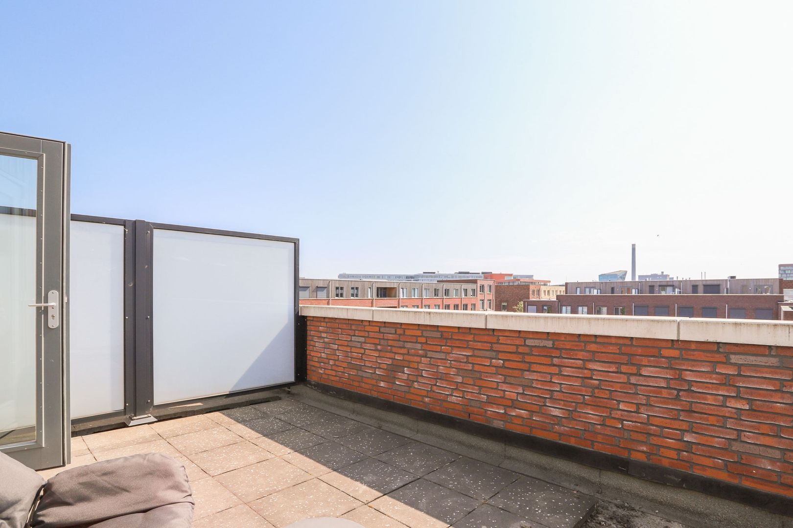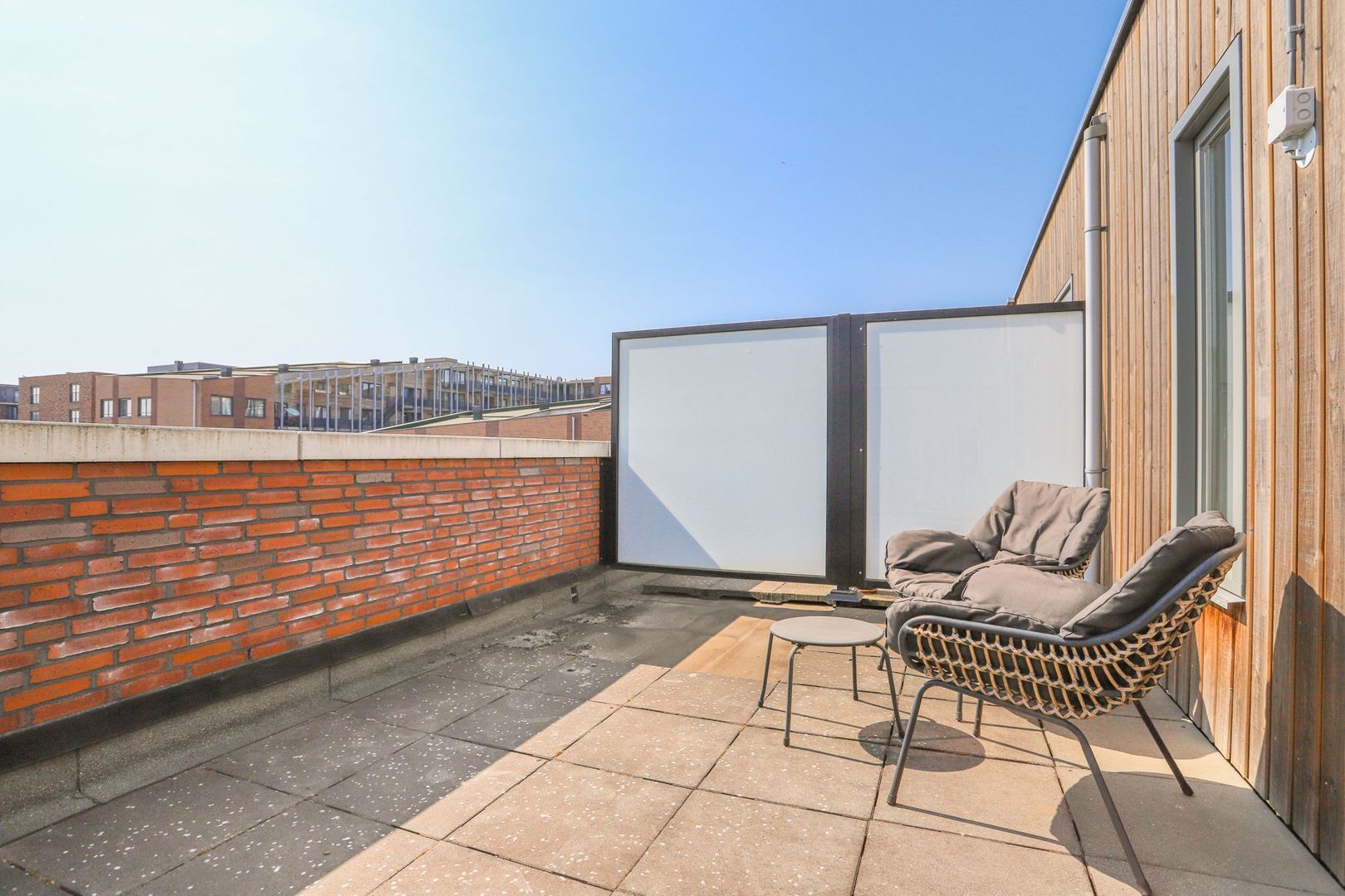 The house currently comprises a spacious living room with an open, modern L-shaped kitchen with built-in appliances. The living room has an attractive wooden floor and sleek wall and ceiling finishes. The spacious and sunny backyard with storage room and back is reached through the patio doors. On the first floor, in addition to the modern bathroom, no less than three spacious bedrooms have been created with different but good dimensions. The bathroom has also been optimized with the presence of a bath, separate walk-in shower, toilet and sink. All this with a modern and contemporary look. The well thought-out layout makes the second floor particularly practical to use. The spacious bedroom floor is equipped with a large cupboard wall and a separate storage/laundry room. This floor also has its own roof terrace of approx. 18 m2!