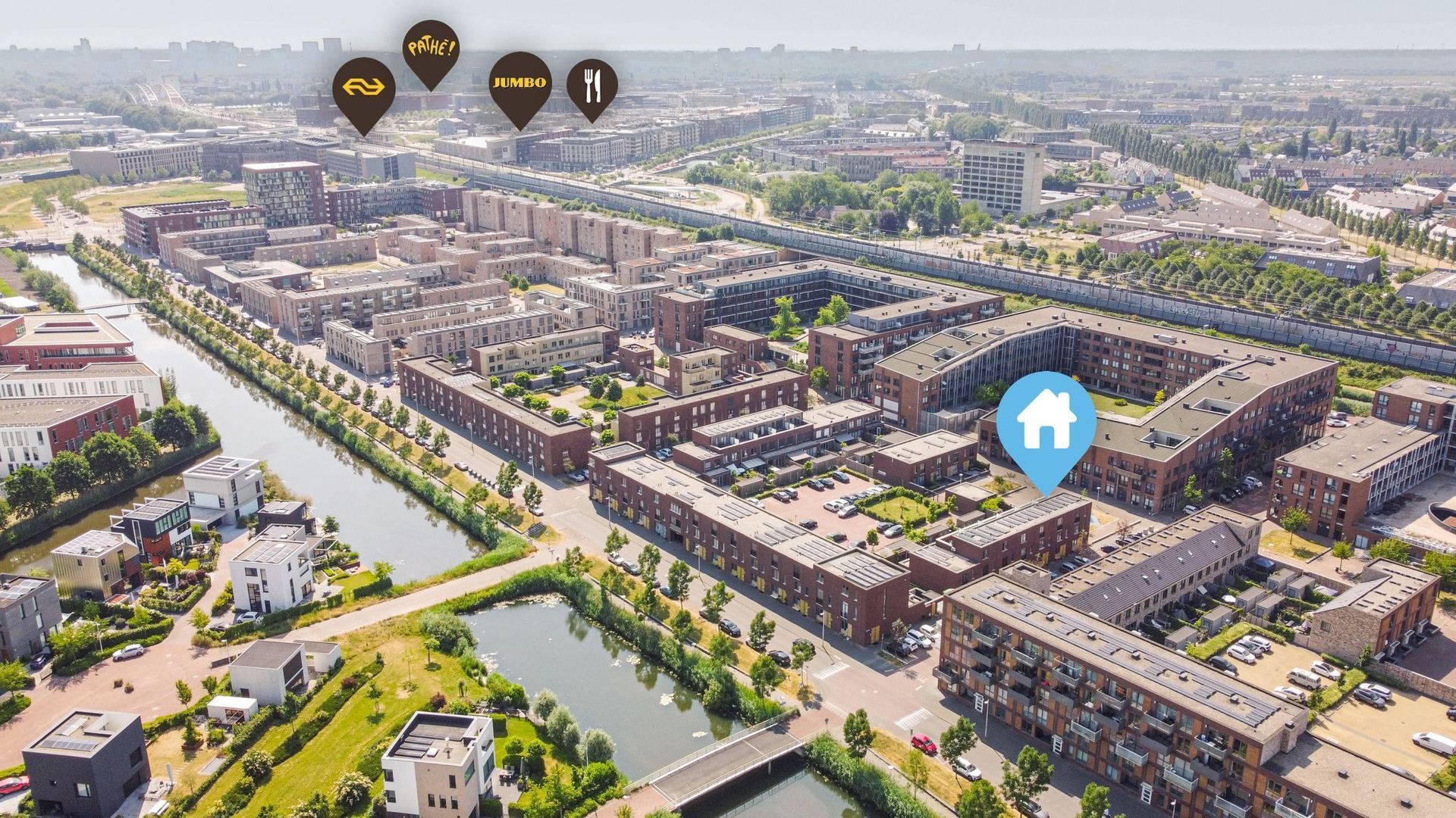 The John Coltranestraat is located in the child-friendly neighborhood of Terwijde. The district has various schools, its own neighborhood shopping center and railway station, so that all facilities are within easy reach. The district is spacious with many green areas and water features, Maximapark with Het Lint can also be reached within a few minutes. Here you can enjoy walking, cycling or even swimming in the adjacent Haarrijnse Plassen in the summer.