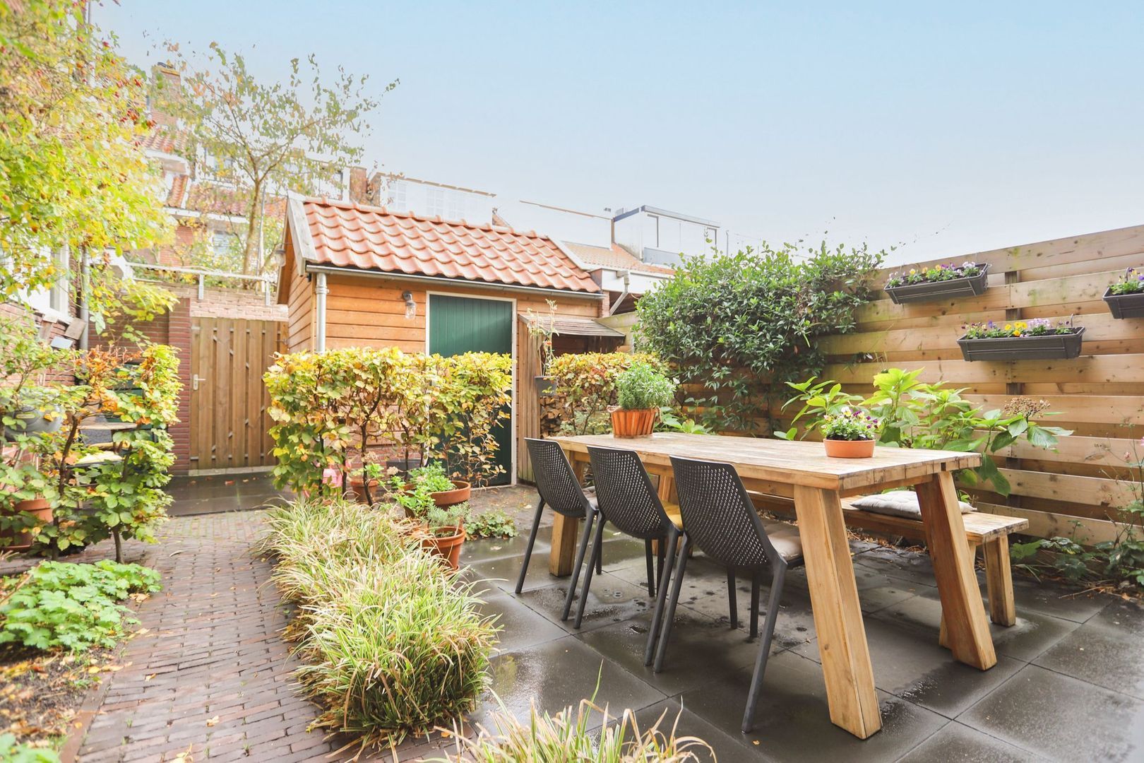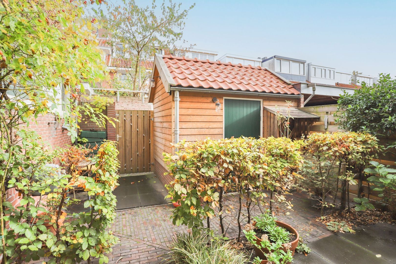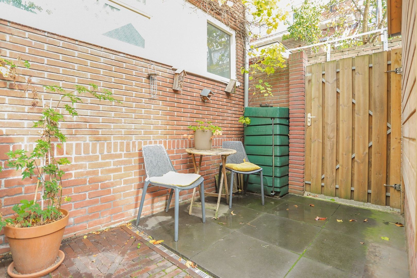 De achtertuin is te betreden via de deur in de keuken of de openslaande deuren in de eetkamer. De tuin is van ruim formaat en volledig vernieuwd in 2016.