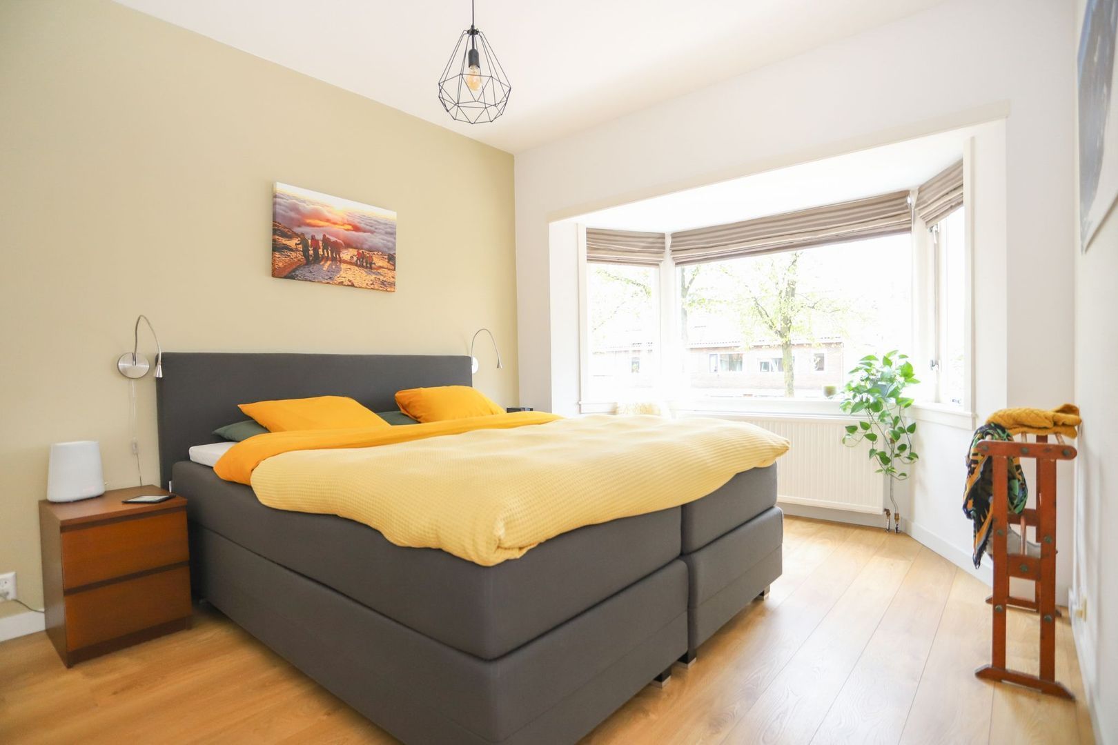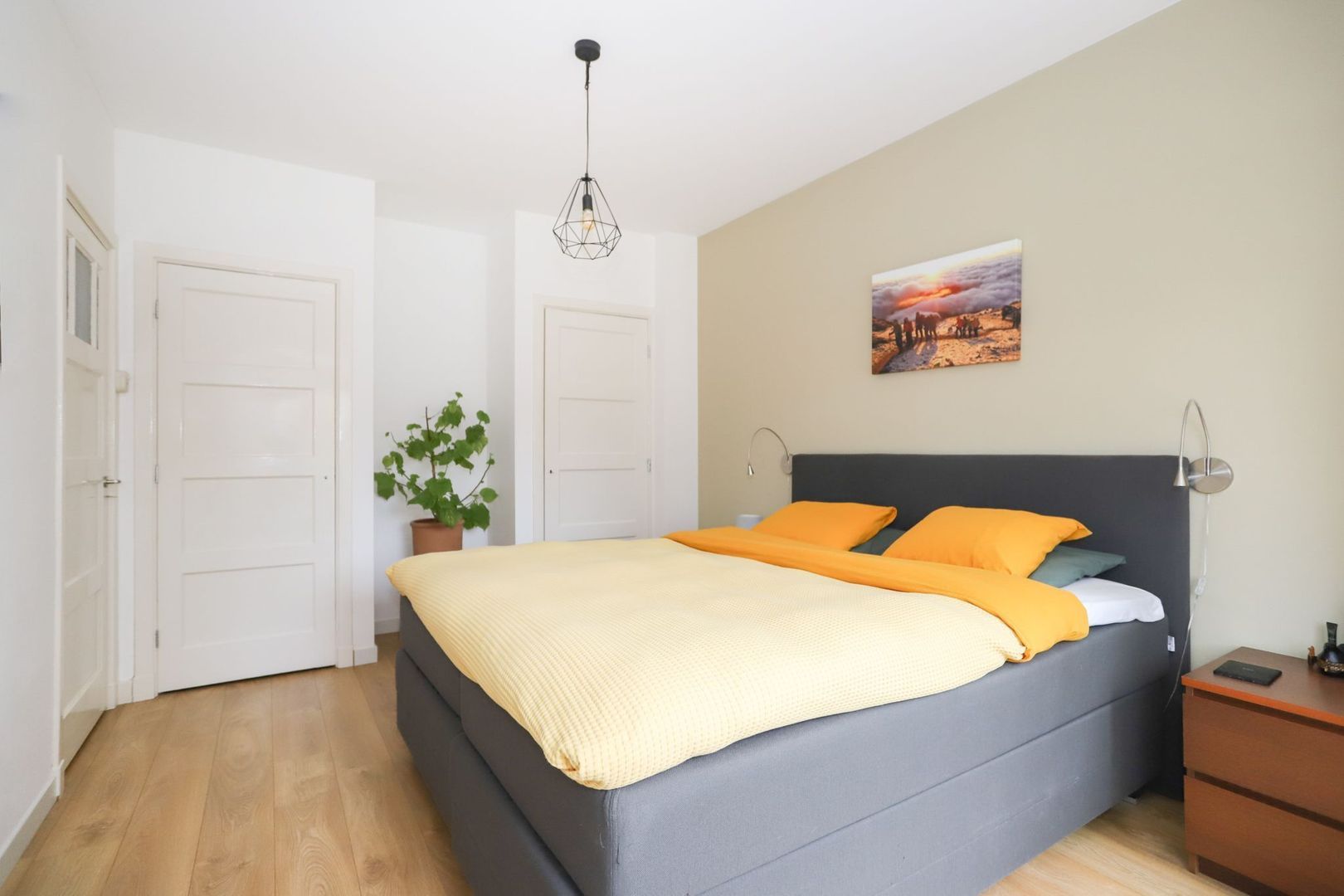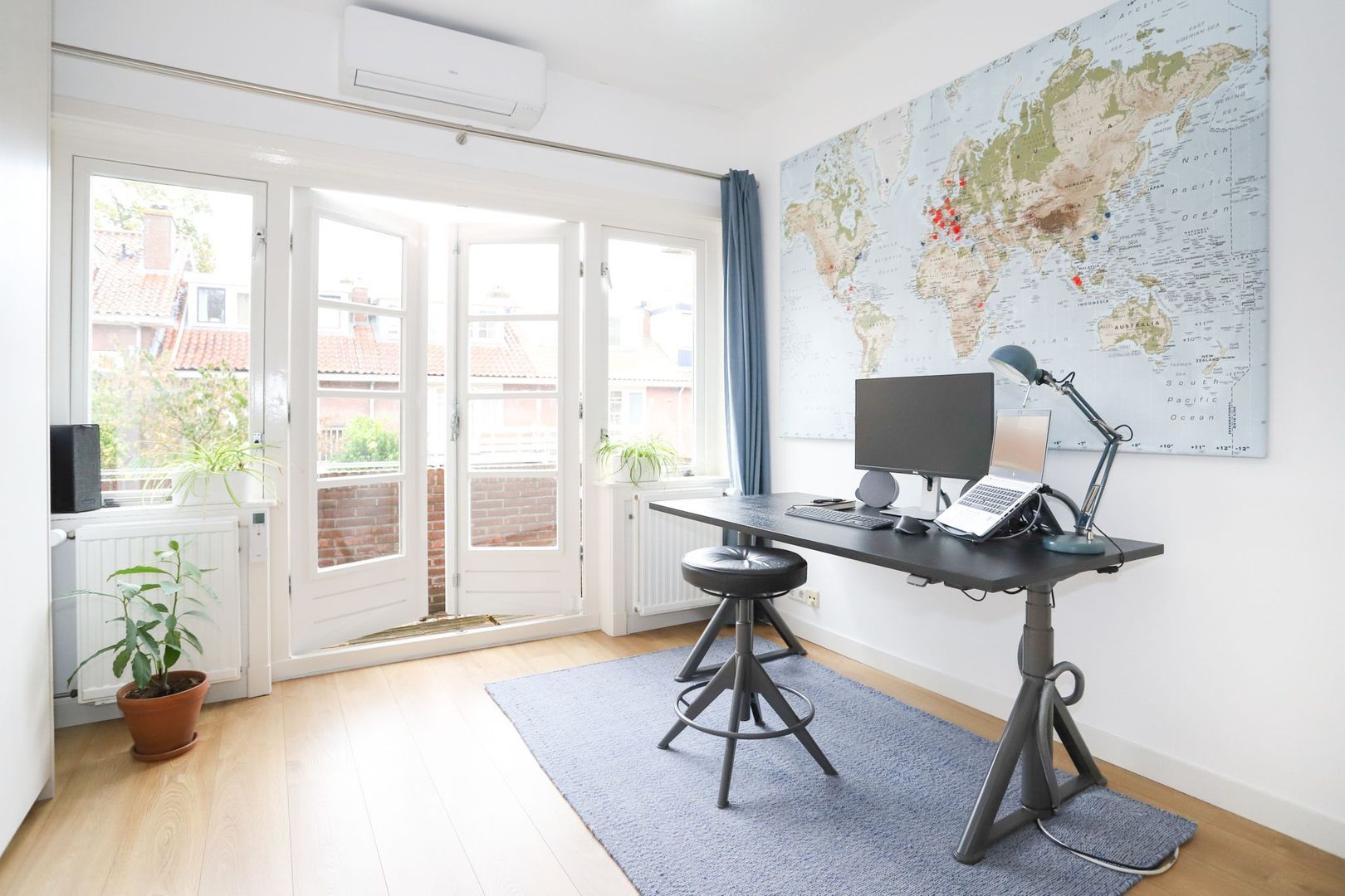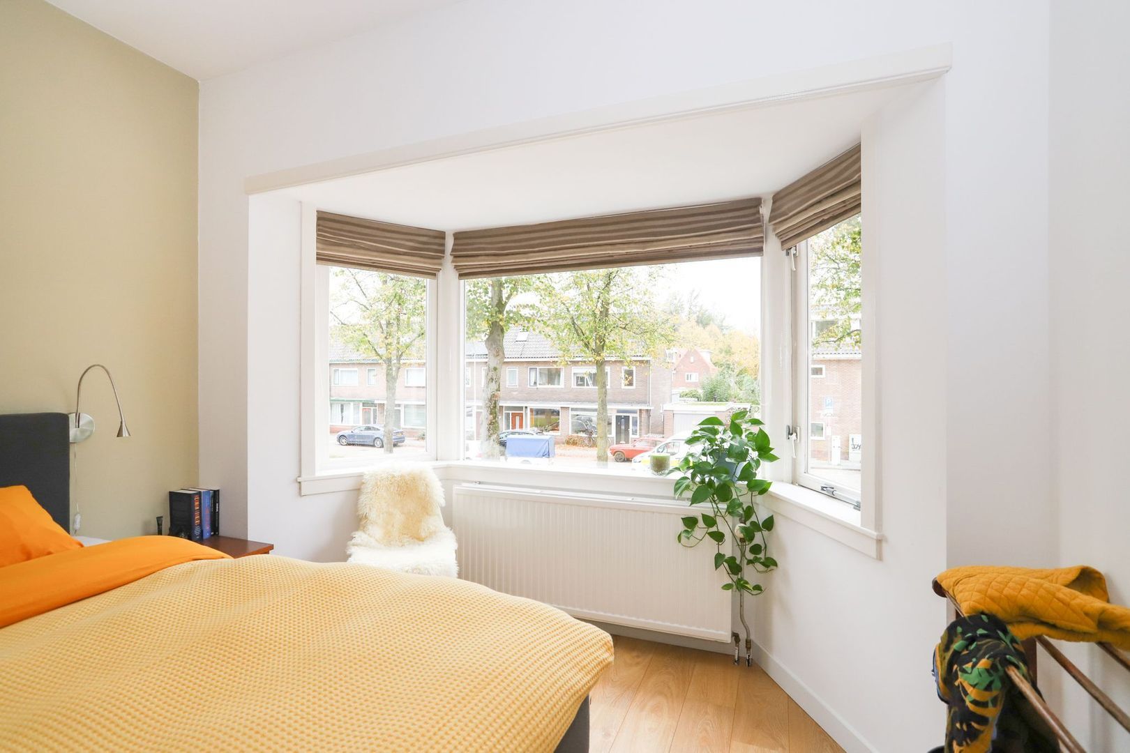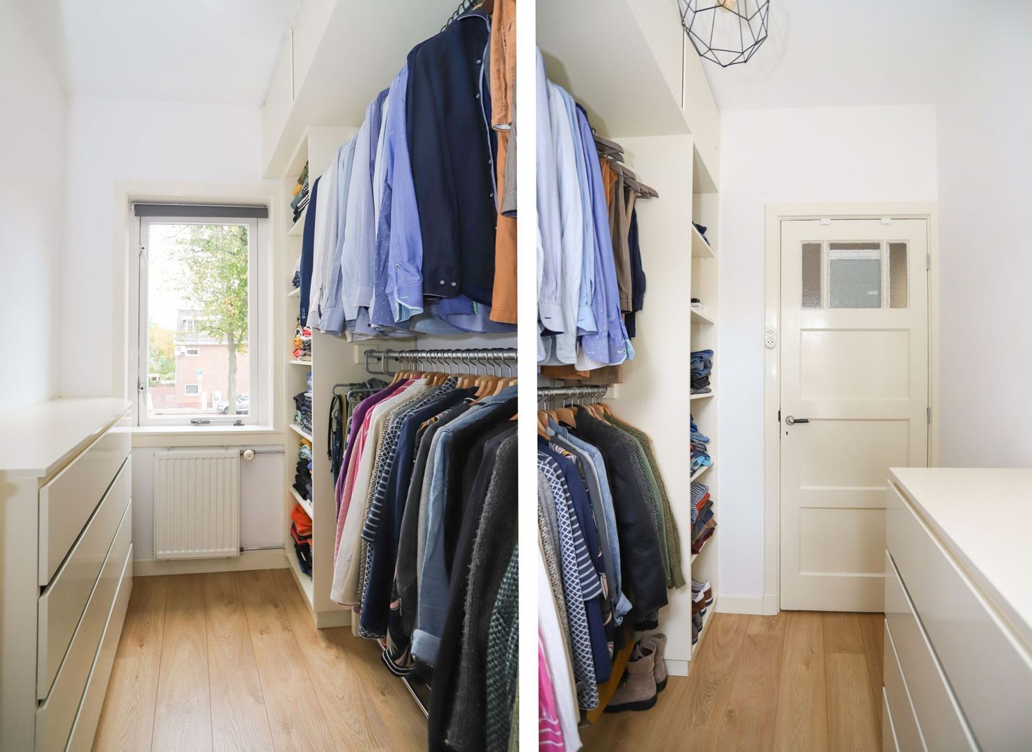 Eerste verdieping: Overloop met trapopgang naar de tweede verdieping, toegang tot drie kamers, badkamer en aparte toiletruimte. De erker op de begane grond is op de eerste verdieping doorgetrokken en bied zicht op de hele straat. De slaapkamer aan de achterzijde biedt daarnaast middels openslaande deuren toegang tot het balkon. Wat ervoor zorgt dat op deze verdieping twee ruime en lichte slaapkamers aanwezig zijn. Beide kamers zijn voorzien van authentieke vaste kasten. De derde kamer op deze verdieping is momenteel in gebruik als inloopkast, echter kan deze ook uitstekend als werkkamer of babykamer worden gebruikt. De badkamer is voorzien van grote tegels in neutrale kleuren. De efficiënte indeling maakt dat de badkamer van alle gemakken voorzien is zoals een ligbad, inloopdouche, ruime wastafel met meubel en een handdoekenradiator. De separate toiletruimte is voorzien van dezelfde tegels als de badkamer en van wandcloset en fonteintje.
