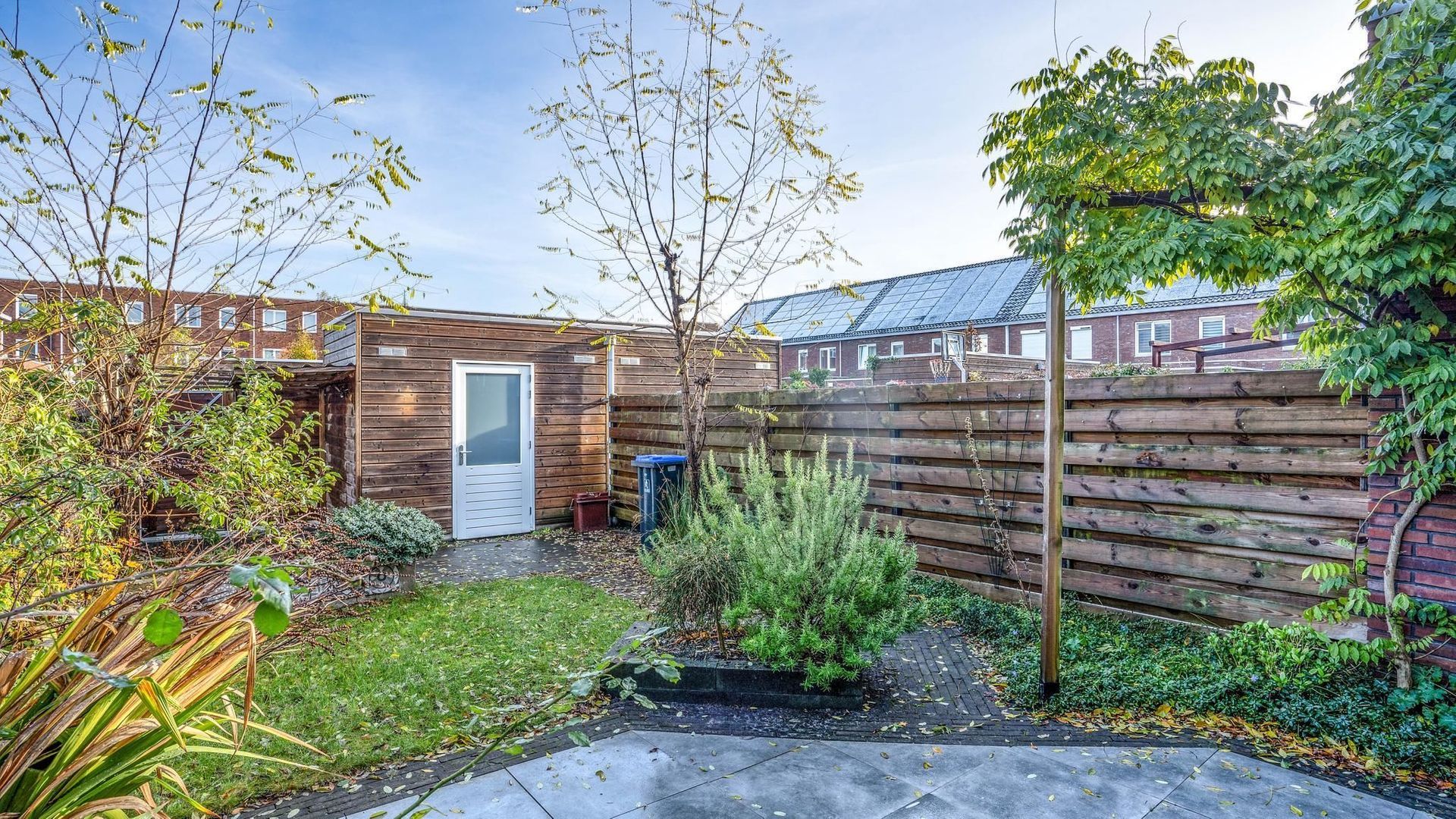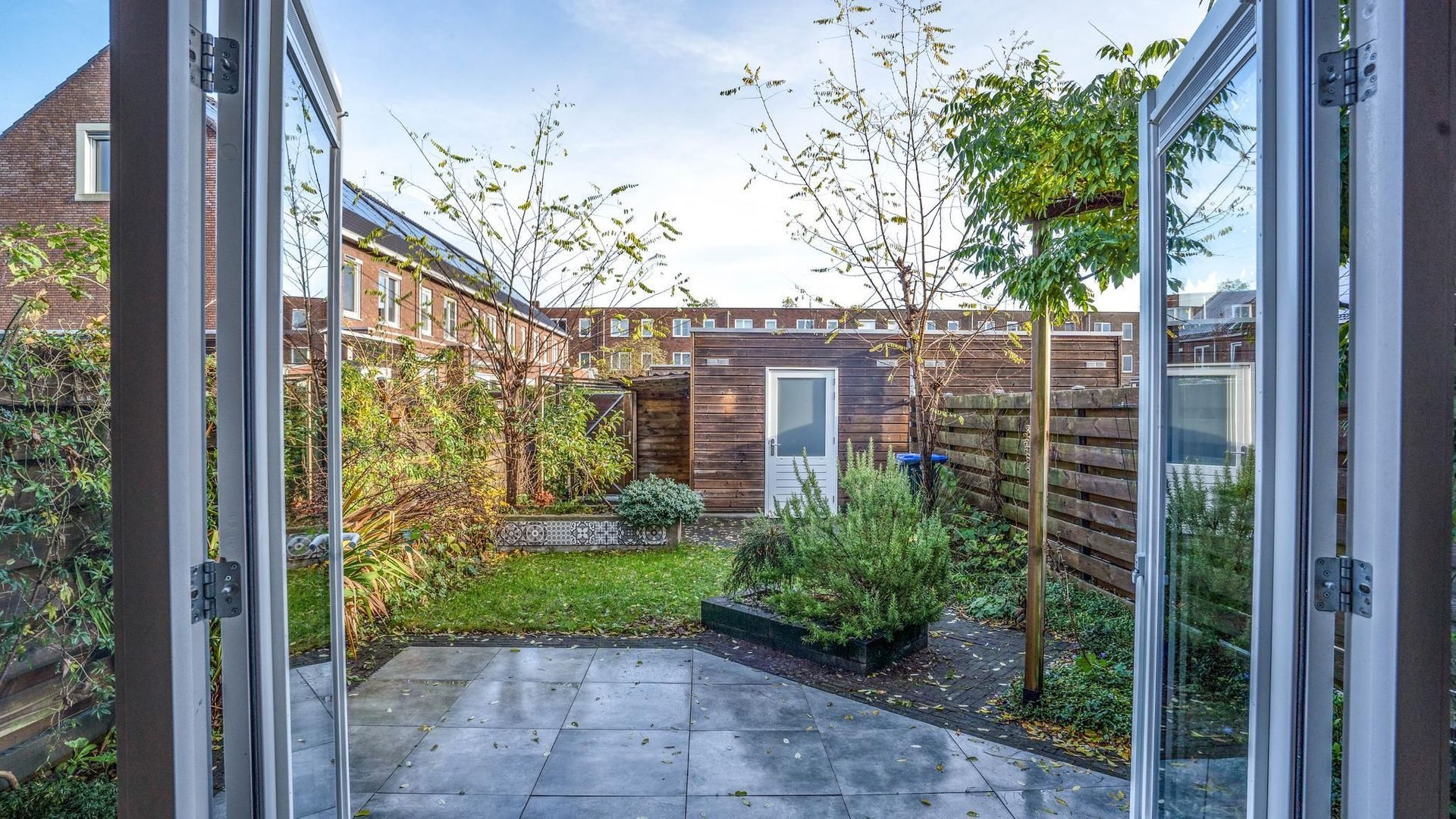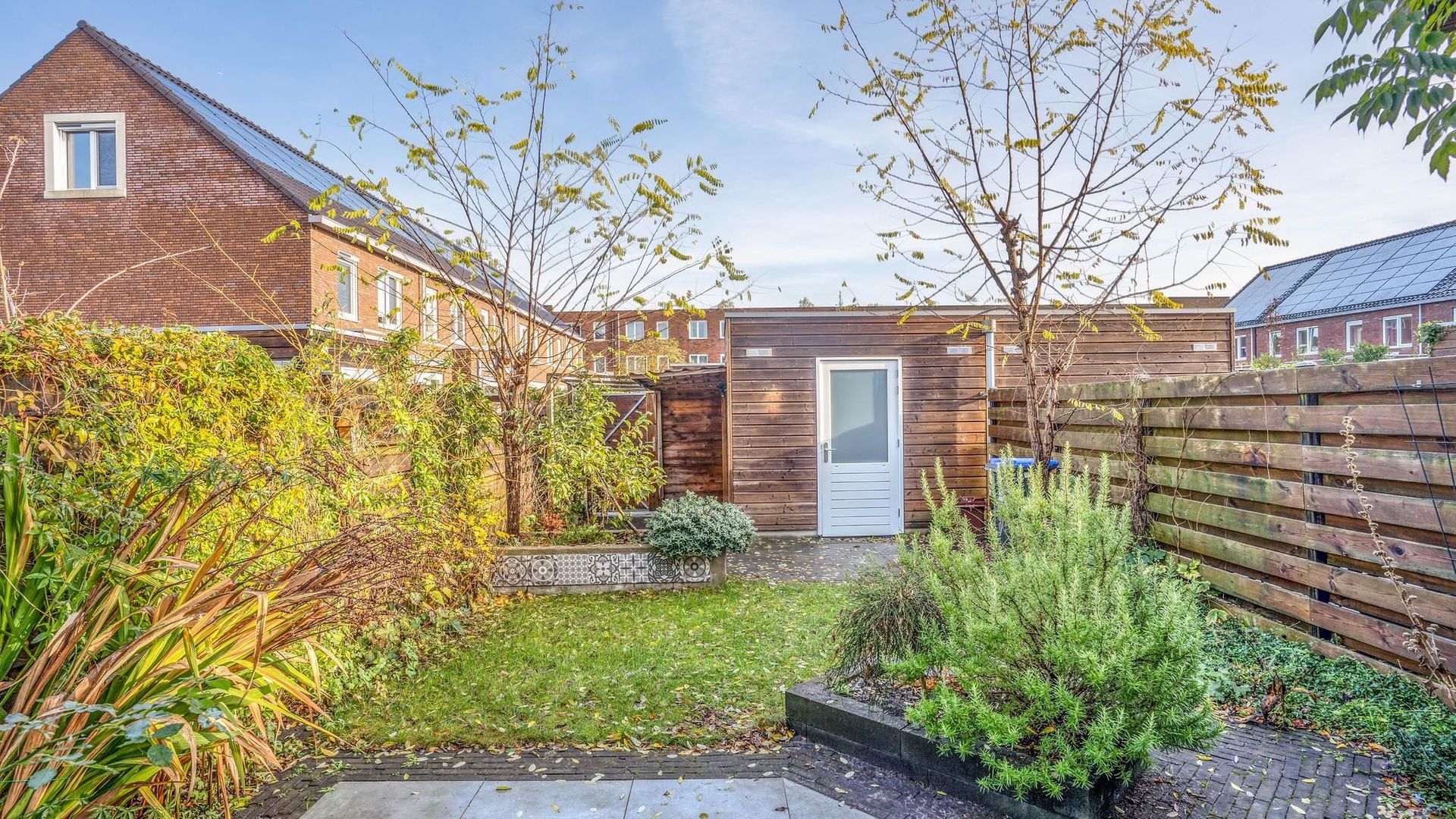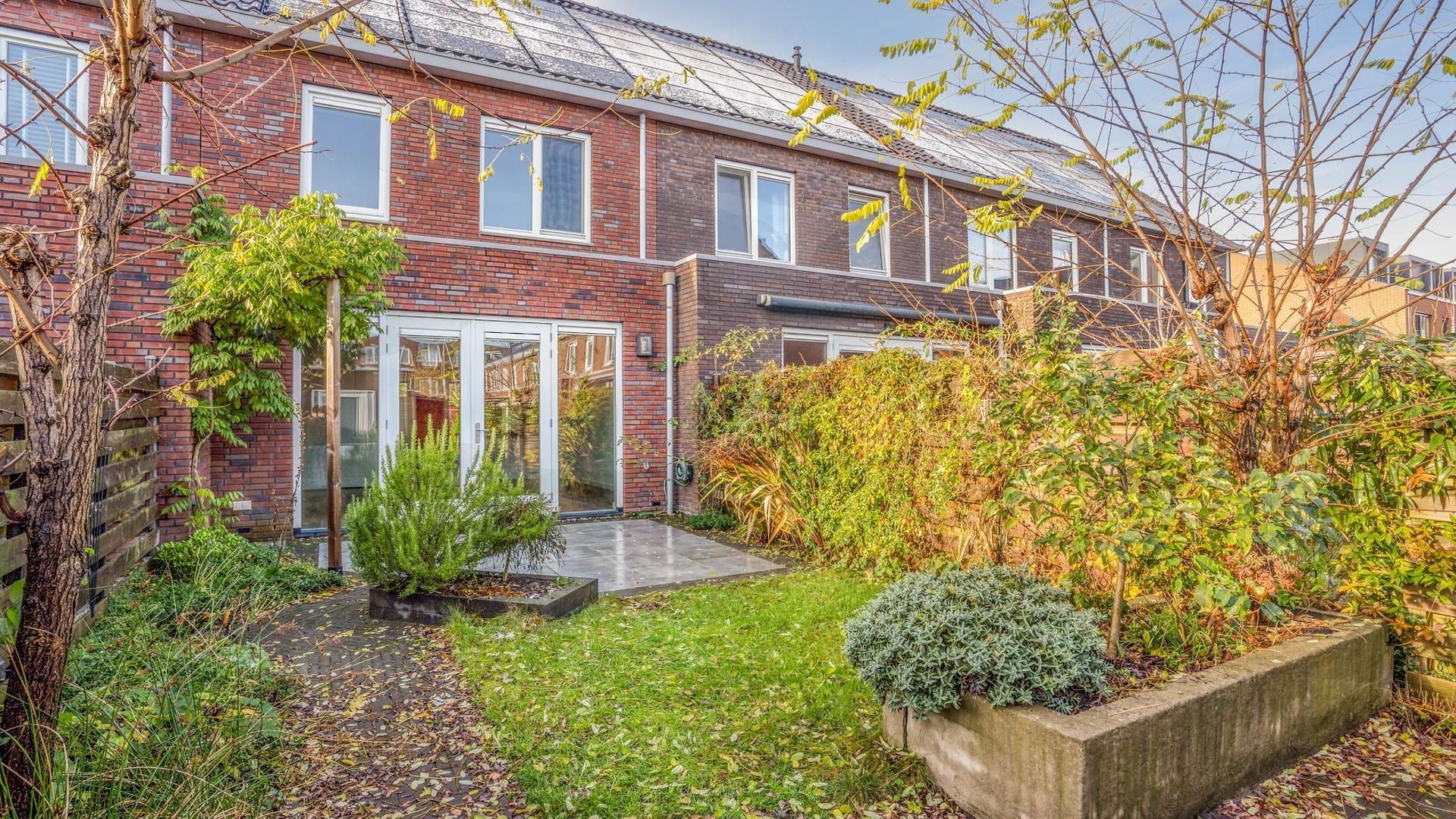 • Voortuin (west) en achtertuin (oost) waardoor er altijd een plek in de zon én schaduw te vinden is (achtertuin voorzien van achterom en berging);