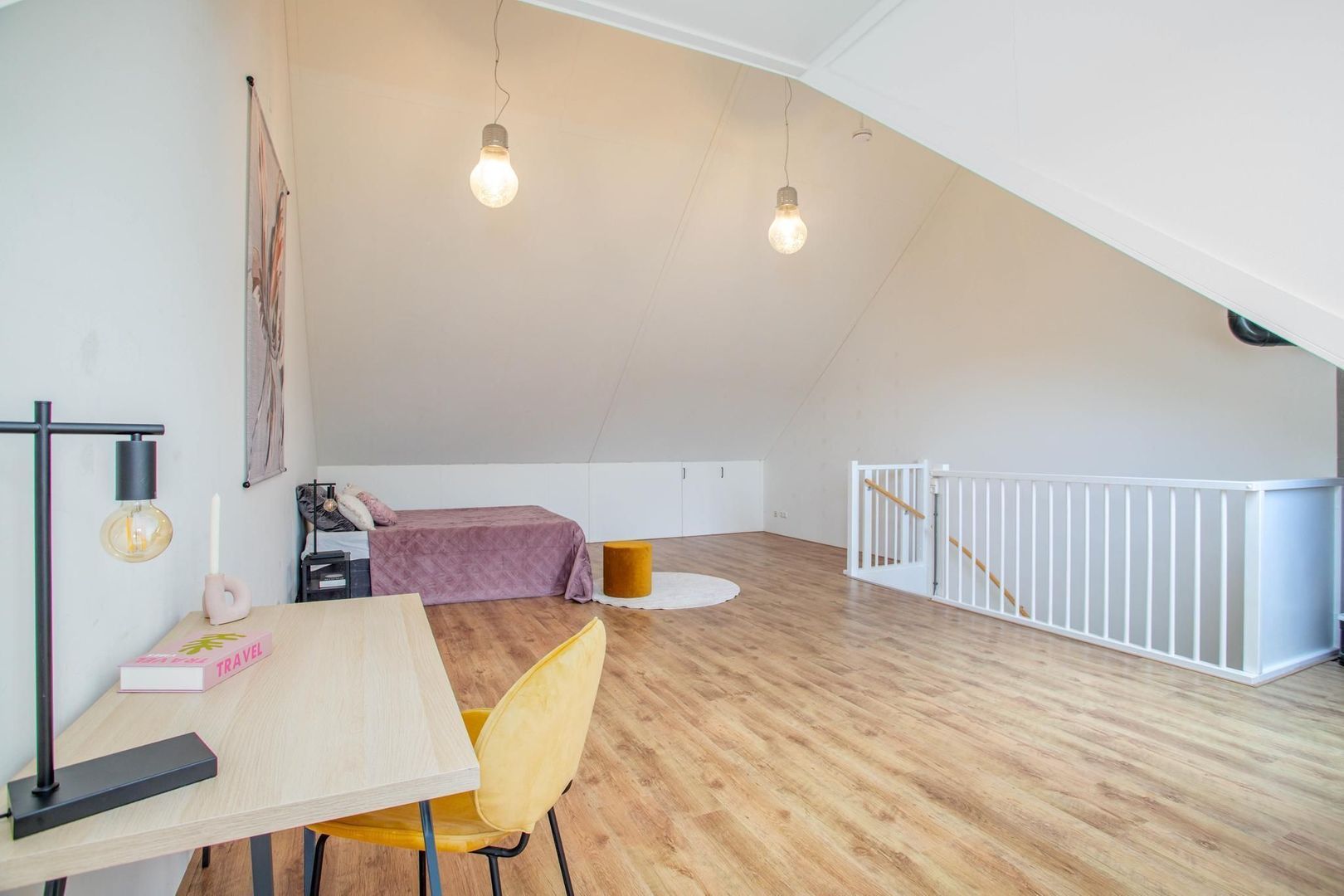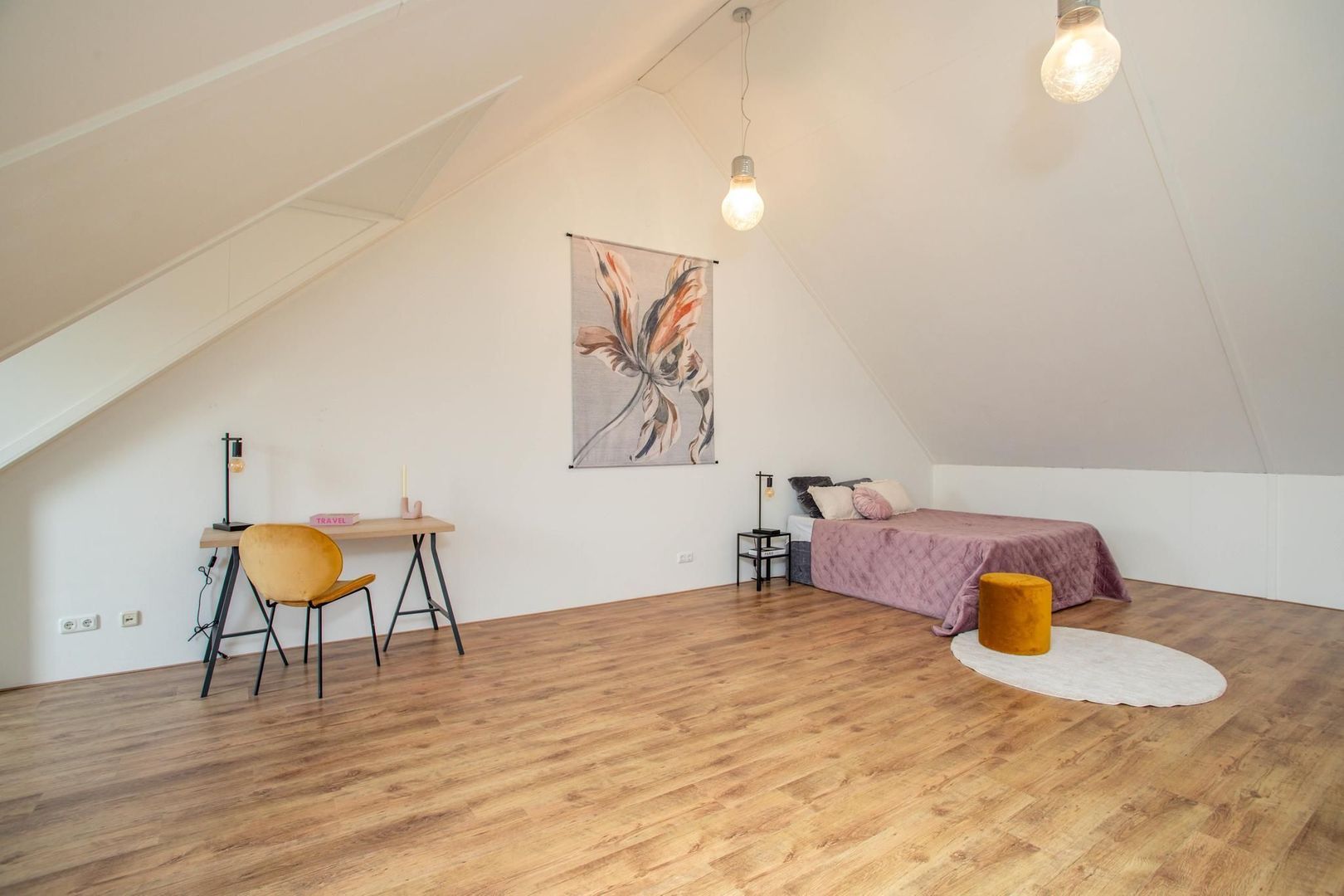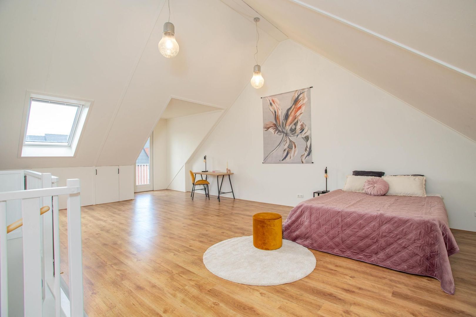 De ruime zolder is multifunctioneel. Hier bevinden zich de verwarmingsinstallaties en aansluitingen voor de wasmachine en droger. De open ruimte biedt de mogelijkheid om naar eigen wens in te richten en biedt ruimte voor het realiseren van twee extra slaapkamers.