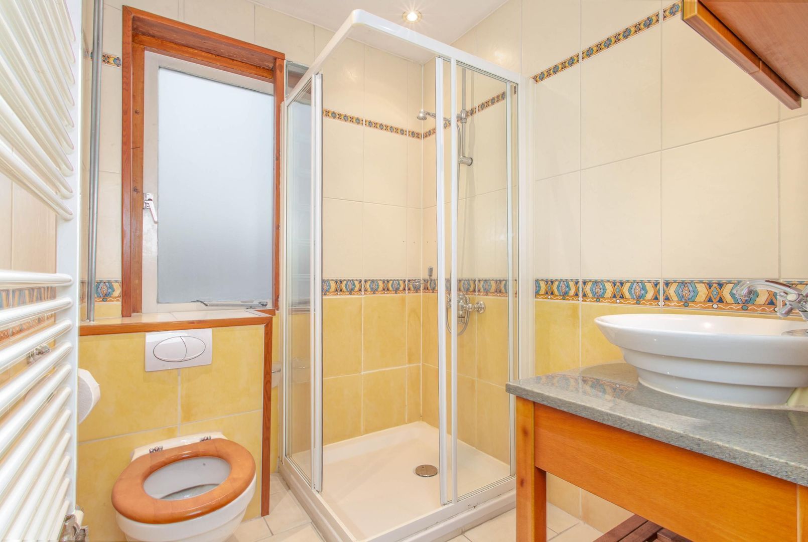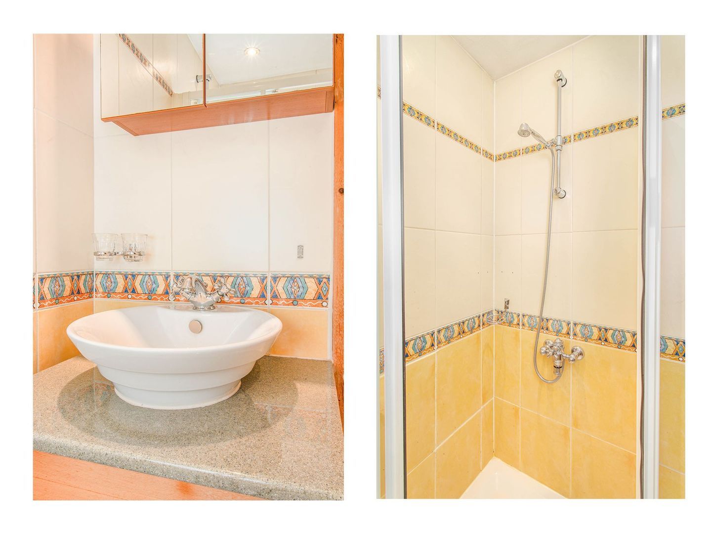 De badkamer is voorzien van een douche, een wastafel en een tweede toilet. De eerste verdieping is uitgerust met een eiken laminaat parketvloer.