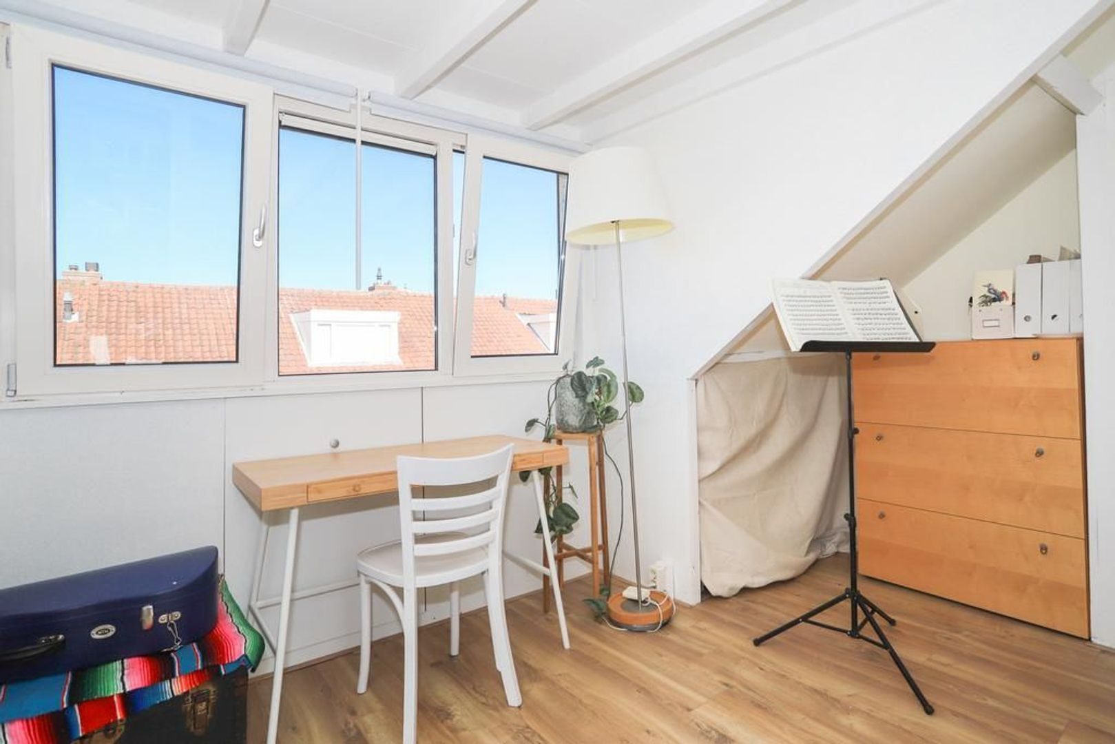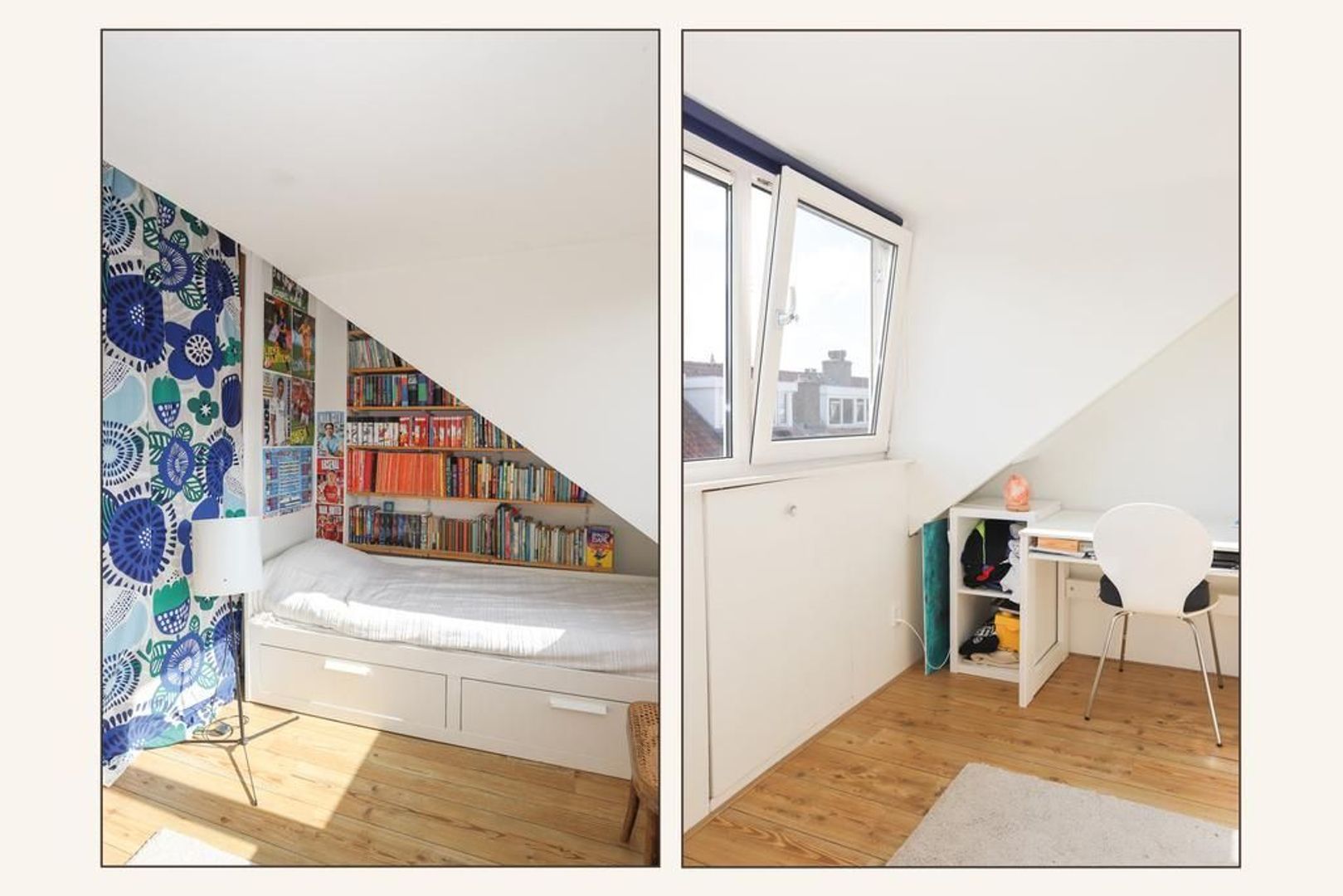 Tweede verdieping: Overloop met toegang tot twee slaapkamers, waarvan de slaapkamer aan de voorzijde momenteel in gebruik is als werkkamer. Deze heeft een wasmachineaansluiting, waardoor je deze kamer ook uitstekend kunt gebruiken als waskamer. Beide slaapkamers zijn voorzien van een dakkapel met hieronder veel opbergmogelijkheden. De slaapkamer aan de achterzijde heeft daarnaast een vaste kast.