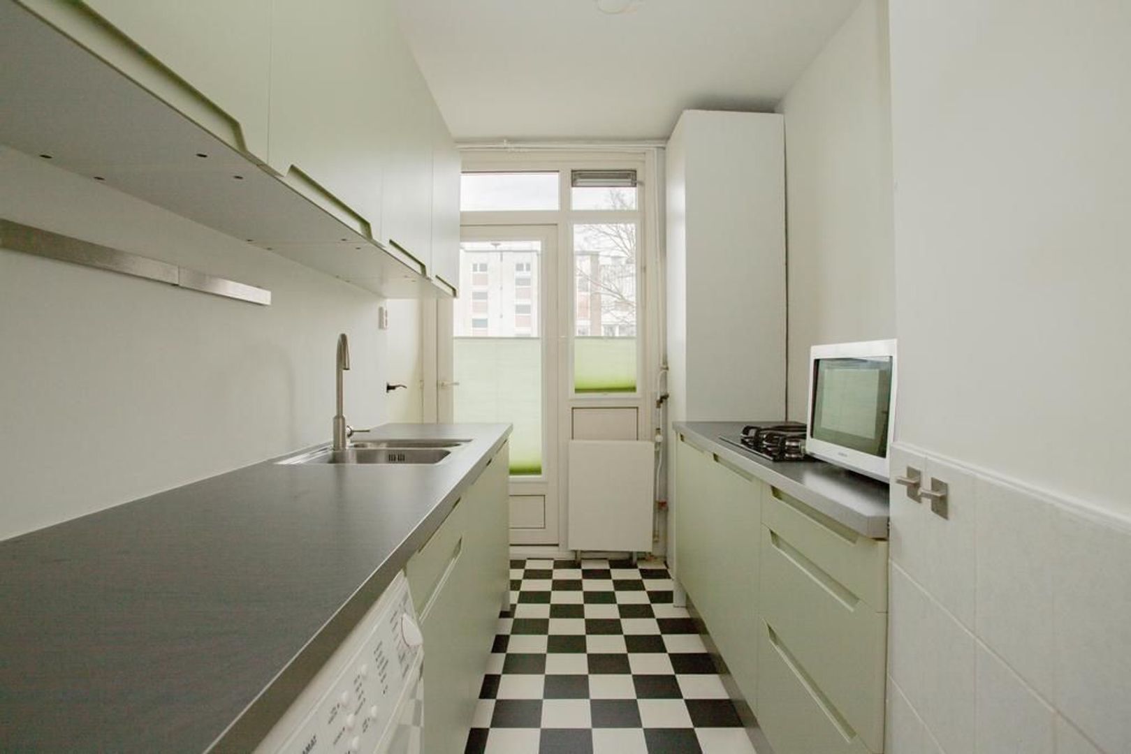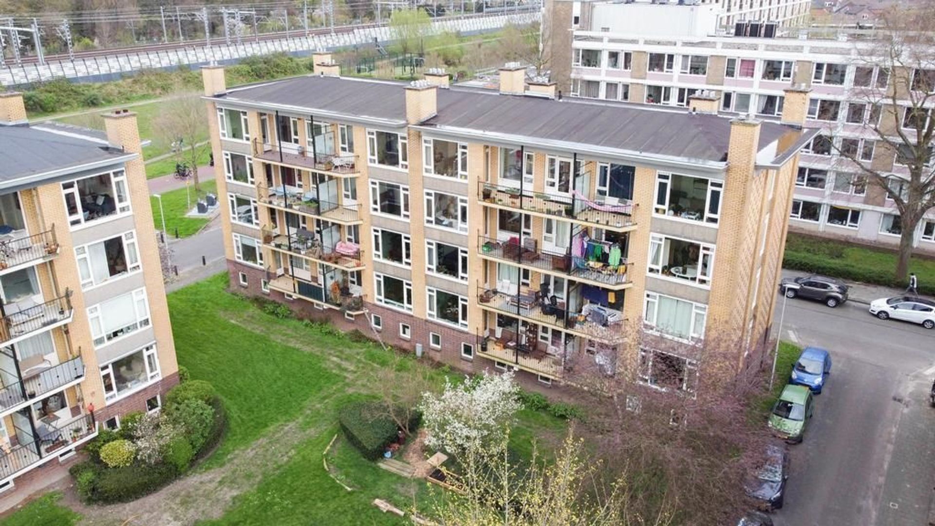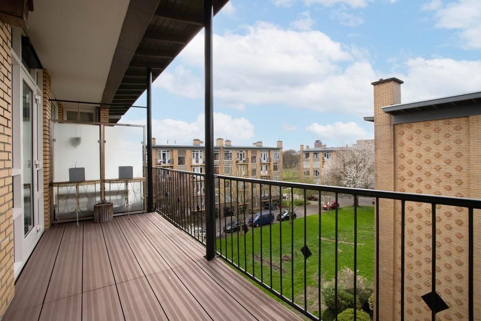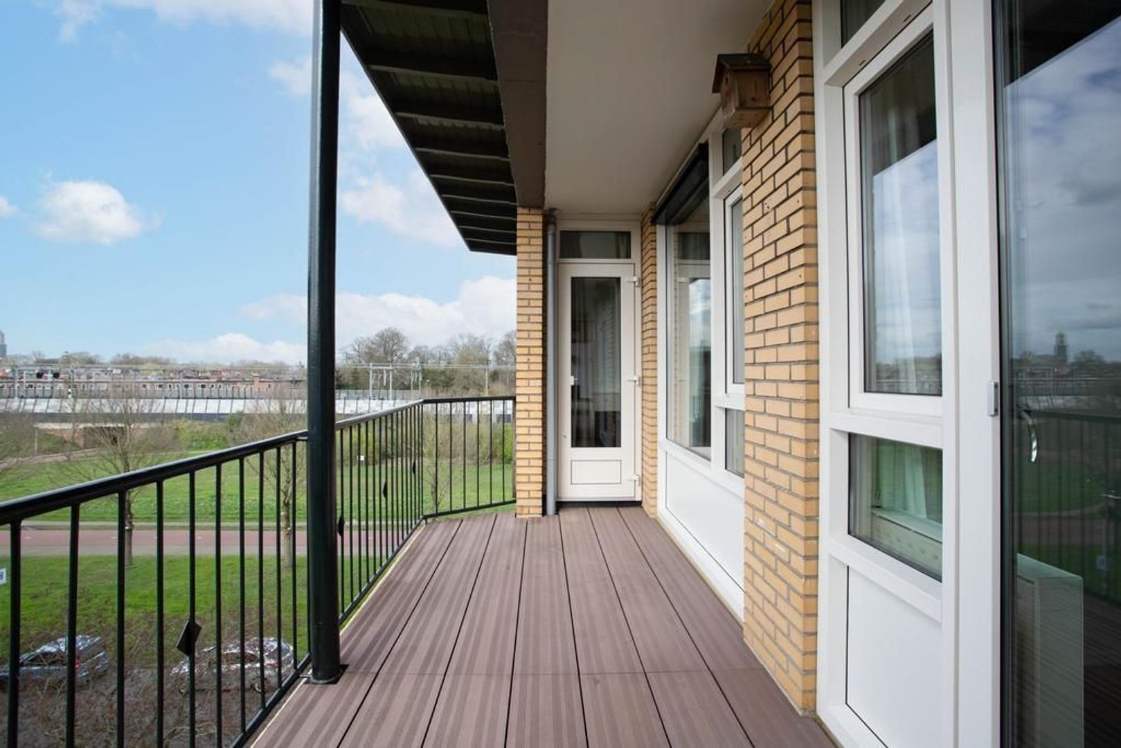 Via de woonkamer en slaapkamer aan de achterzijde is het grootste balkon toegankelijk. Vanaf dit balkon heb je vrij uitzicht over het plantsoen en op de skyline van de Utrechtse binnenstad met de Domtoren. Het tweede balkon is toegankelijk vanuit de keuken. Dit is de plek waar je 's ochtends heerlijk met je kop koffie van de zon kan genieten.