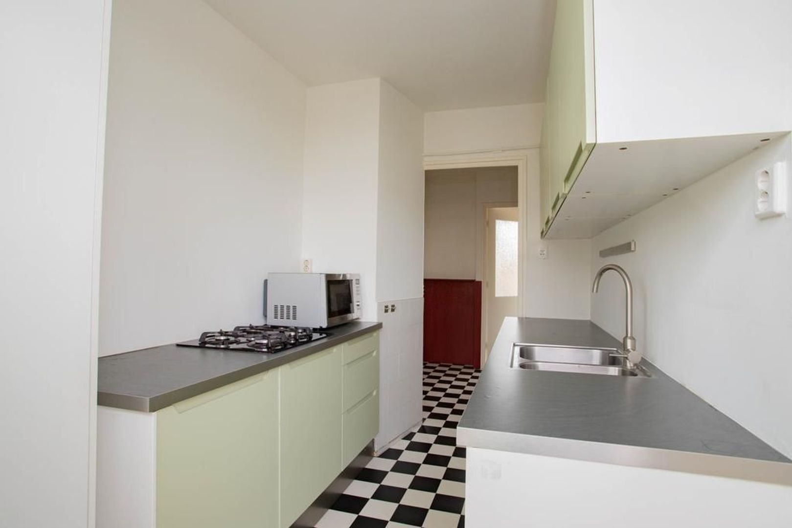 Vanuit de hal is de keuken toegankelijk. De keuken is met zorg onderhouden en is voorzien van het volgende inbouwapparatuur: een 4-pitsgasfornuis, vaatwasser en koelkast. Daarnaast is er in de keuken de mogelijkheid voor het plaatsen van de wasmachine.