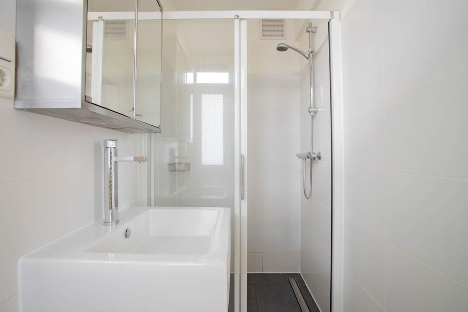 Vanuit de keuken en de eerste slaapkamer is de badkamer toegankelijk. De badkamer heeft een moderne uitstraling en is voorzien van een verzorgde afwerking, douche en wastafel. Deze woning beschikt over twee slaapkamers. Beide slaapkamers zijn ruim van formaat en bieden de mogelijkheid voor het plaatsen van een tweepersoonsbed en kledingkast.