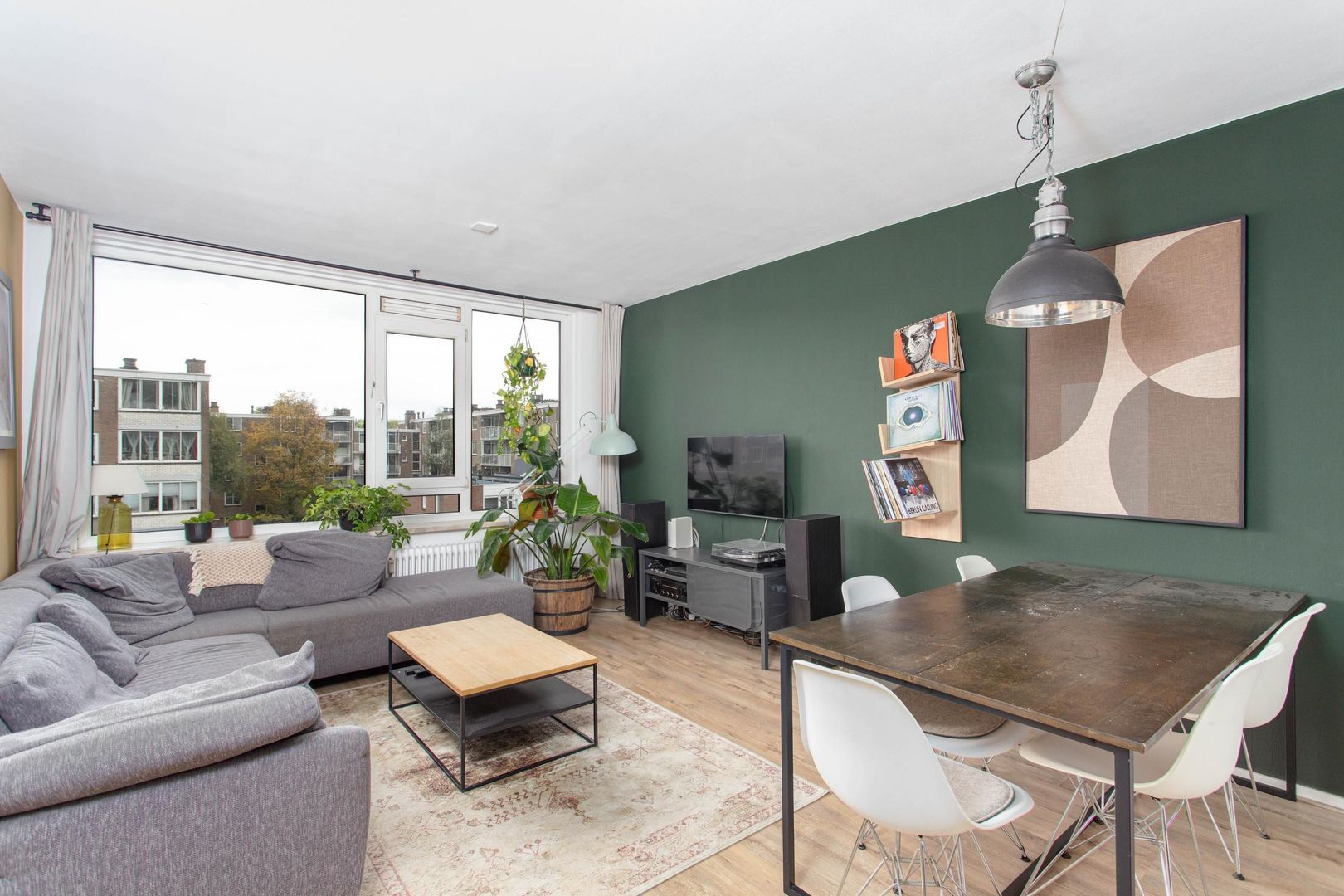 Dit efficiënt ingedeelde appartement beschikt over maar liefst vier kamers en een zonnig balkon. De woonkamer is ruim van formaat en biedt plaats aan een riante zit- en eethoek. Desgewenst kan een wand worden verwijderd om een nóg grotere woonkamer te creëren, met in dat geval aan beide zijden prettig lichtinval door de grote raampartijen.