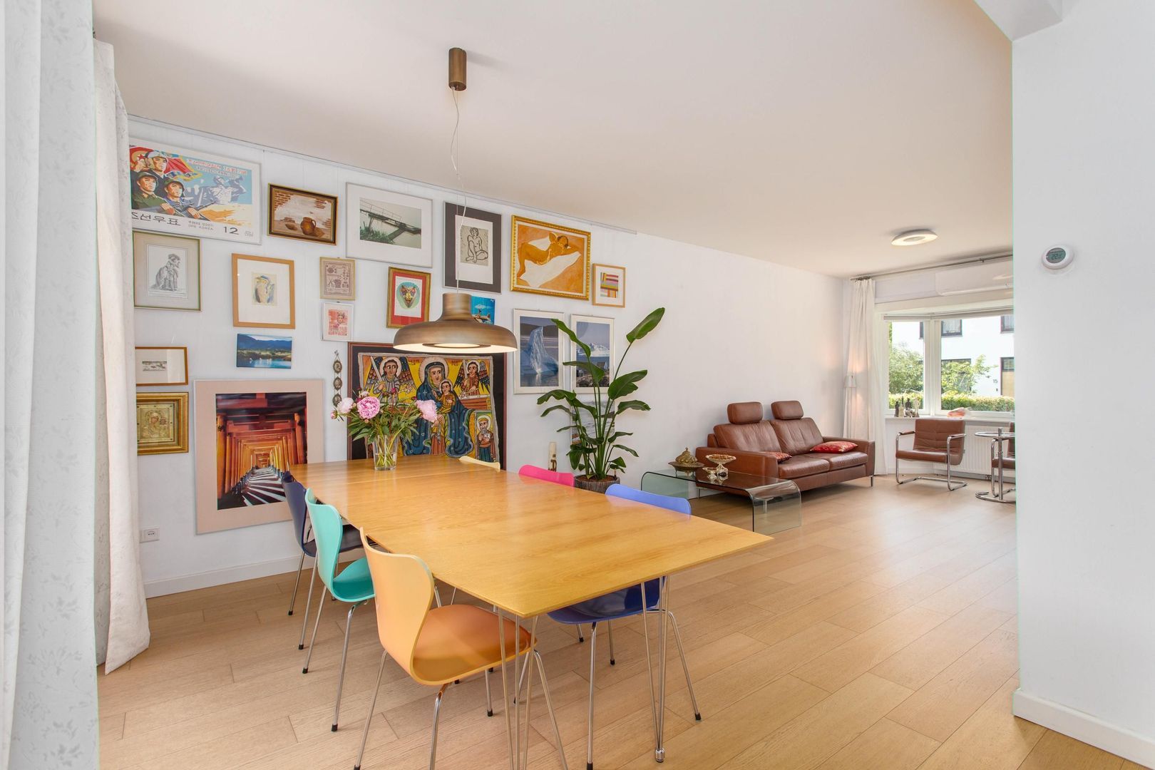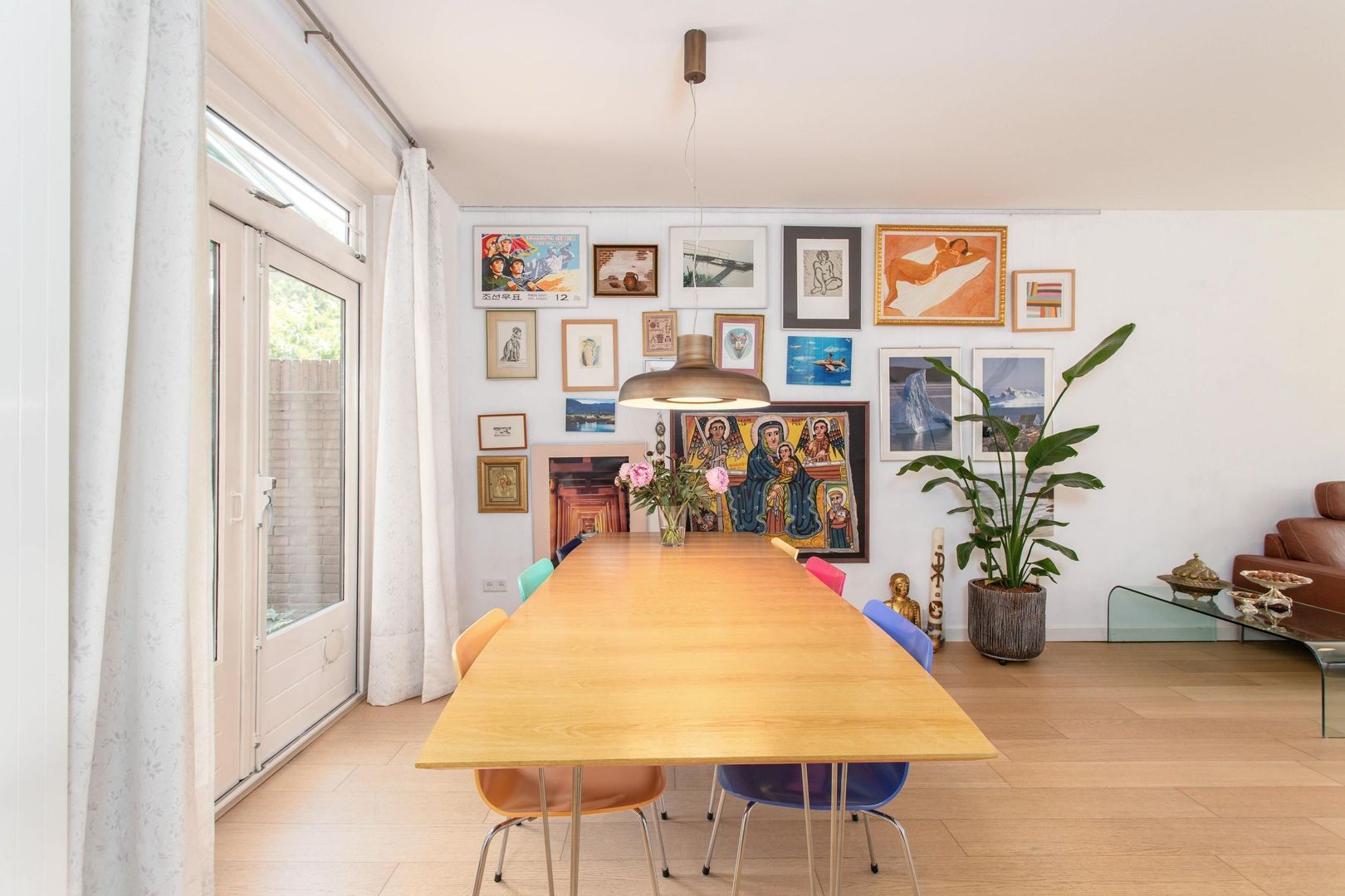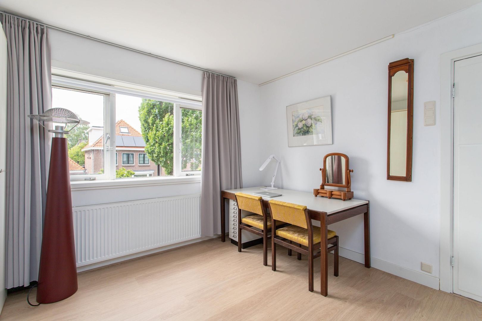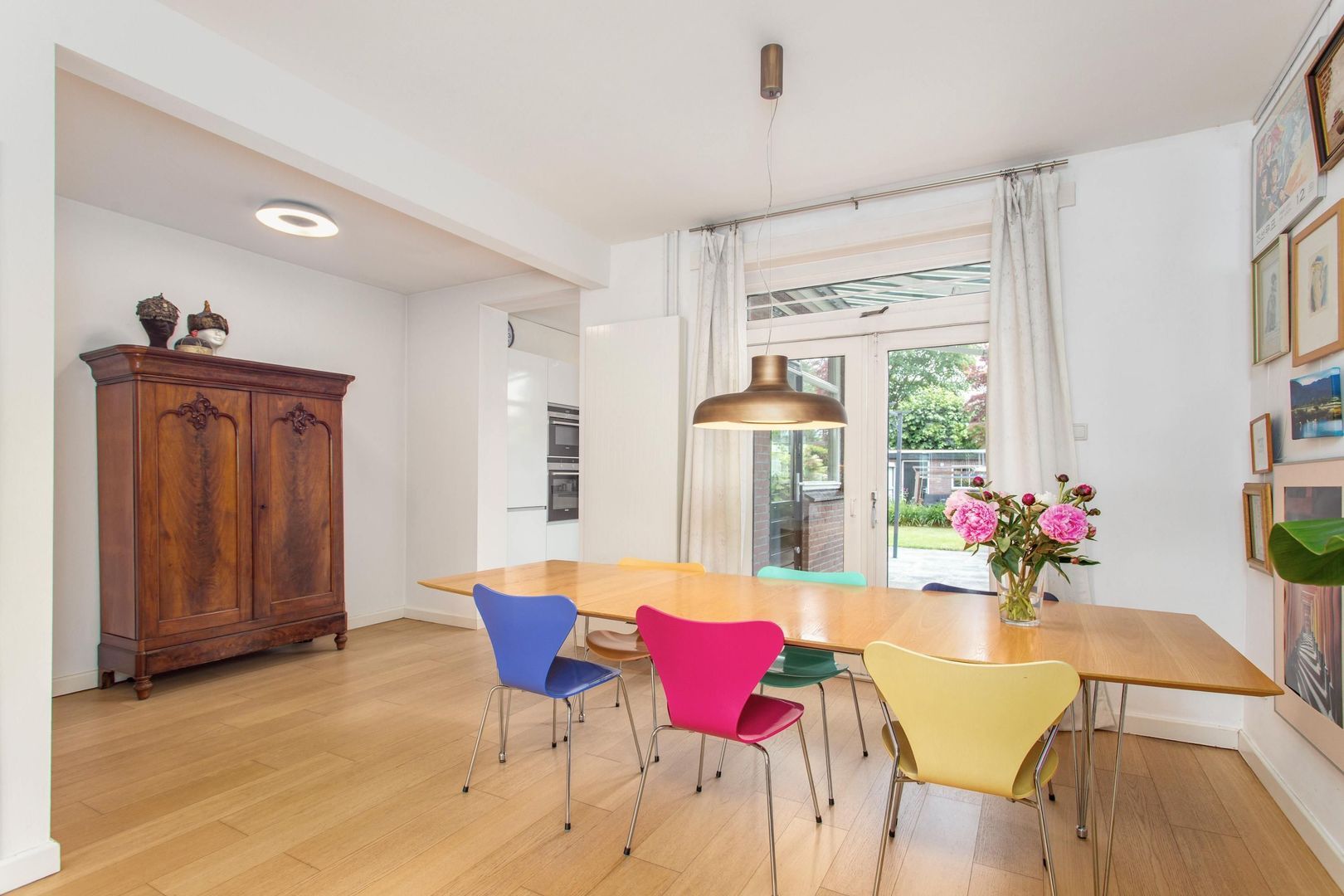 Via de fraai aangelegde voortuin bereik je de karakteristieke voordeur die toegang biedt tot de hal. Hier bevinden zich de kelderkast met de meterkast. Separaat toilet. Vanuit de hal heb je toegang tot de woonkamer en de trapopgang. De woonkamer is heerlijk ruim, met een gezellige erker aan de voorzijde waar het zitgedeelte zich bevindt. Aangrenzend vind je de eetkamer, die eveneens royaal is. Vanuit de eetkamer is de keuken te bereiken. De keuken is uitgevoerd in een frisse, voornamelijk witte kleurstelling met een grijs composiet keukenblad en baadt in het licht dankzij de vele ramen. Je vindt er diverse inbouwapparaten: oven, magnetron, gaskookplaat, Quooker-kraan, koelkast, vriezer, vaatwasser en afzuigkap. Tevens is er een split airco aanwezig voor verwarmen- en koelen.