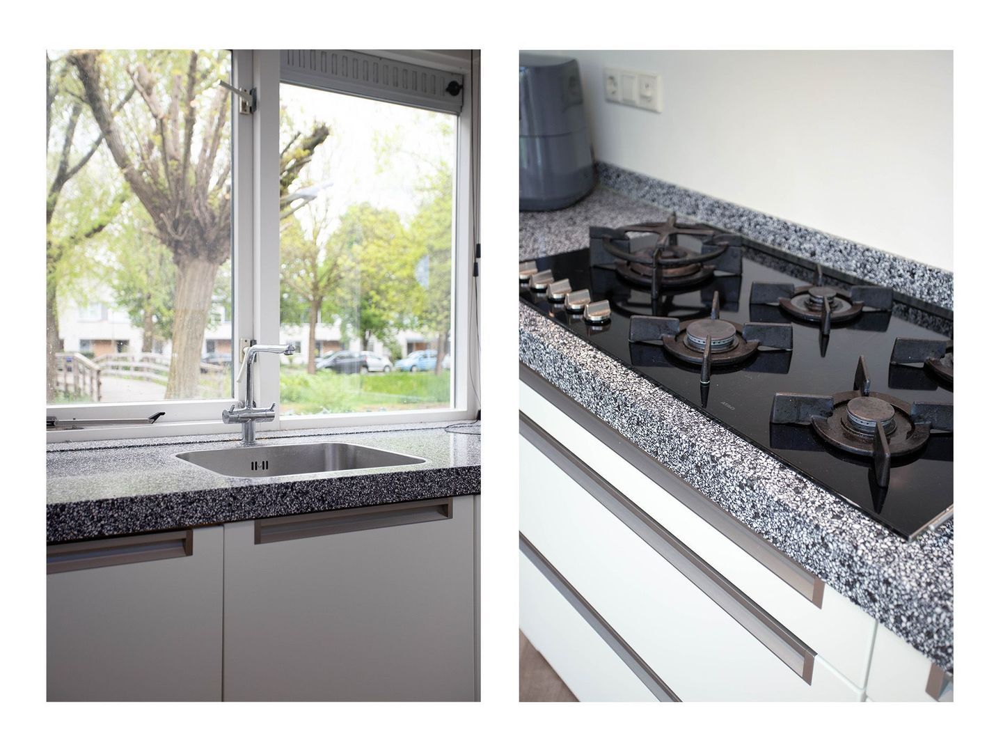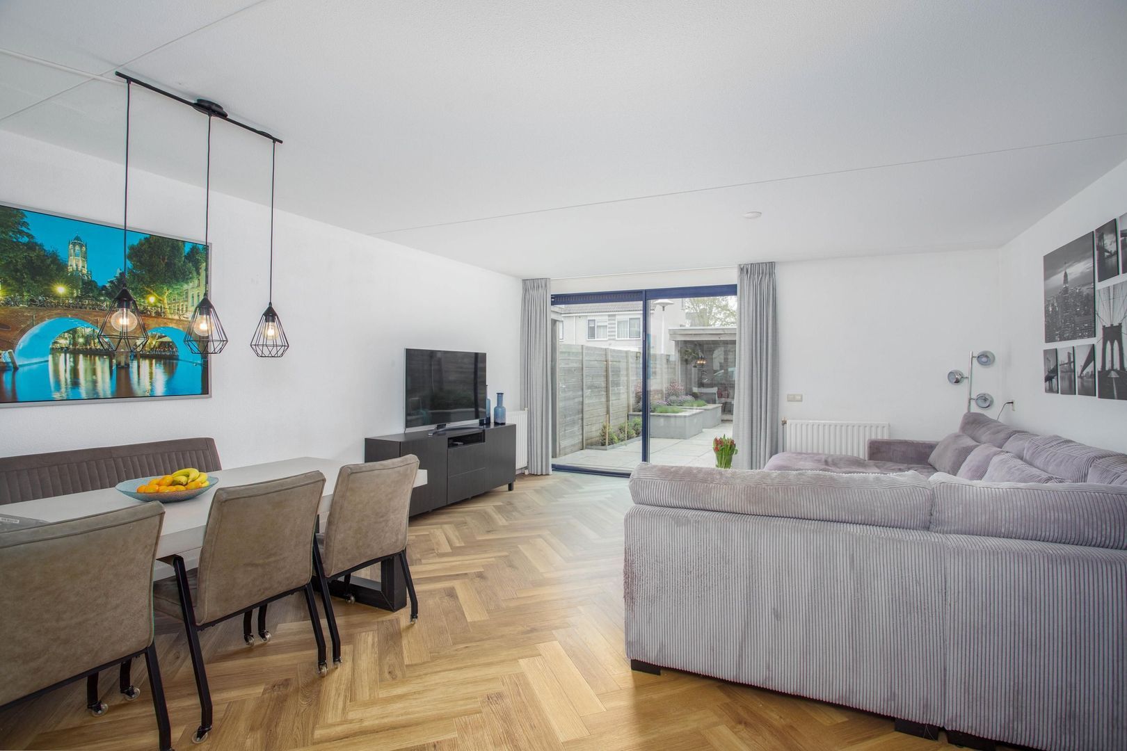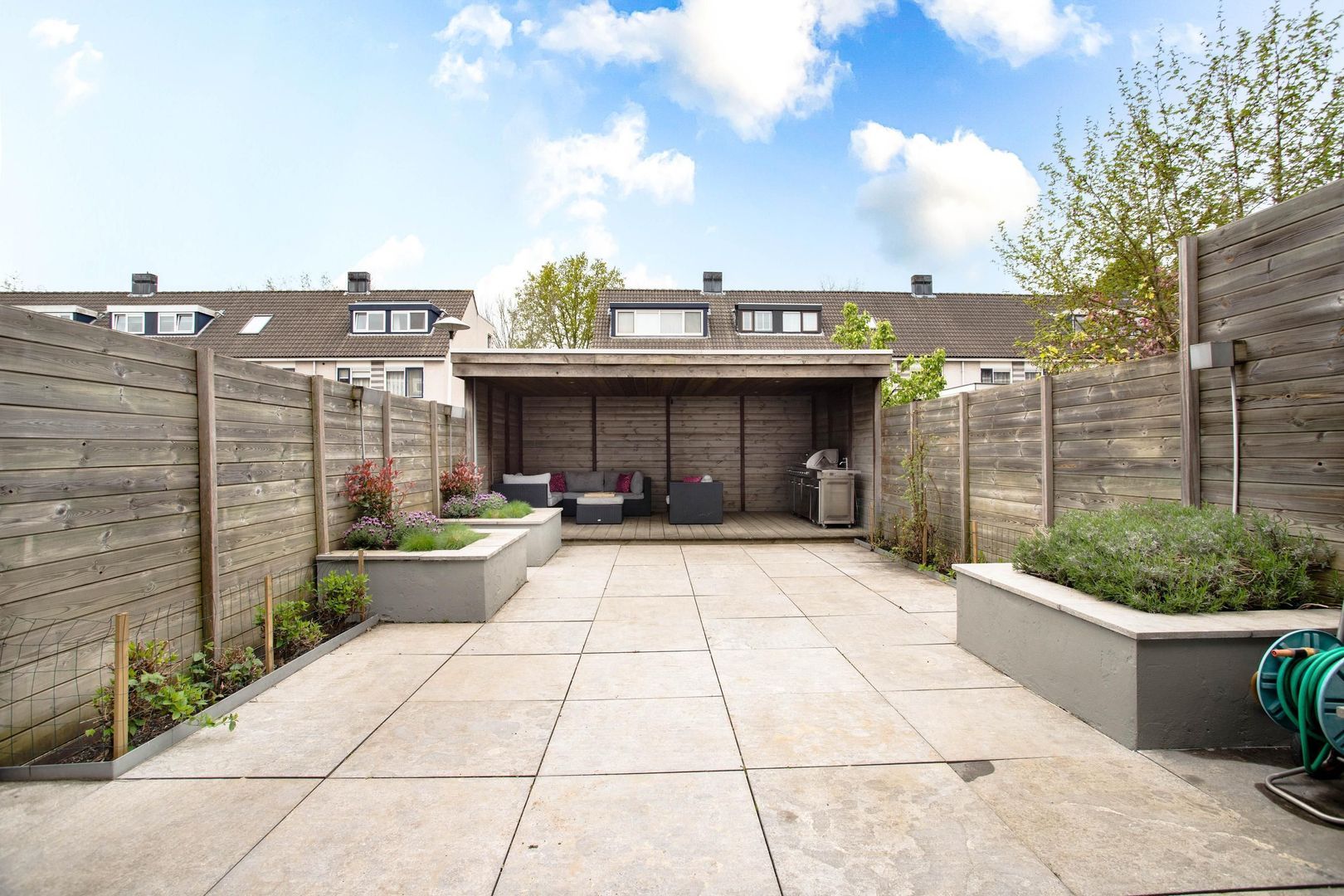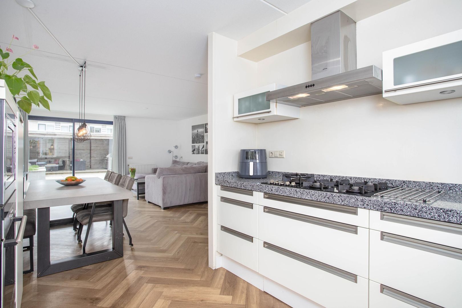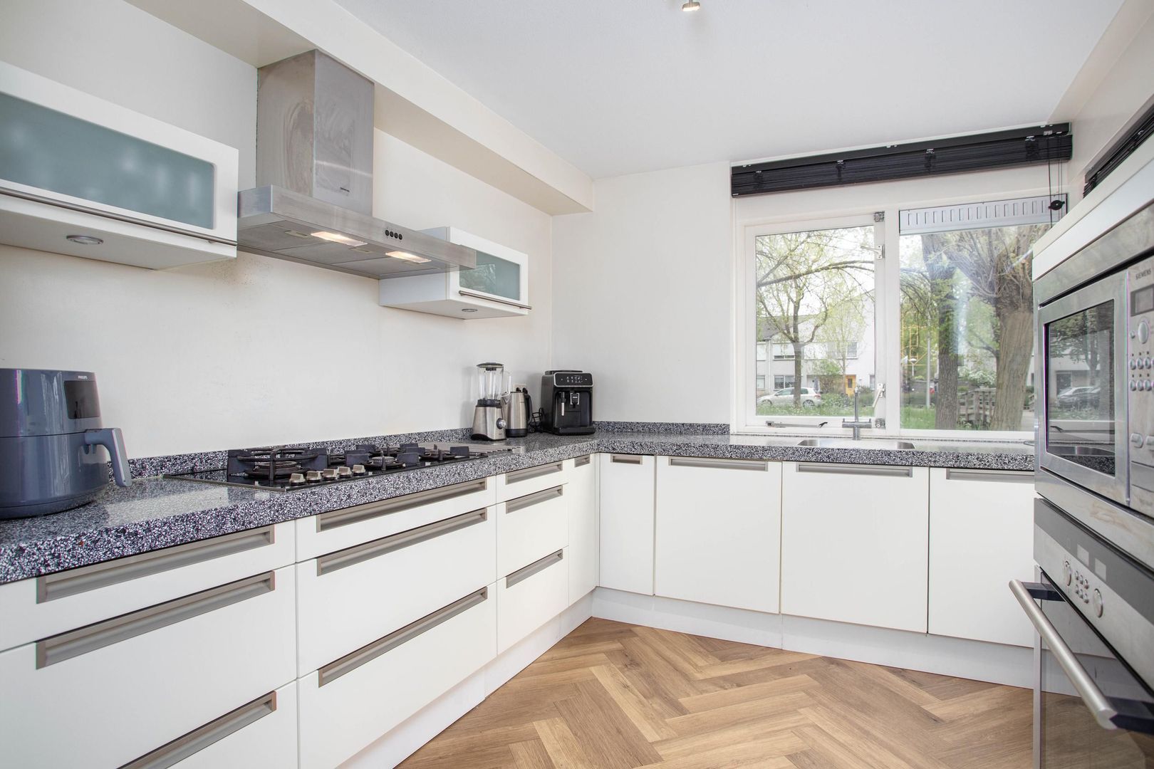 Via de verzorgde voortuin bereik je de woning. De entree biedt toegang tot de woonkamer, het toilet en de trap naar de verdieping. De royale woonkamer biedt ruimte voor het creëren van een ruime zit- en eethoek. De open keuken sluit hierop aan en is uitgevoerd in wit met zilveren accenten, voorzien van grote raampartijen die zorgen voor een prettige lichtinval. De keuken is uitgerust met inbouwapparatuur, waaronder een 5-pits gasfornuis, afzuigkap, vaatwasser, oven, magnetron, koelkast en vriezer. De gehele benedenverdieping heeft een visgraatvloer. Via de schuifpui in de woonkamer heb je toegang tot de tuin, die is voorzien van betegeling en een veranda. De tuin heeft de ideale zonnige ligging op het zuiden, en door de veranda is er ook altijd een heerlijk plekje in de schaduw. Tevens beschikt de berging, die vanuit de tuin te bereiken is, over veel ruimte.