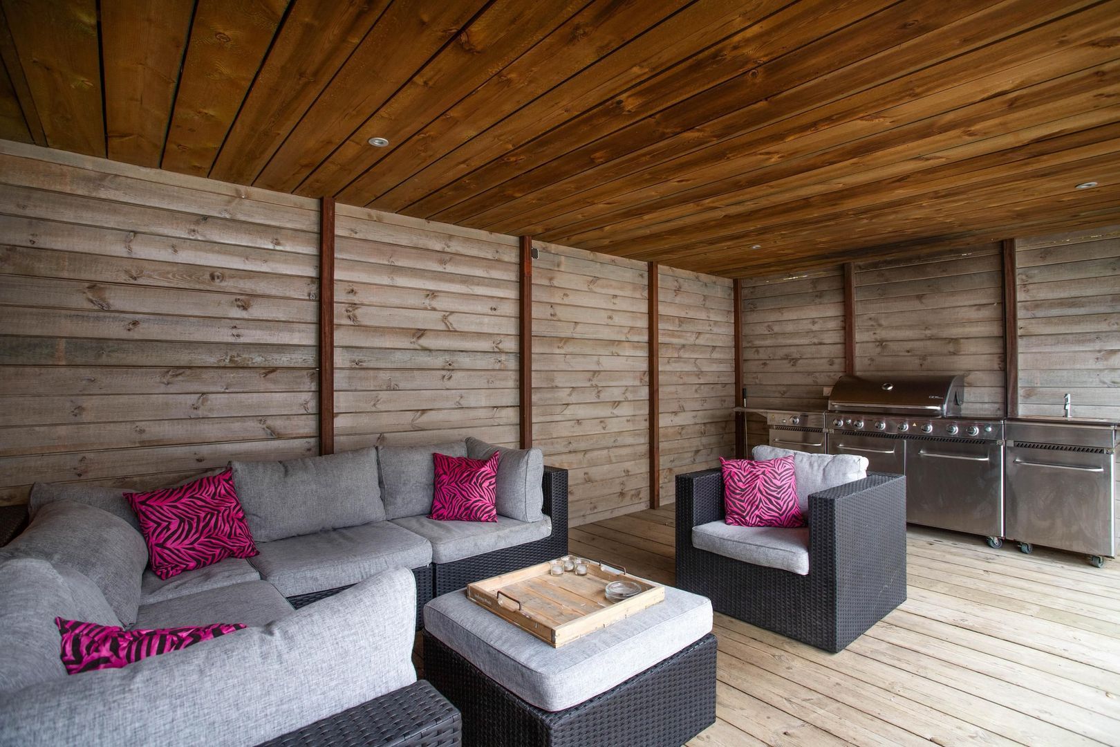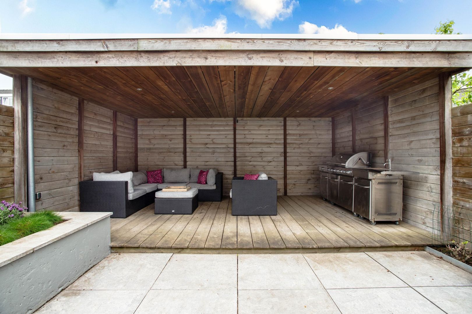 Momenteel omvat de woning een zeer riante woonverdieping met een verzorgde keuken aan de voorzijde. Deze heeft een fraai uitzicht richting het sierwater en is voorzien van de benodigde inbouwapparatuur. Tussen de ruime, tuingerichte zitkamer is voldoende plaats voor een grote eettafel tot zeker 8 personen. De achtertuin is fraai aangelegd met een indrukwekkende veranda achter in de tuin, waardoor een zeer royale doorloop ontstaat. Dankzij de ligging op het zuiden geniet je hier volop van de zon, maar vind je dankzij de veranda en het zonnescherm ook plekjes in de schaduw. In de zijtuin is een berging van ca. 21 m² aanwezig, die qua formaat dus niet onderdoet ten opzichte van een garage.