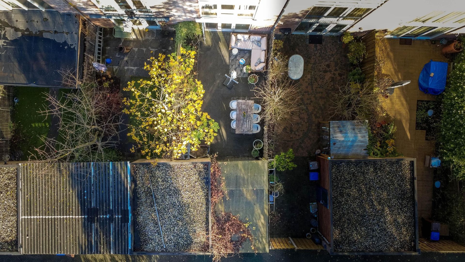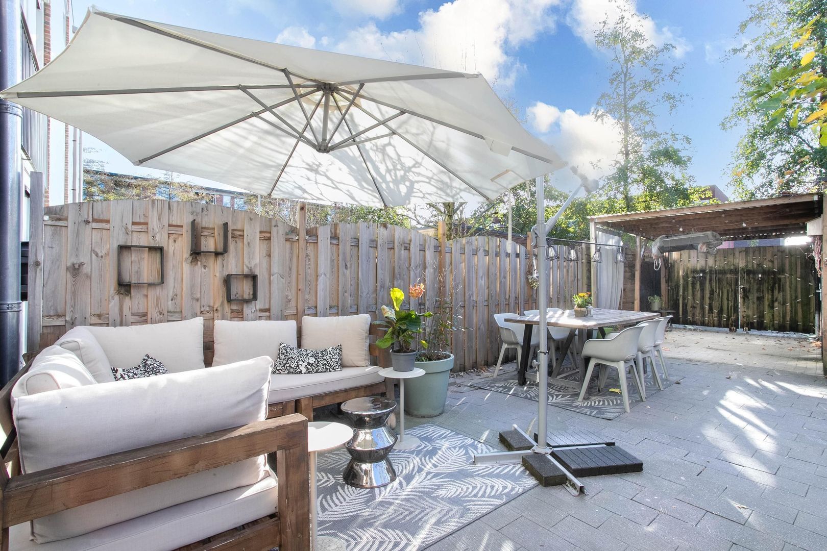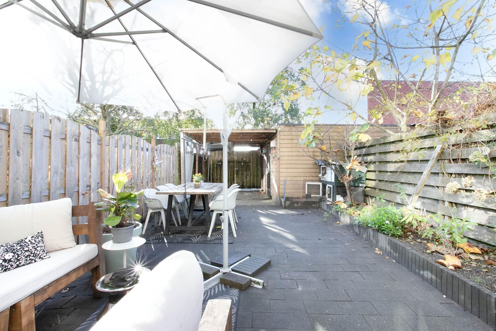 • Achtertuin op het zuiden, met altijd een plekje in de zon én schaduw (voorzien van achterom en berging)