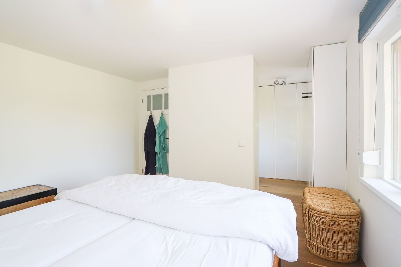 Eerste verdieping: Overloop. De ruime slaapkamer aan de achterzijde van de woning heeft direct toegang tot de kleedkamer. De slaapkamer aan de voorzijde is heerlijk licht en heeft een eigen wastafel. Op de gehele eerste verdieping, excl. badkamer, ligt een nieuwe parketvloer (2022).