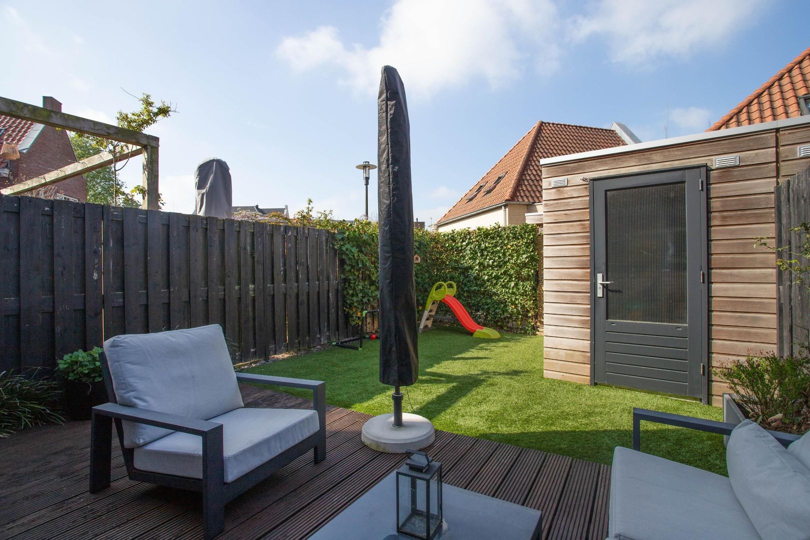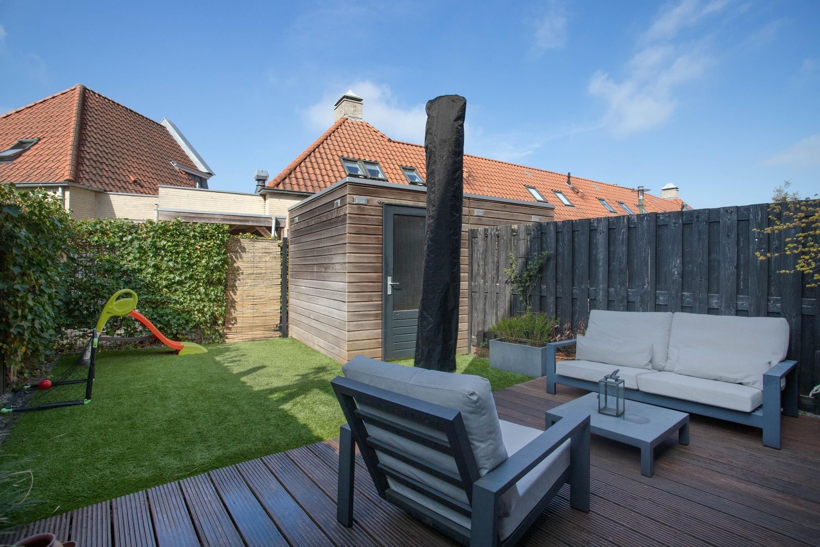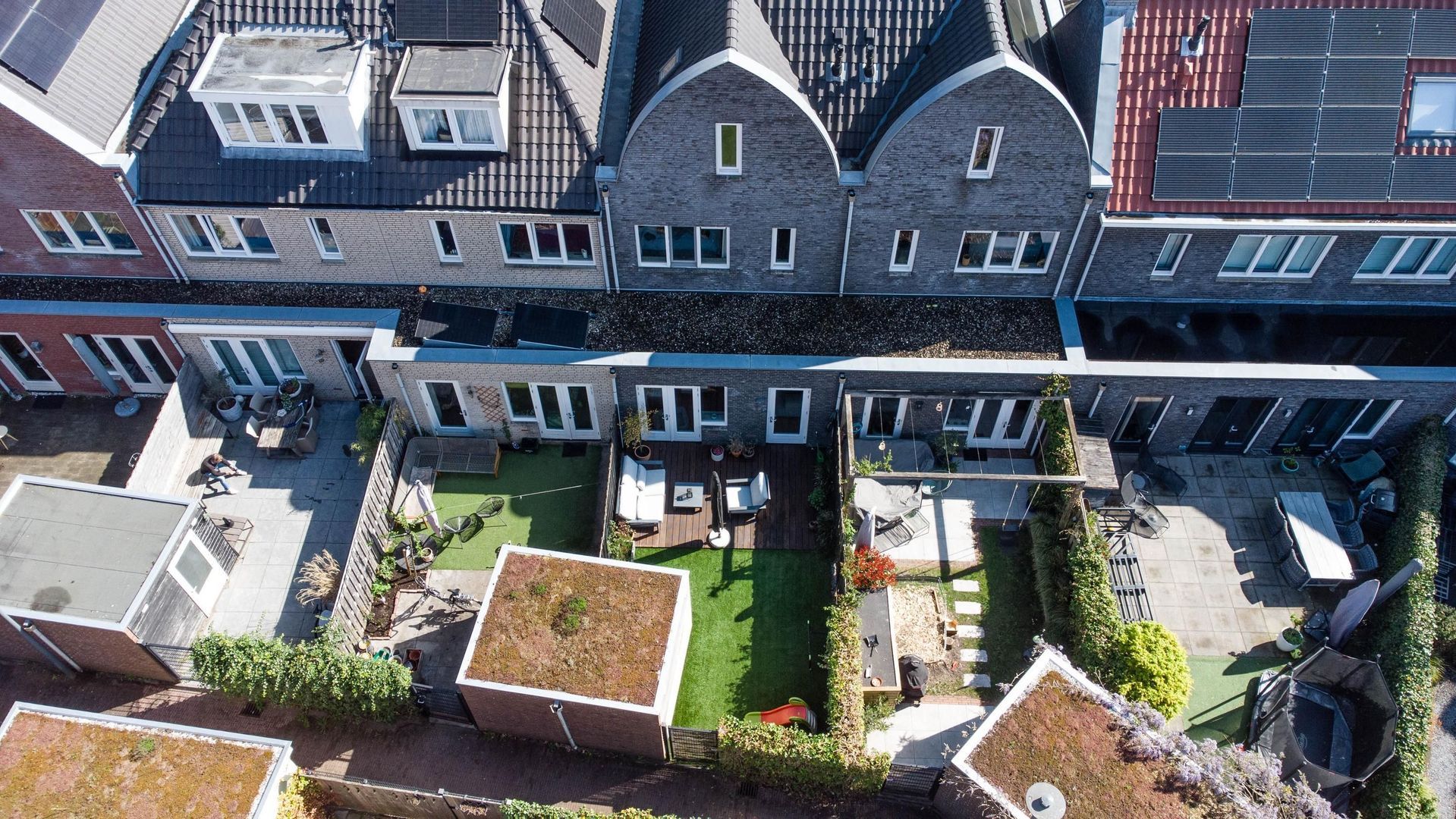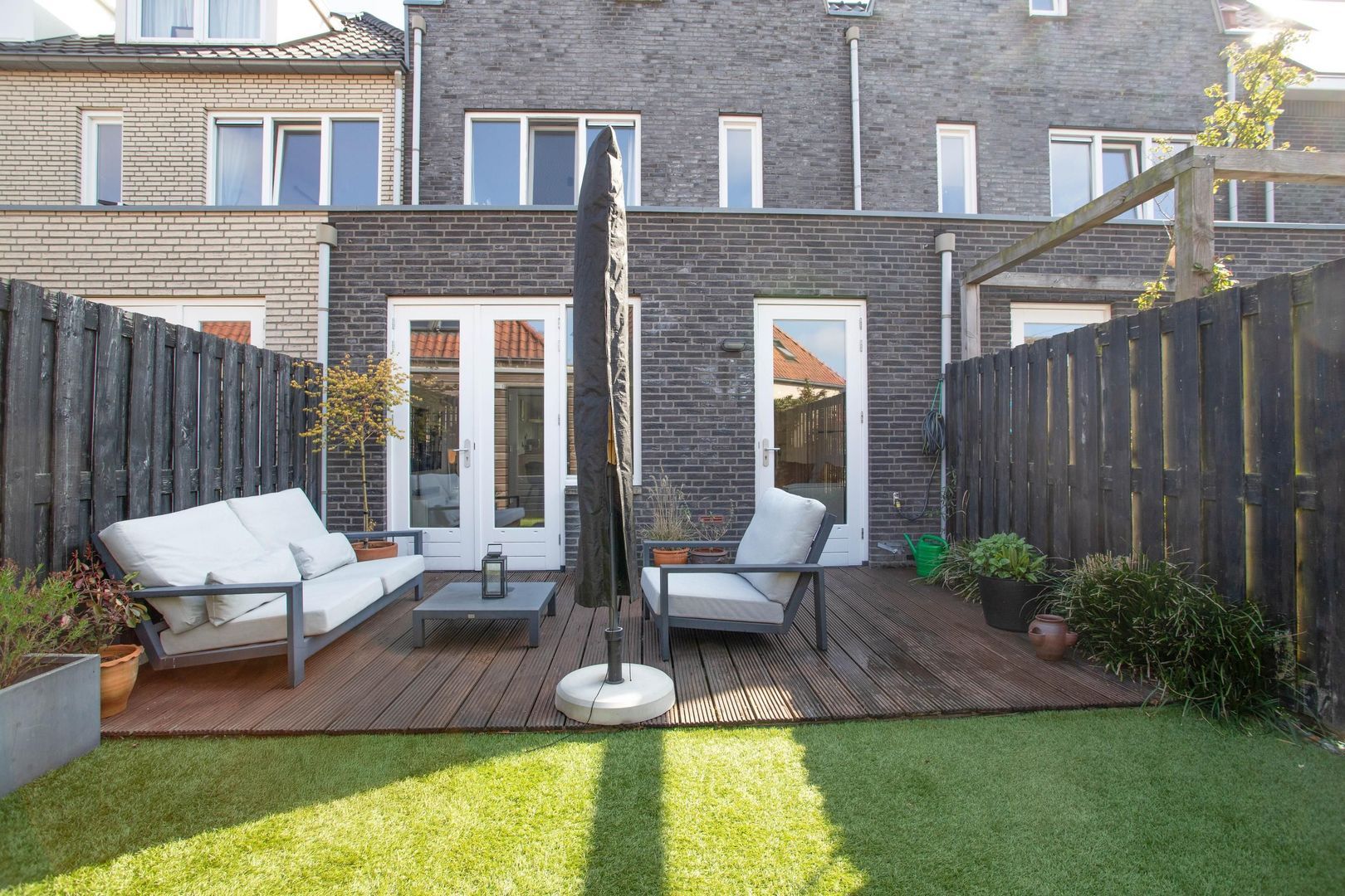Tuin: zonnige achtertuin gelegen op het zuid-westen, fraai aangelegd met hardhouten vlonders en premium kunstgras. De tuin heeft een (fietsen)berging en een achterom.