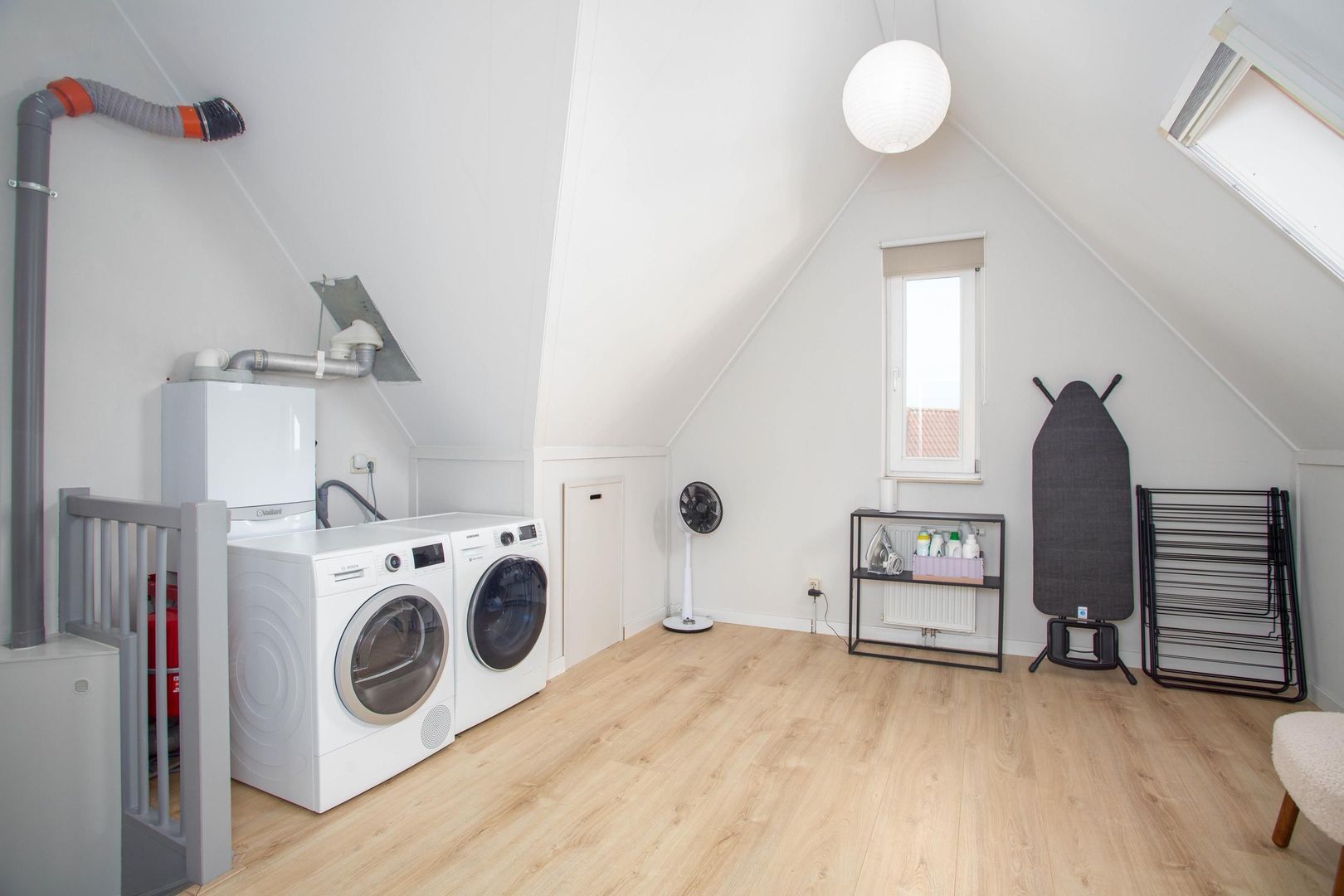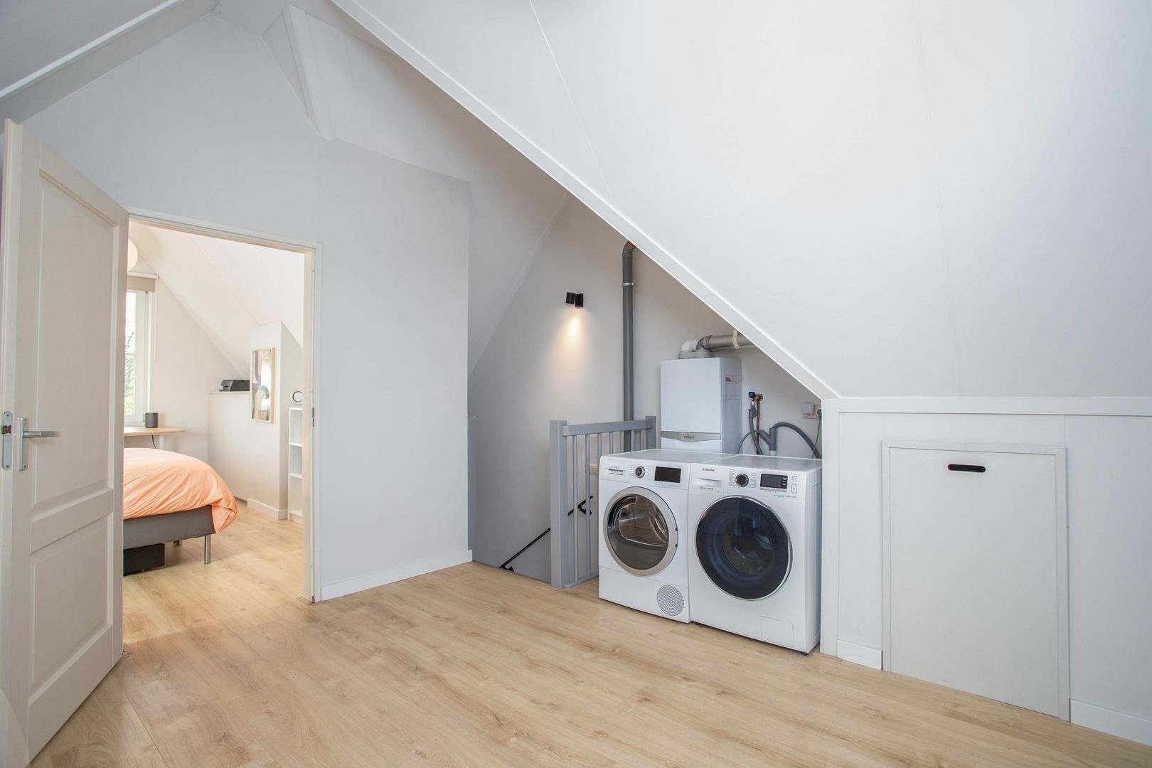 2e Verdieping: volwaardige verdieping ingedeeld met een werkruimte aan de achterzijde en een grote slaapkamer aan de voorzijde. Vanuit deze kamer is er vrij en groen uitzicht. Op deze etage zijn tevens de aansluitingen voor wasmachine, wasdroger en de CV-ketel (Vaillant 2014) en een zee aan bergruimte.