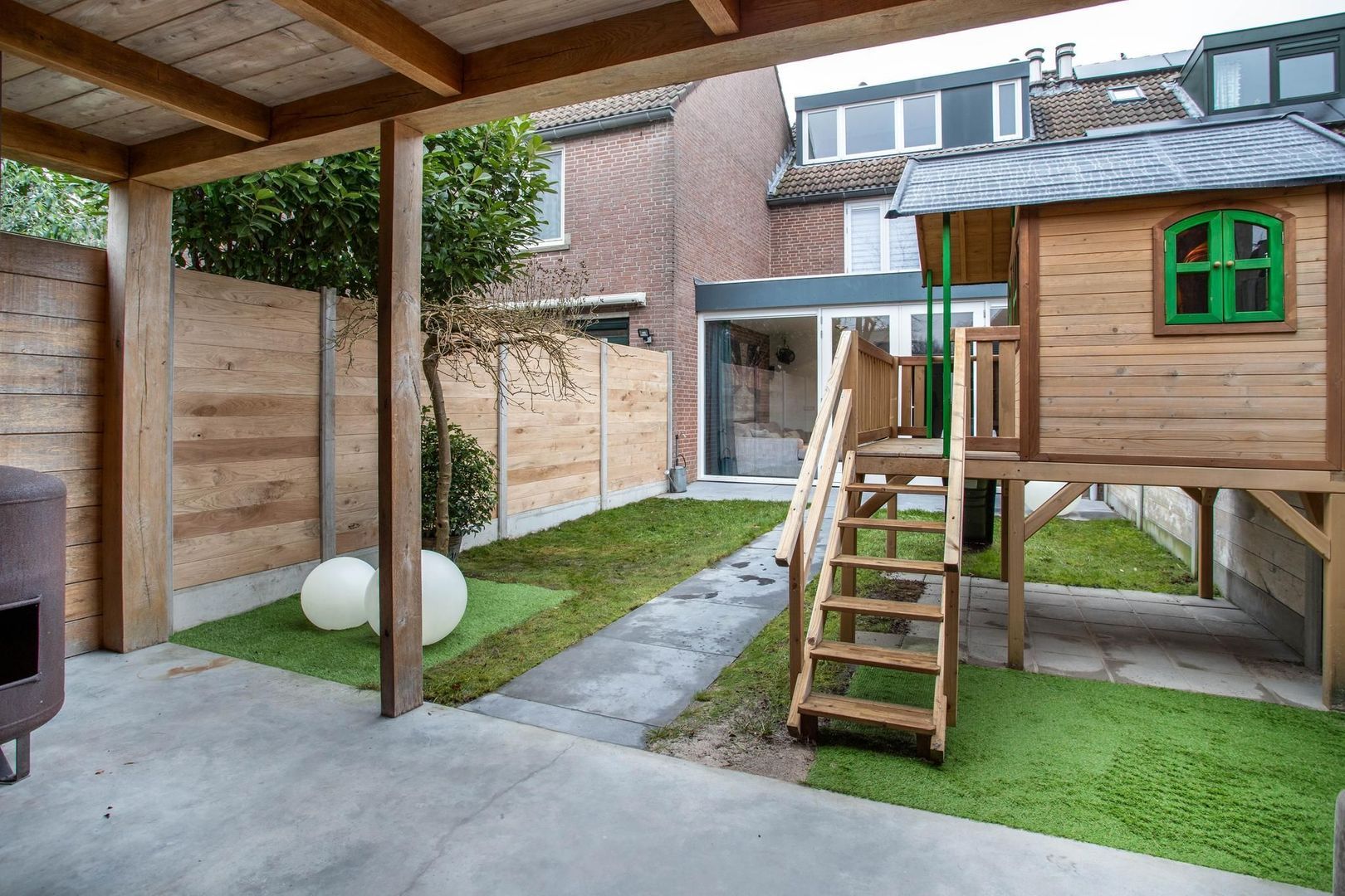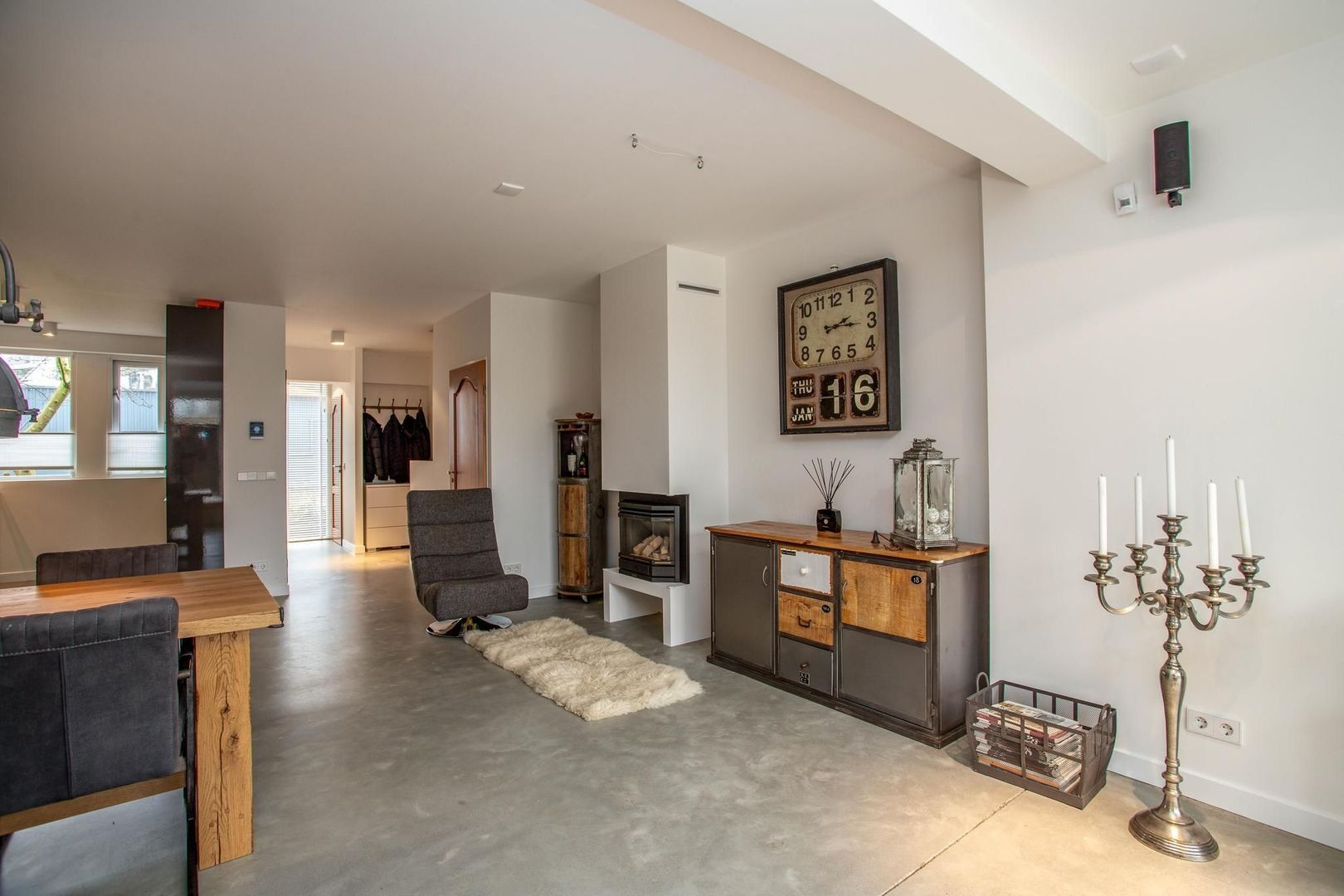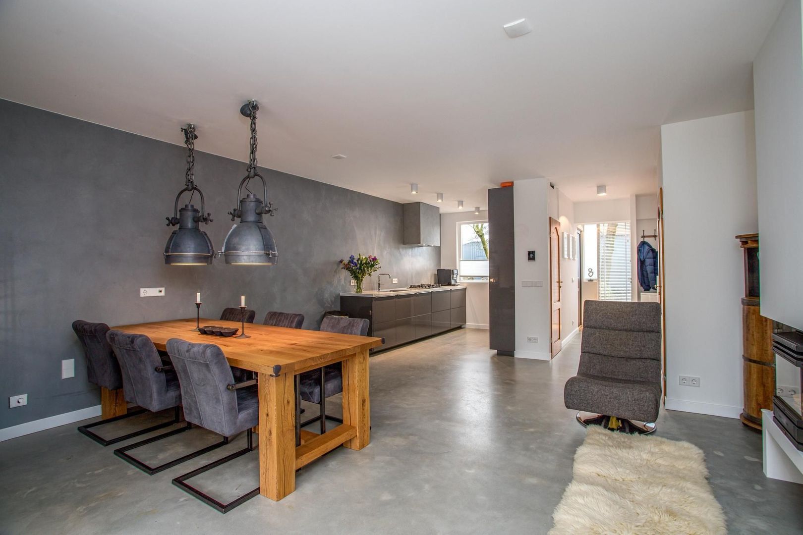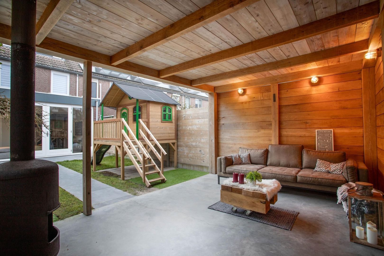 De woning betreed je via je fraai aangelegde voortuin. Bij binnenkomst door de voordeur kom je in de gang, die toegang biedt tot de woon/eetkamer, het toilet, de trapopgang, de trapkast en de meterkast. De vloer op de begane grond is voorzien van vloerverwarming. De ruime eetkamer met open haard biedt voldoende ruimte voor een lange eettafel, waar je heerlijk kunt dineren met uitzicht op de open keuken. De keuken heeft voornamelijk grijstinten, een wit werkblad en zilveren details. Daarnaast is de keuken uitgerust met de volgende inbouwapparatuur: vaatwasser, 5-pits gasfornuis, afzuigkap, oven, magnetron, koelkast, vriezer en Quooker. De woonkamer is gedeeltelijk afgeschermd van de eetkamer, wat een fijne hoek creëert voor het plaatsen van een groot bankstel. Grote raampartijen en openslaande deuren richting de tuin zorgen voor een heerlijke lichtinval in de kamer. De tuin, gelegen op het zuidwesten, heeft zowel tegels als gras, en achterin vind je een grote overkapping met een houtkachel. De tuin is een heerlijke plek om met het hele gezin te genieten van zowel de zon als de schaduw. Via de overkapping kun je achterom, waar zich een eigen parkeerplaats en berging bevinden.
