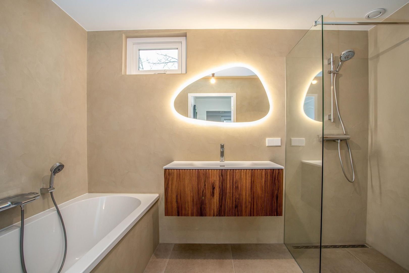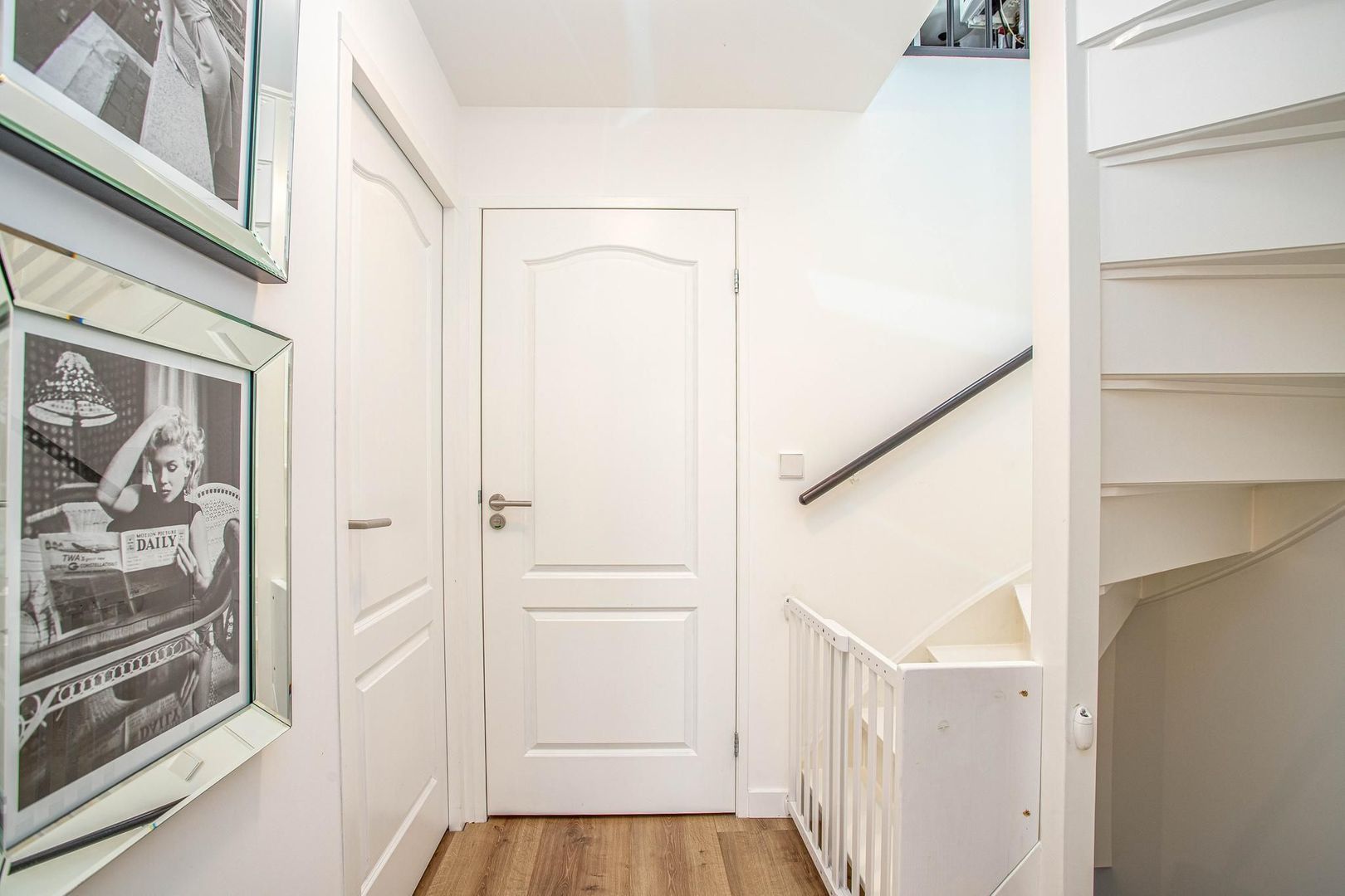 Via de overloop zijn de twee slaapkamers, de eerste badkamer en de trapopgang bereikbaar. De hoofdslaapkamer bevindt zich aan de achterzijde van de woning en is zeer ruim, met grote inbouwkasten. De badkamer is in 2025 vernieuwd en heeft een neutrale uitstraling met een hout-look wastafelmeubel. Daarnaast is de badkamer uitgerust met een ligbad, een led-spiegel, een inloopdouche, een toilet en vloerverwarming. De andere slaapkamer is gelegen aan de voorzijde en is perfect te gebruiken als kinderkamer.