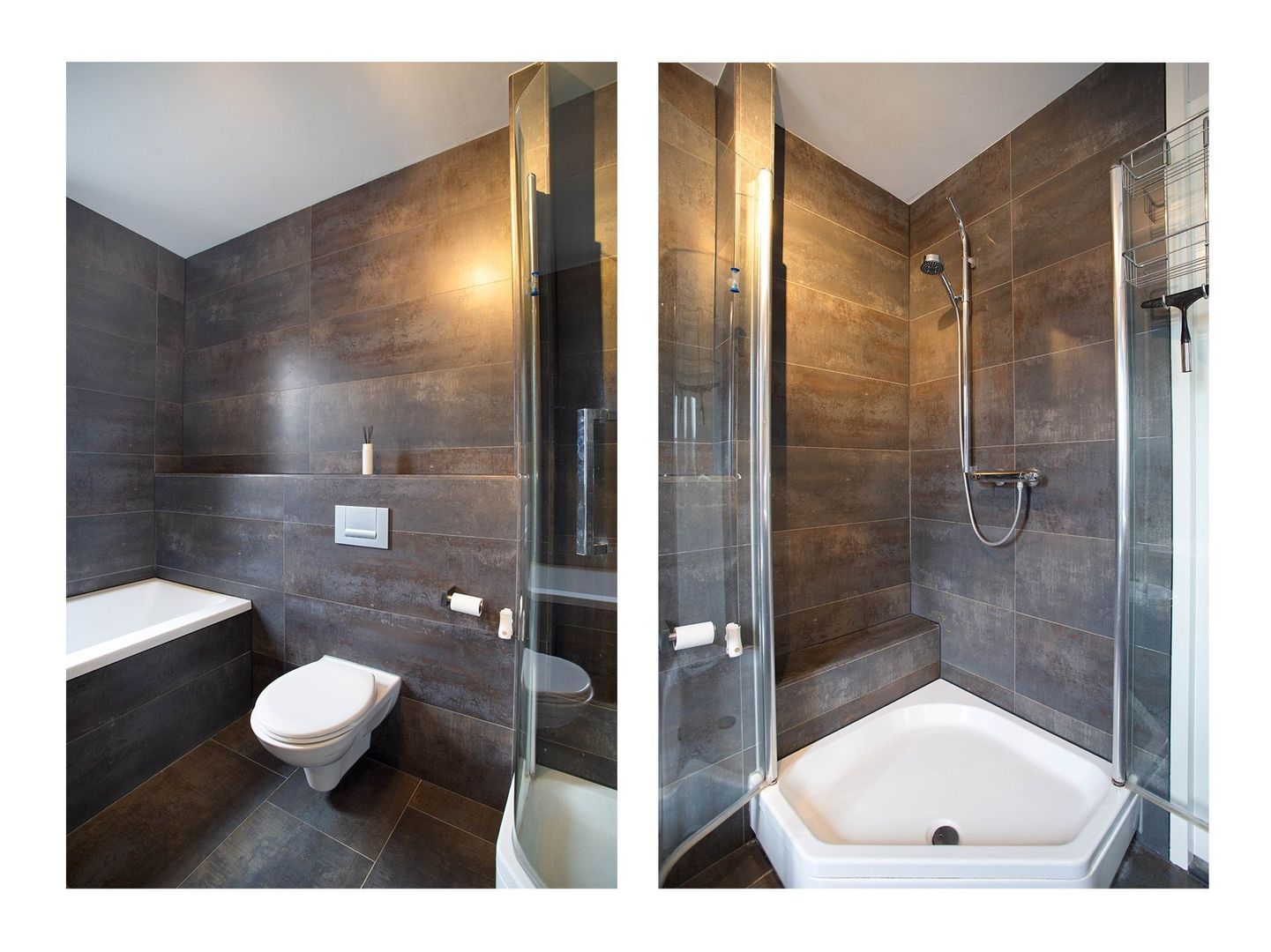 1e Verdieping: Overloop met toegang tot de 3 slaapkamers en badkamer. Luxe badkamer met ligbad, douchecabine, wastafel, hangend toilet en vloerverwarming.