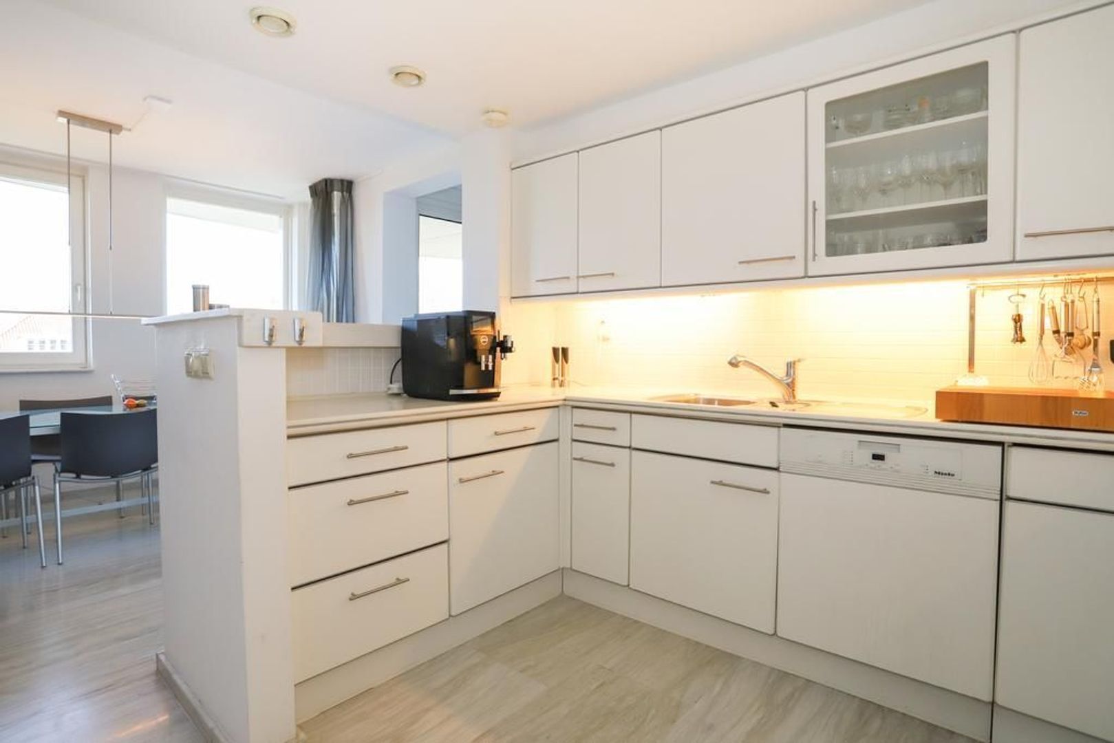 De keuken is uitgevoerd in een U-opstelling met zowel onder- als bovenkasten welke veel opbergmogelijkheden bieden. Verder is hier een vaatwasser, anderhalve spoelbak, inductiekookplaat, afzuigkap, koelkast en een vriezer aanwezig.