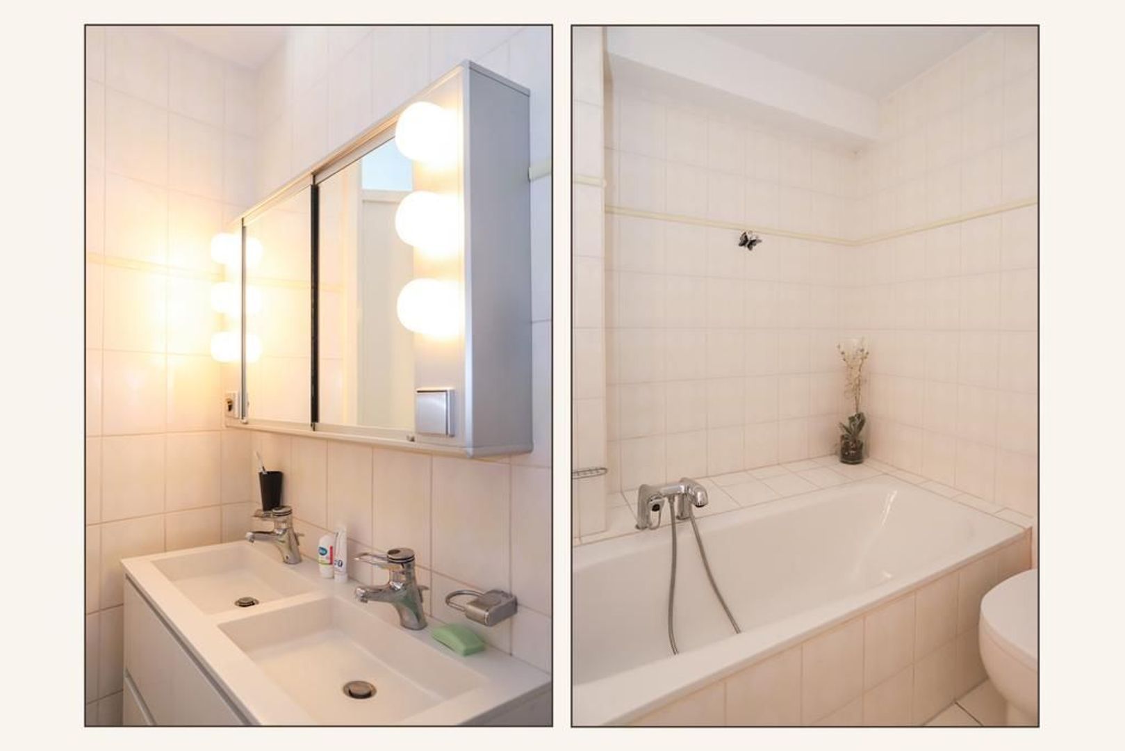 Beide slaapkamers zijn aan de achterzijde van het complex gelegen, waardoor deze prettig comfortabel en rustig zijn. De hoofdslaapkamer is voorzien van een strakke vaste kast en toegang tot de badkamer. Deze is volledig betegeld in een lichte kleur en voorzien van een ligbad, douchecabine, dubbele wastafel en tweede toilet.