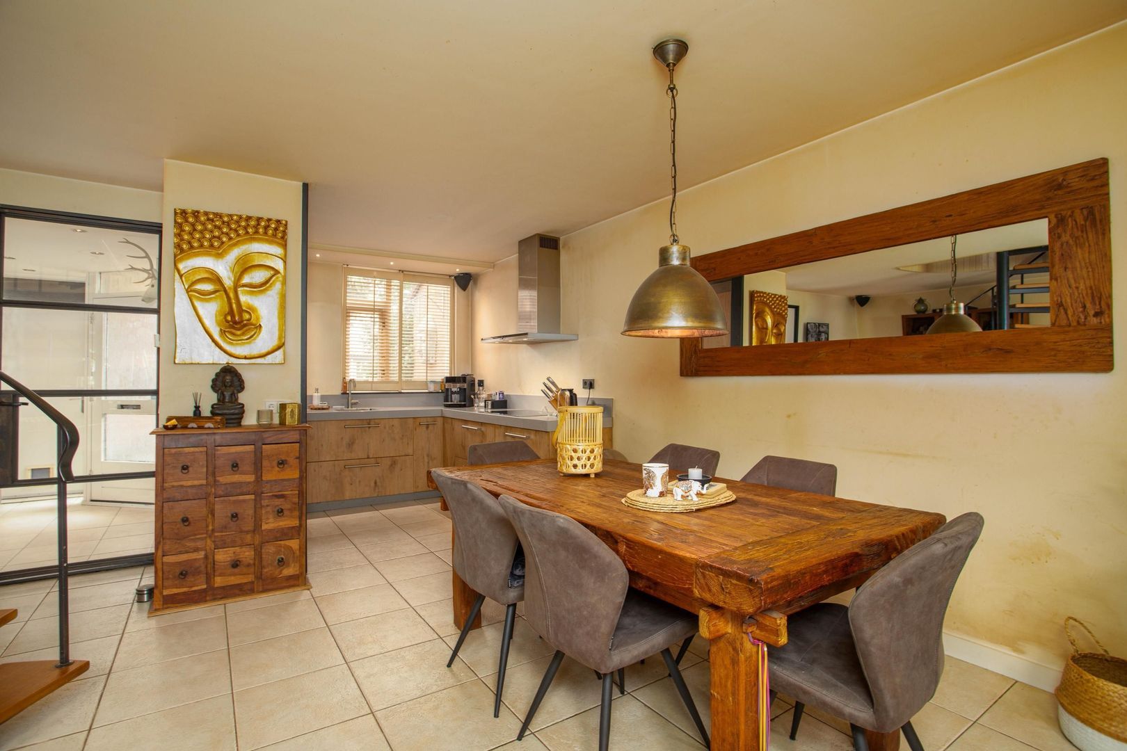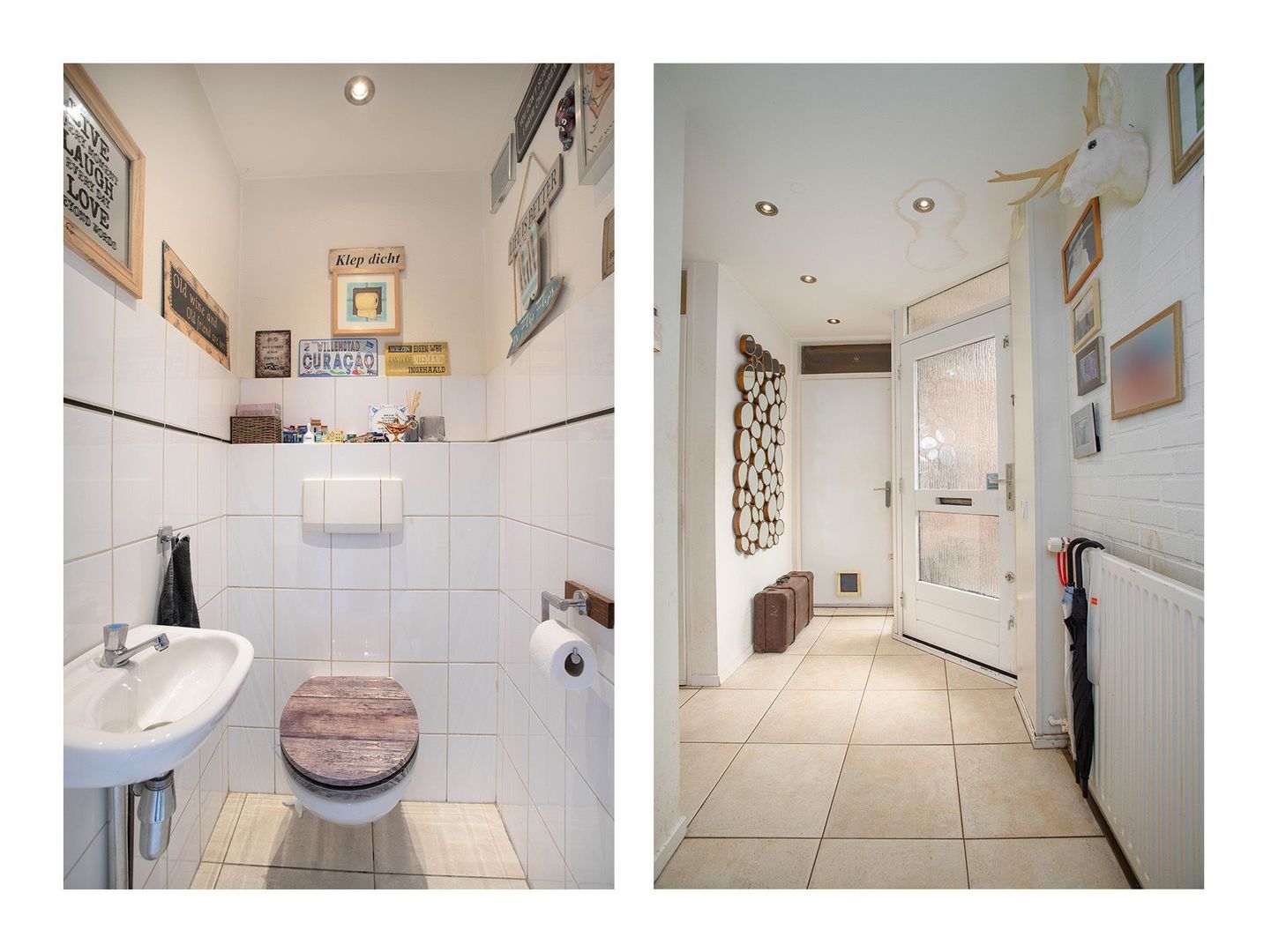 Je betreedt het huis vanuit de netjes betegelde voortuin. Vanuit de hal heb je toegang tot de woonkamer, meterkast, toilet en garage. In de royale woonkamer past een grote hoekbank en mede door de grote dakramen, heeft de ruimte een fijne lichtinval. De trap bevindt zich in de kamer. De woonkamer staat in verbinding met de open keuken met plek voor een eettafel. De keuken heeft houtlook kasten en een antraciet blad met zilveren details. Verder is de keuken voorzien van een inductiekookplaat, afzuigkap, vaatwasser, combi-oven en een koelkast. Via de woonkamer is er een deur naar de zeer diepe tuin, gelegen op het westen. In de tuin is nog een fijne overkapping aanwezig, ideaal om in de zomer of lente heerlijk te dineren met vrienden en familie.