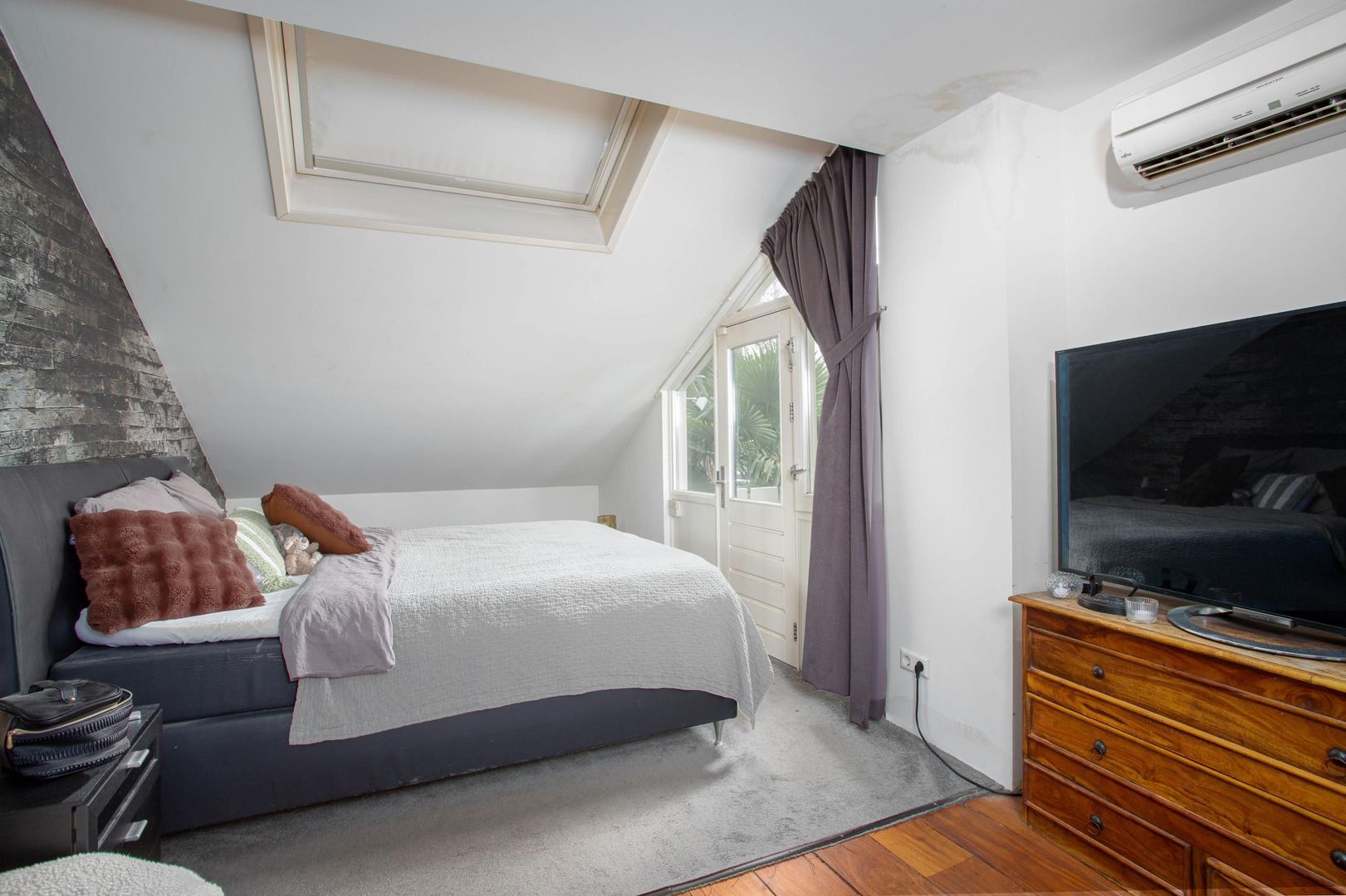 Via de charmante wenteltrap kom je boven op de overloop, die toegang geeft tot drie ruime slaapkamers. De kamers zijn alle drie groot genoeg voor een tweepersoonsbed en een linnenkast. Momenteel zijn de twee kleinere slaapkamers met elkaar verbonden en is één hiervan ingericht als een walk-in closet. De kamer kunnen gemakkelijk weer van elkaar gescheiden worden. De grootste slaapkamer is voorzien van airconditioning en een balkon.