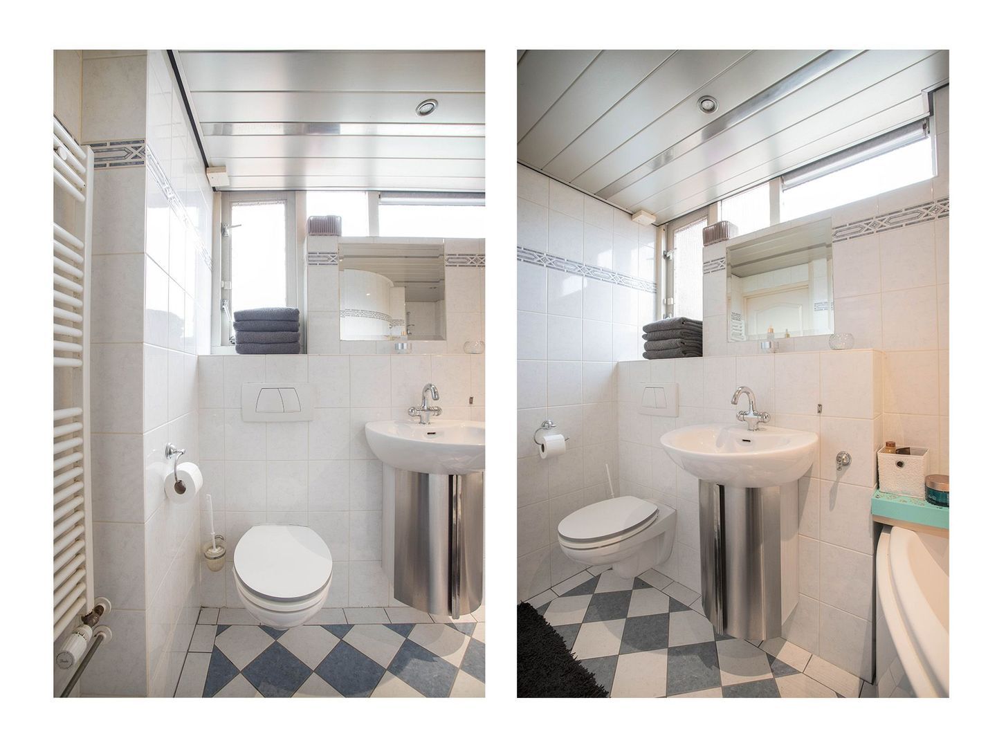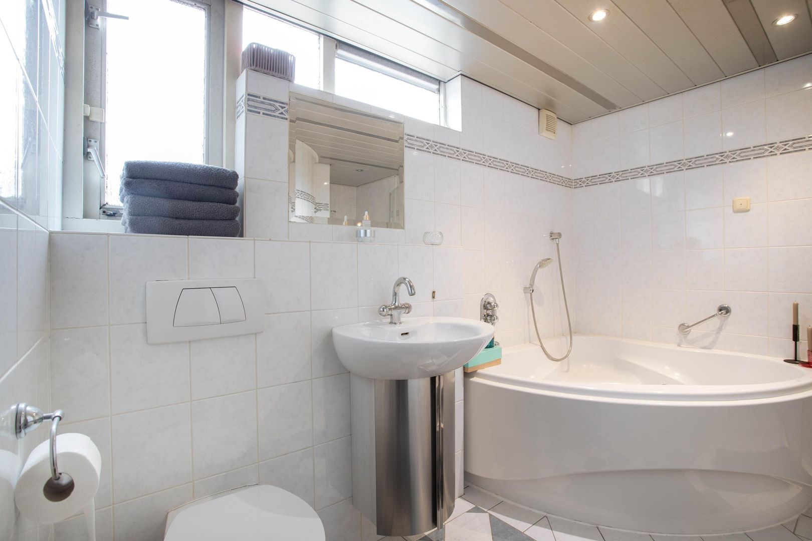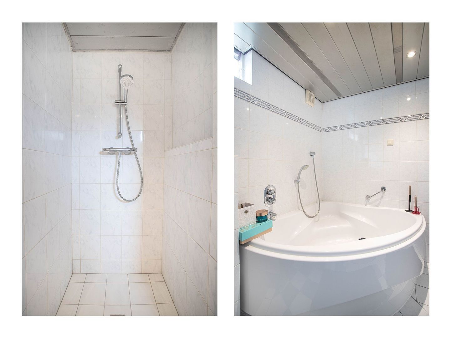 De badkamer is uitgerust met een groot hoekbad, inloopdouche, wastafel en een tweede toilet.