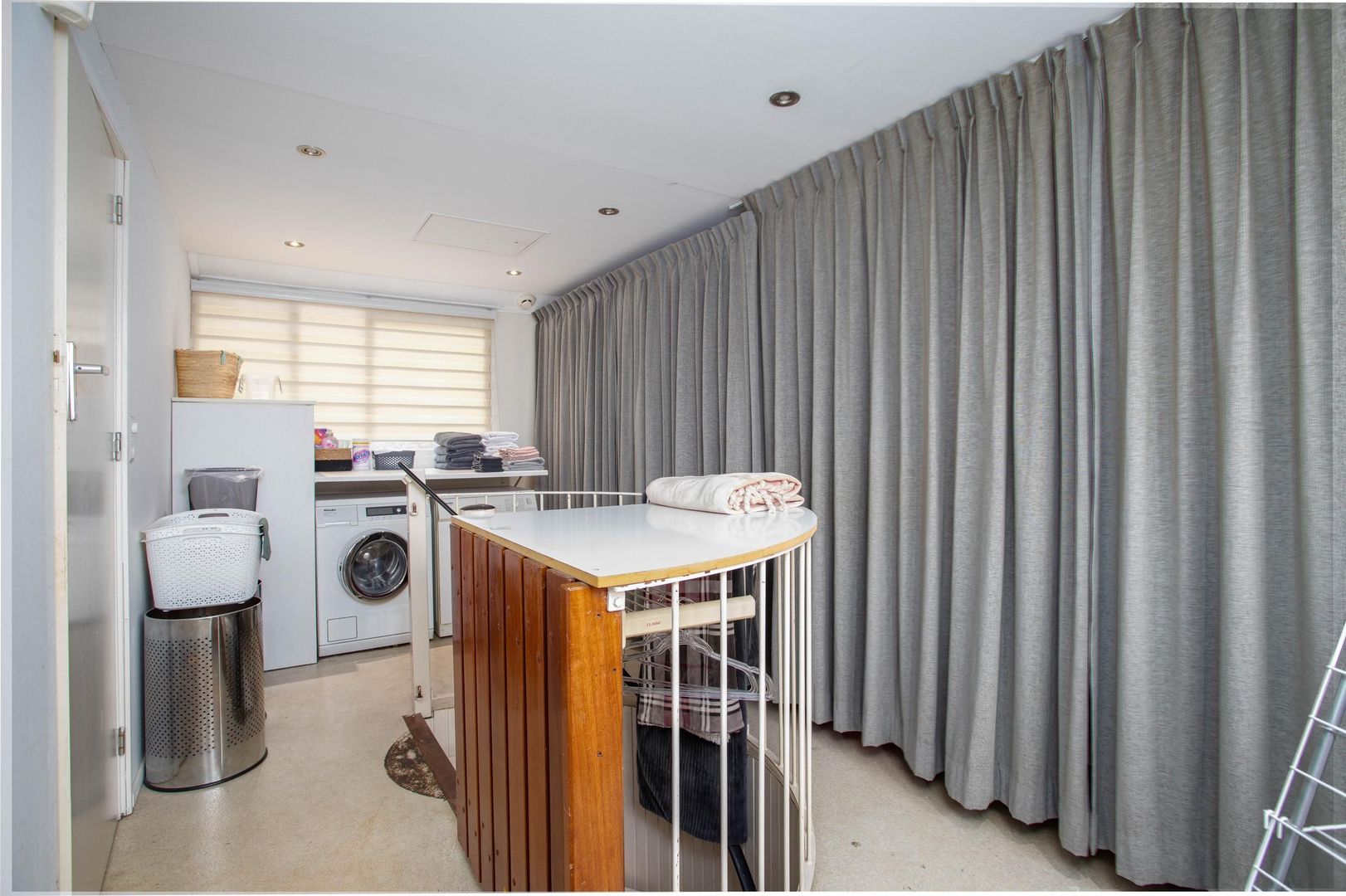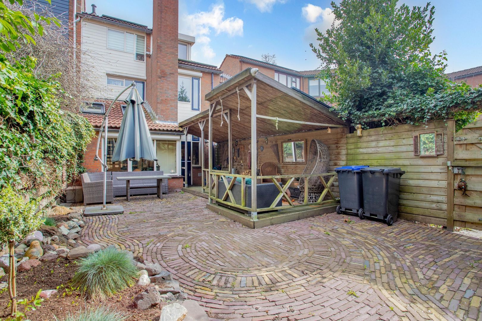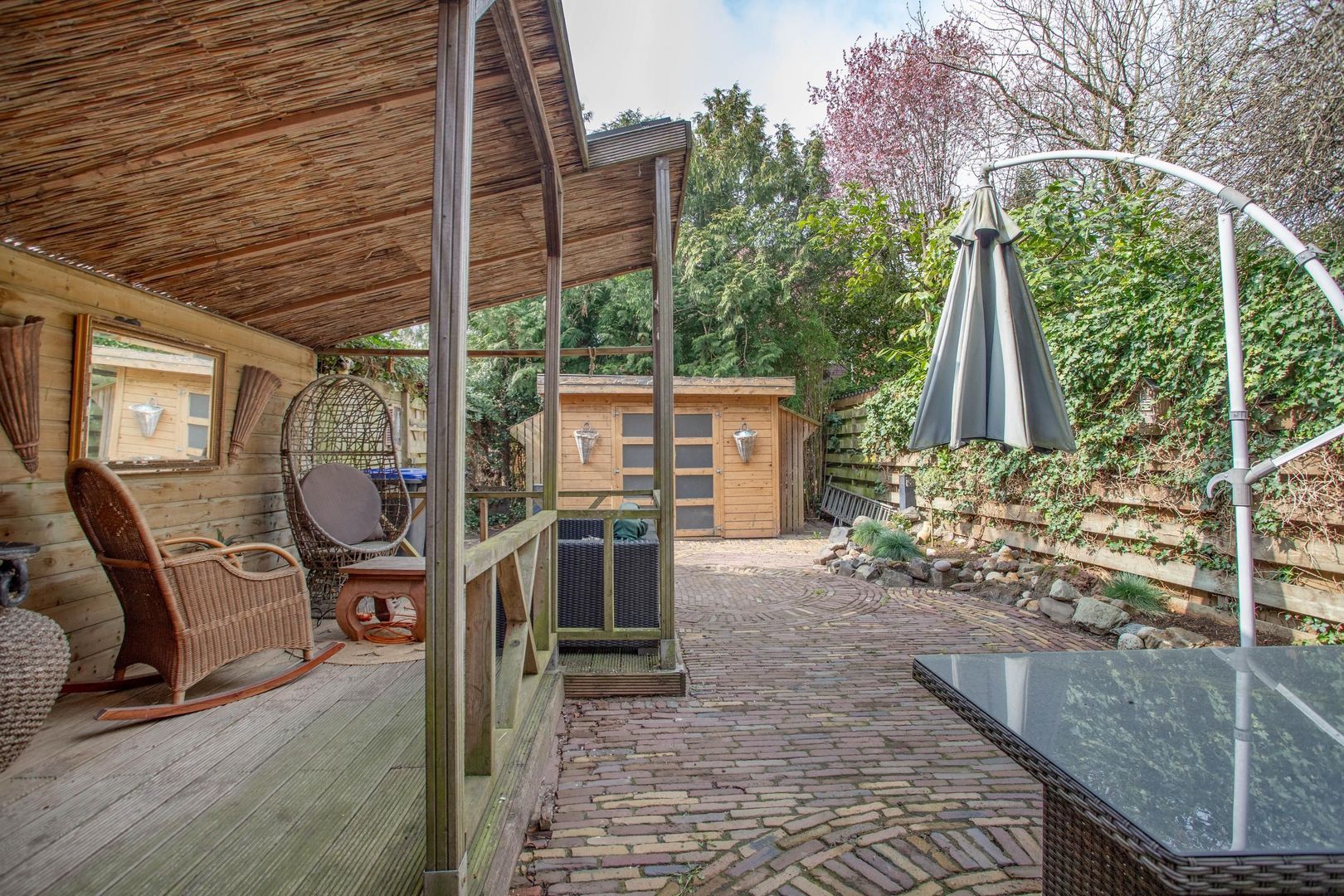 De ruime en groene achtertuin op het westen is een heerlijke plek om te ontspannen. Hier vind je een fijne overkapping, ideaal om op warme zomeravonden of in het voorjaar lekker te tafelen met vrienden en familie. Dankzij de diepte van de tuin is er voldoende ruimte voor zowel een speelplek voor kinderen als een sfeervolle loungehoek.