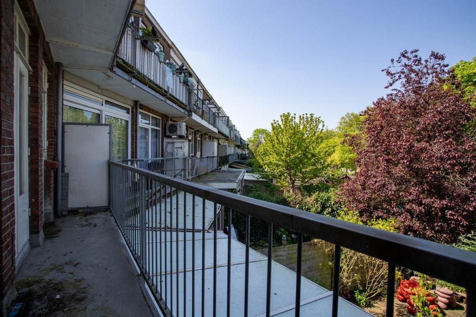 Het balkon, bereikbaar vanuit de keuken en woonkamer, geeft een leuk uitzicht op de binnentuinen waarbij er voldoende mate van privacy is.