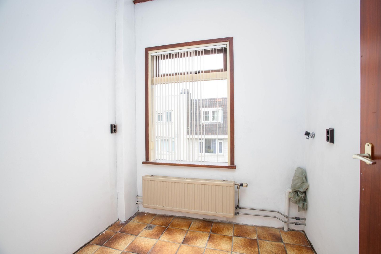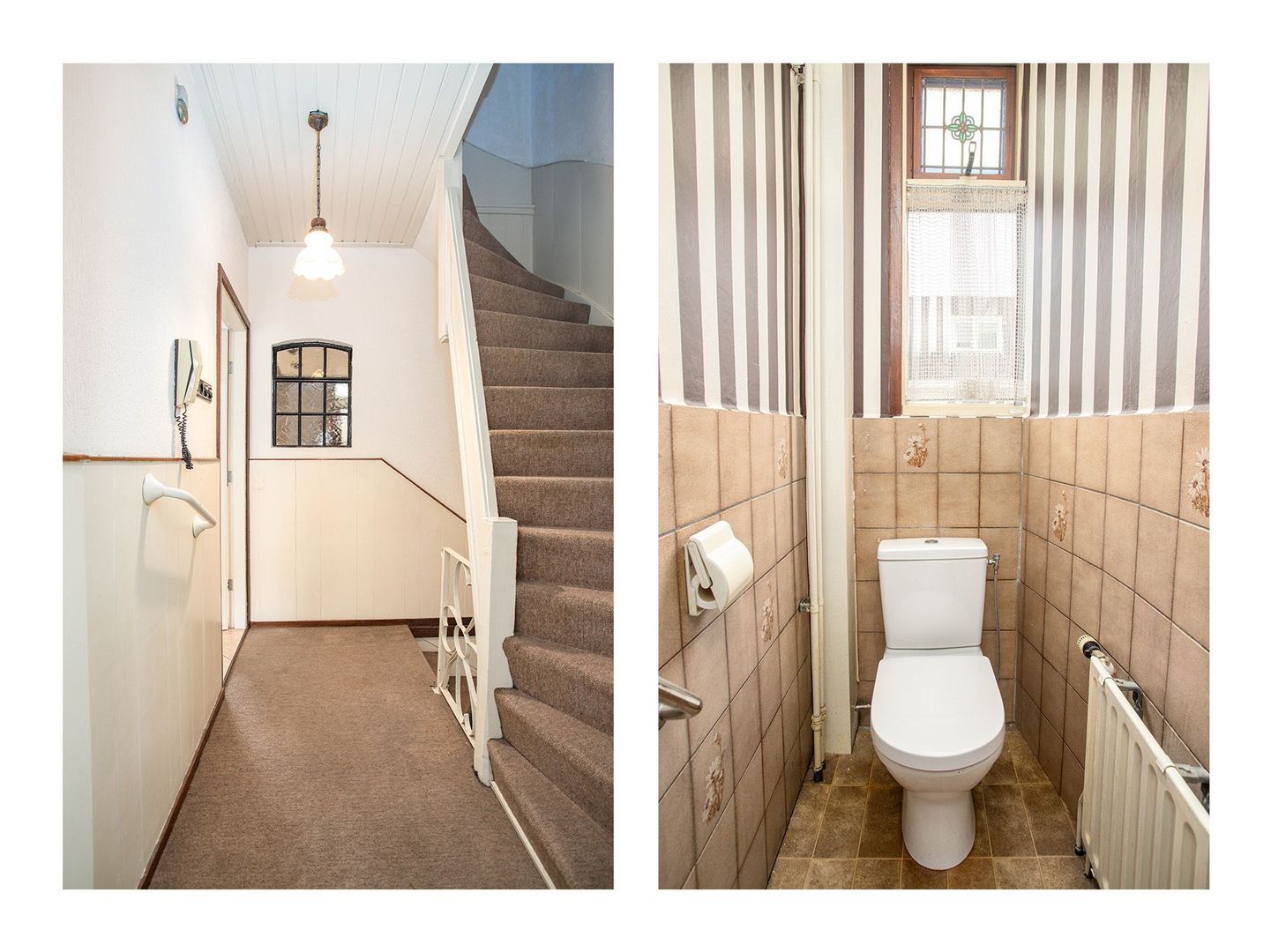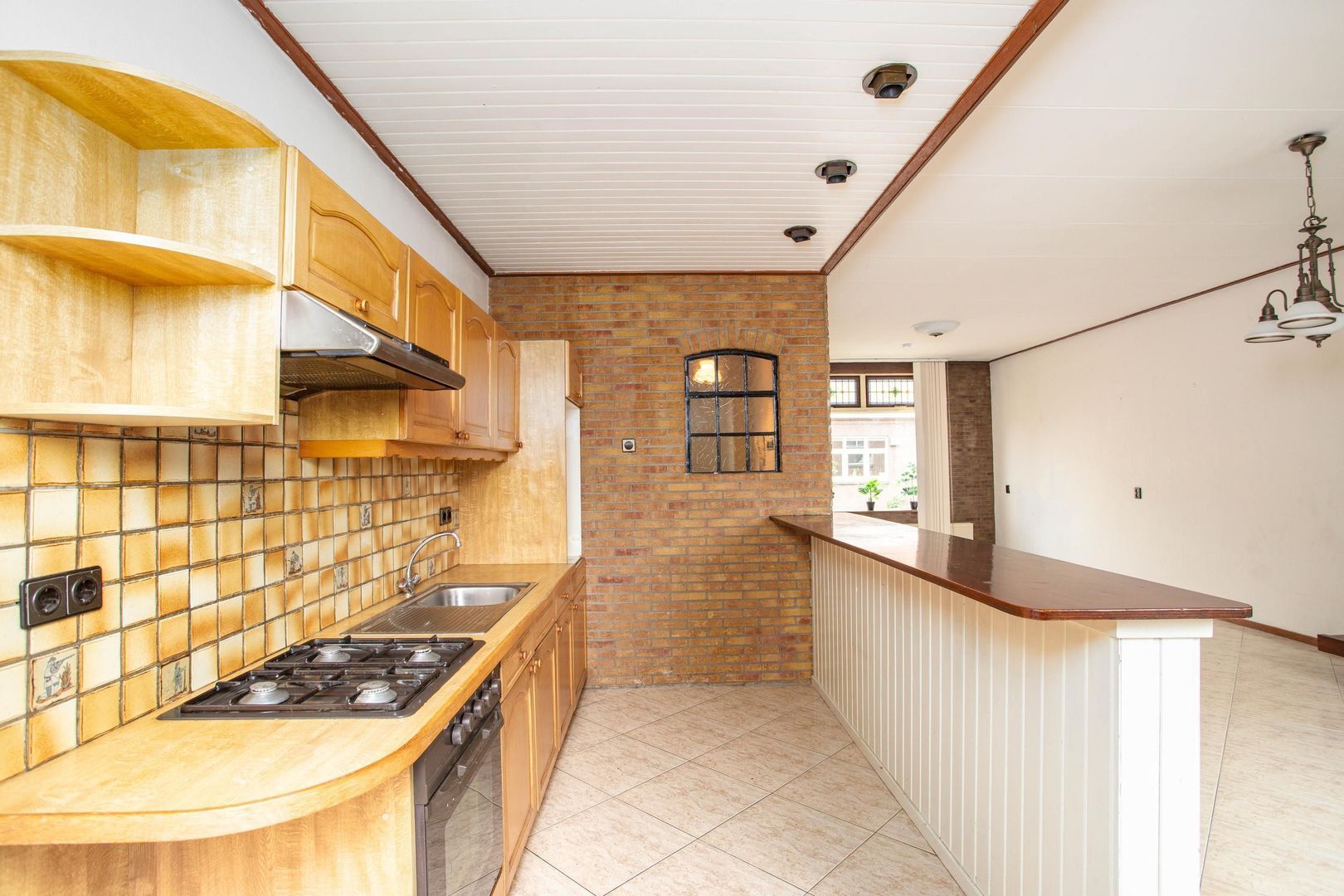 De overloop biedt toegang tot de woonkamer, het toilet en de trapopgang. De woonkamer, met veel authentieke details waaronder een open haard, is ruim en biedt diverse indelingsmogelijkheden voor een gezellige zit- en eethoek. De open keuken is voorzien van inbouwapparatuur en een sfeervolle bar die de keuken van de eetruimte scheidt. Zowel de deur als de schuifpui geven toegang tot het dakterras, gelegen op het zonnige zuidoosten, waar je heerlijk van de buitenlucht kunt genieten.