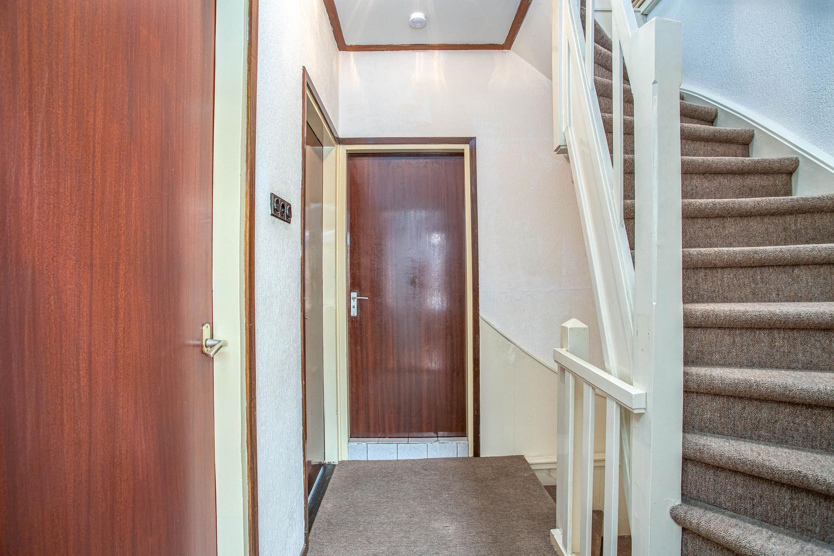 De garage en de entree van de woning zijn beide toegankelijk via de straat. Zowel de openslaande deuren als de deur in de entree bieden toegang tot de garage, die veelzijdig gebruikt kan worden, bijvoorbeeld als opslagruimte of werkplaats. De eerste verdieping is bereikbaar via de trap in de entree.