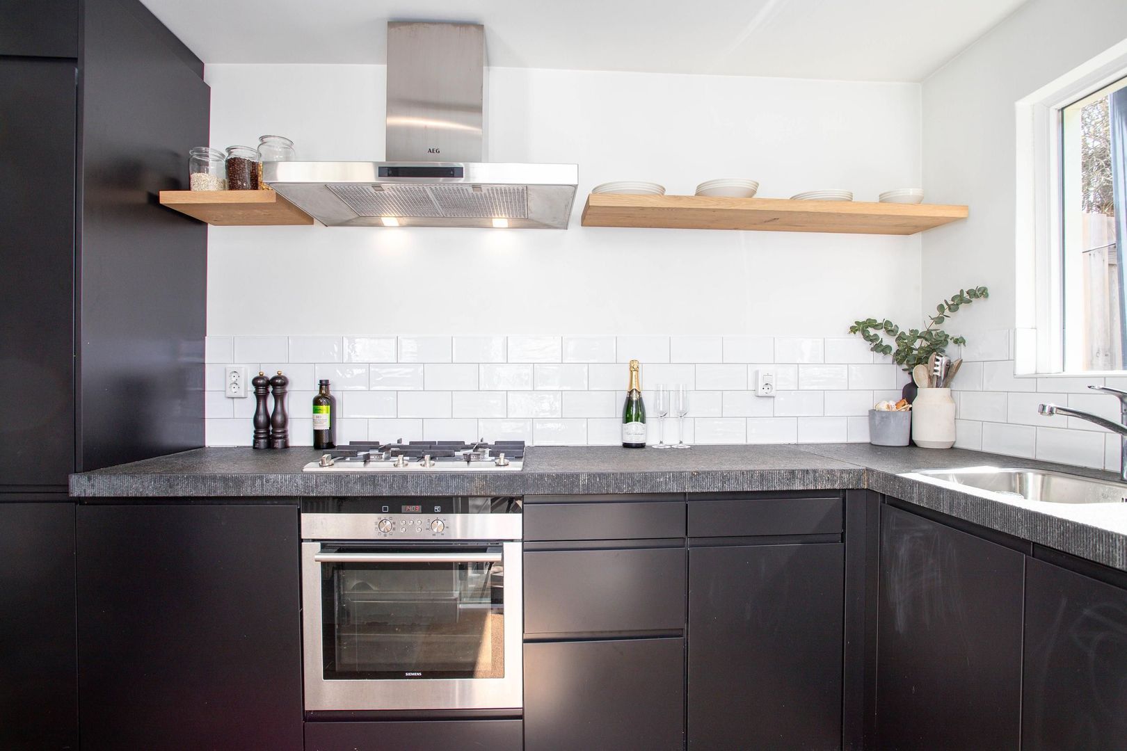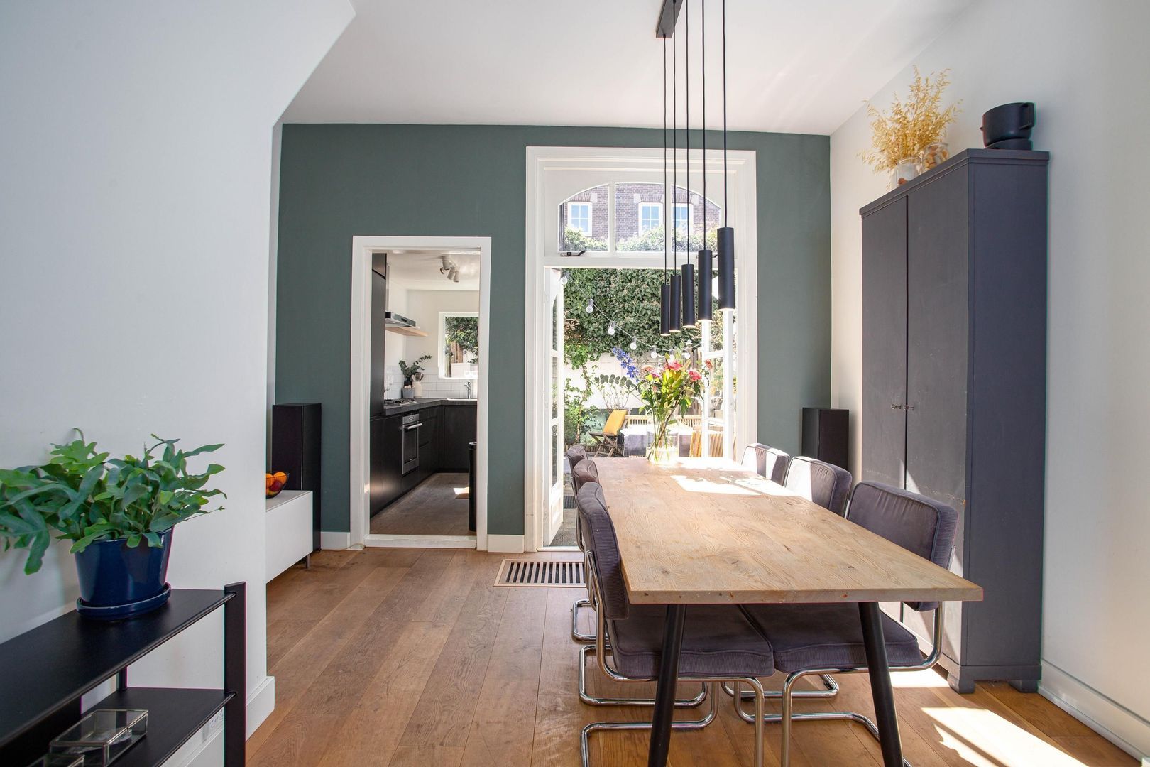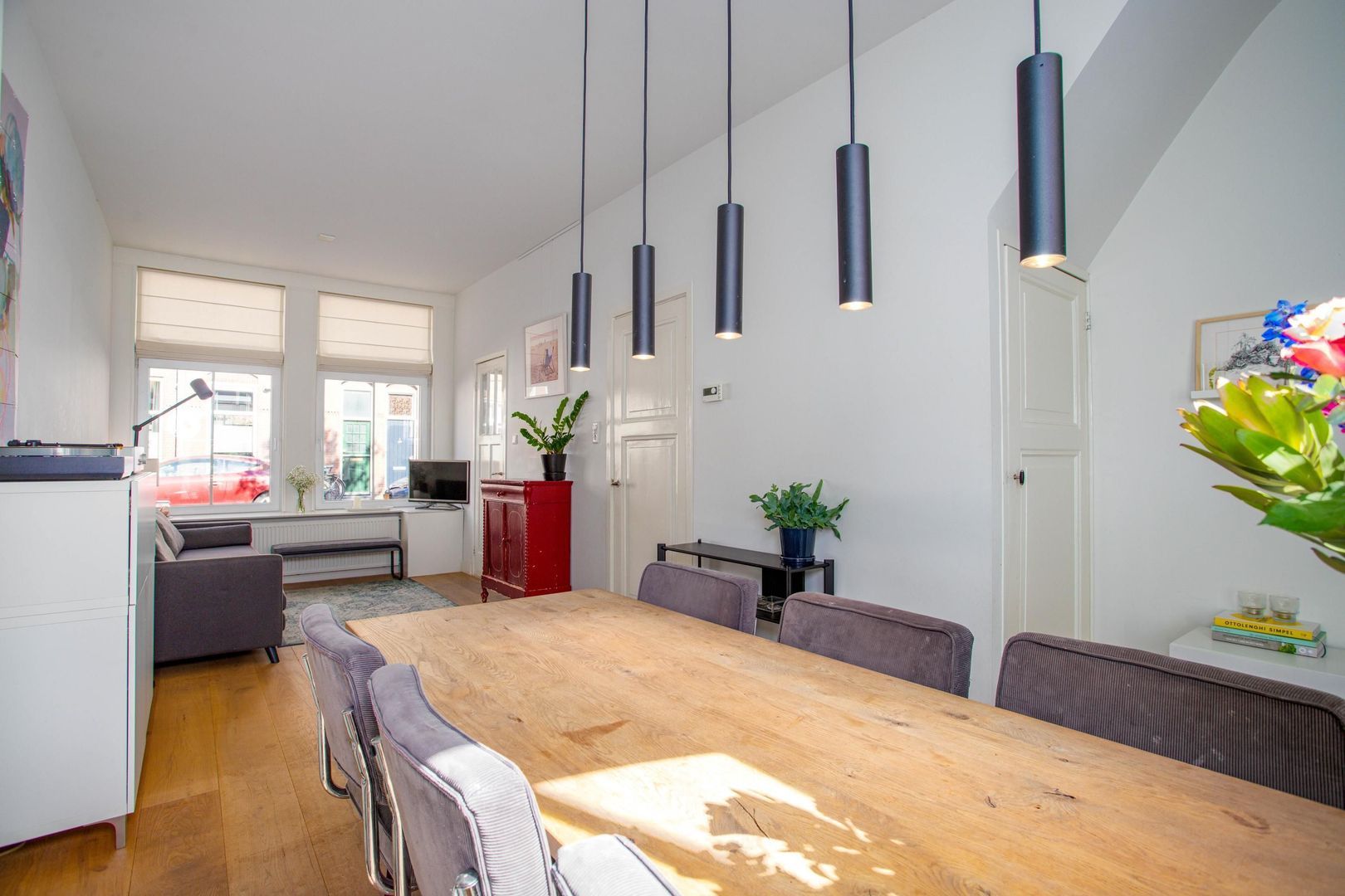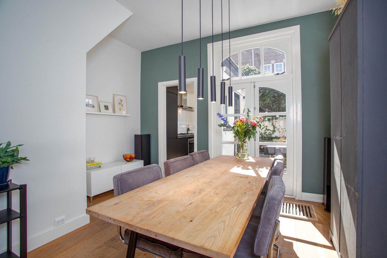 Je betreedt de woning met charmante voorgevel via de voordeur met aan de bovenzijde een karakteristiek glas-in-lood raam en komt in de hal. Via de hal heb je direct toegang tot de woonkamer. De woonkamer is momenteel ingedeeld met een zithoek aan de voorzijde en een eetkamer aan de achterzijde van de woning. In de woonkamer bevindt zich een extra deur die toegang geeft tot het toilet en de eerste verdieping. De eetkamer is een heerlijke plek om te dineren met zicht op de tuin. De halfopen keuken heeft zwarte kasten met zilveren details. De keuken beschikt over de volgende inbouwapparatuur: koelkast, vriezer, combi-oven, 4-pits gaskookplaat, afzuigkap en vaatwasser. De achtertuin is te bereiken via de openslaande deuren in de eetkamer en de deur in de keuken. De groene stadstuin heeft een goede ligging op het zuidwesten en biedt ruimschoots plaats voor een eettafel en zithoek.