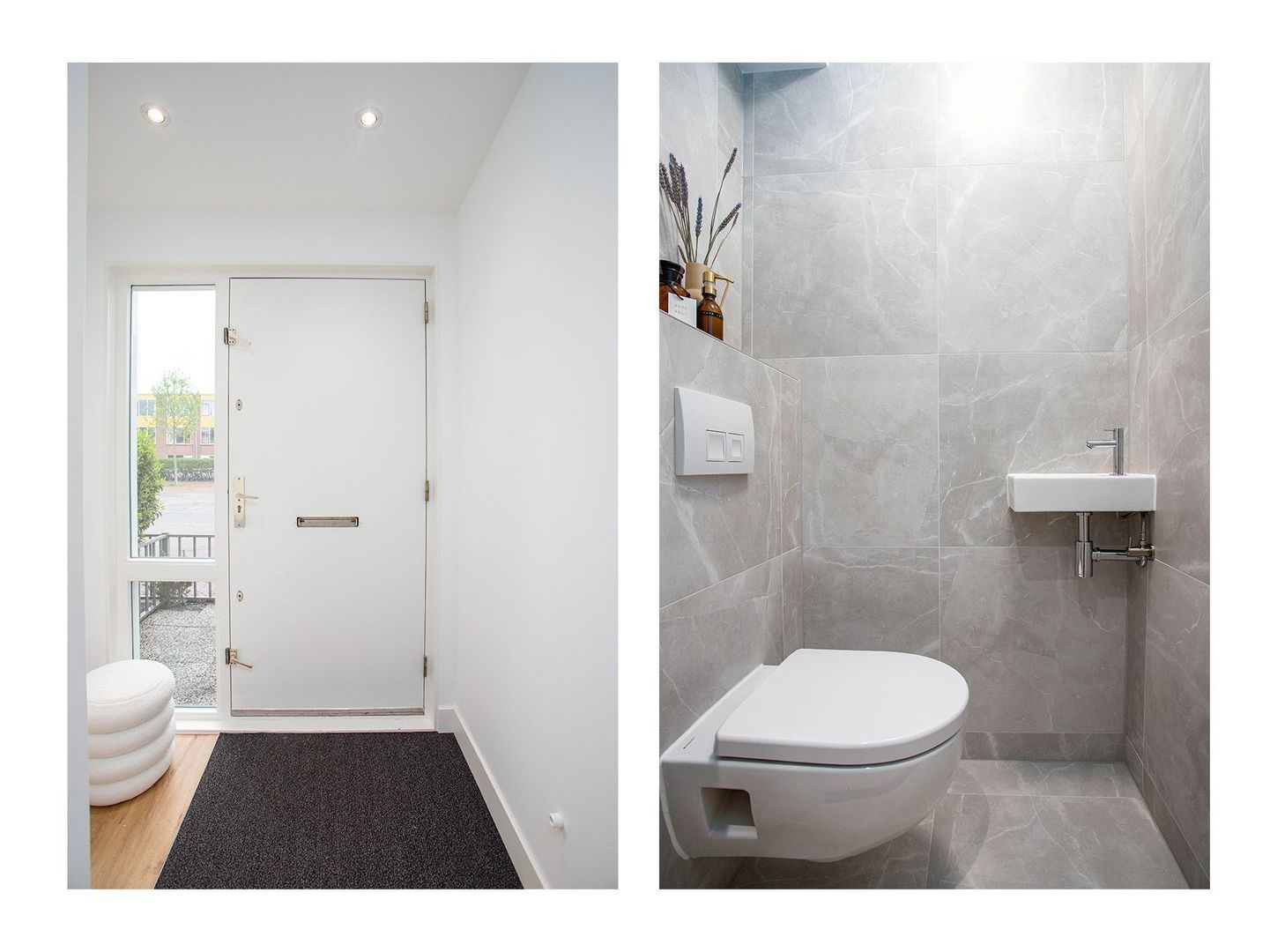 Dankzij de ligging aan de Amerhof is er een vrije ligging aan de voorzijde. Via de voortuin bereik je de entree van de woning waar de modernisatie gelijk wordt ervaren. De vernieuwde vloer-, wand- en plafondafwerking geeft de indruk van een nieuwbouwwoning. De hal, met fraaie inbouwspots, geeft toegang tot de bergkast, het vernieuwde toilet met fontein en de woonkamer.