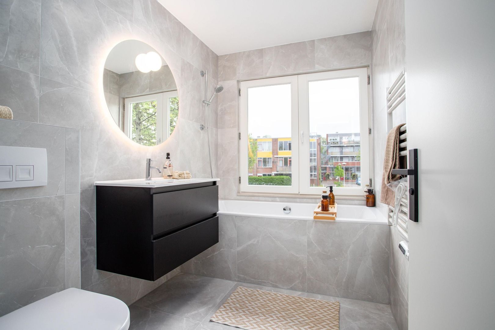 Vanuit de overloop heb je toegang tot de 3 slaapkamers, de badkamer en de trapopgang. De slaapkamers zijn alle 3 zeer geschikte slaapkamers, maar kunnen natuurlijk ook goed gebruikt worden als werk- en/of hobbykamer. De moderne badkamer heeft grijze marmeren tegels en is voorzien van een ligbad/douche, toilet en een wastafel met wastafelmeubel en spiegel met ledverlichting.