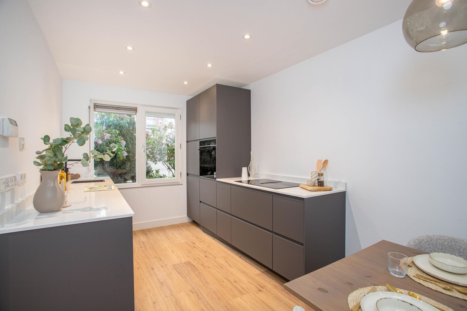 In de afgelopen periode is de woning met zorg en smaak gemoderniseerd. De beelden spreken voor zich maar we zullen je in het kort meenemen wat je van het huis mag verwachten. De woonverdieping, voorzien van vloerverwarming, is efficiënt ingedeeld en voorzien van een luxueuze keuken aan de voorzijde. Alle denkbare inbouwapparatuur zoals een combioven, inductiekookplaat met ingebouwd afzuigsysteem, Quooker, vaatwasser en koel/vrieskast zijn aanwezig. De tuingerichte zitkamer is ruim opgezet en biedt toegang naar de zonnige achtertuin via de loopdeur of schuifpui. Dankzij de diepte van de tuin en de ligging op het westen is de zon er vanaf de ochtend tot avond te vinden, uiteraard bereikbaar via een achterom en voorzien van stenen berging. Verder kenmerkt de begane grond zich door het strakke stucwerk op wanden en plafond en de aanwezige inbouwspots en is er inmiddels een fraaie glazendeur tussen de woonkamer en hal toegevoegd.