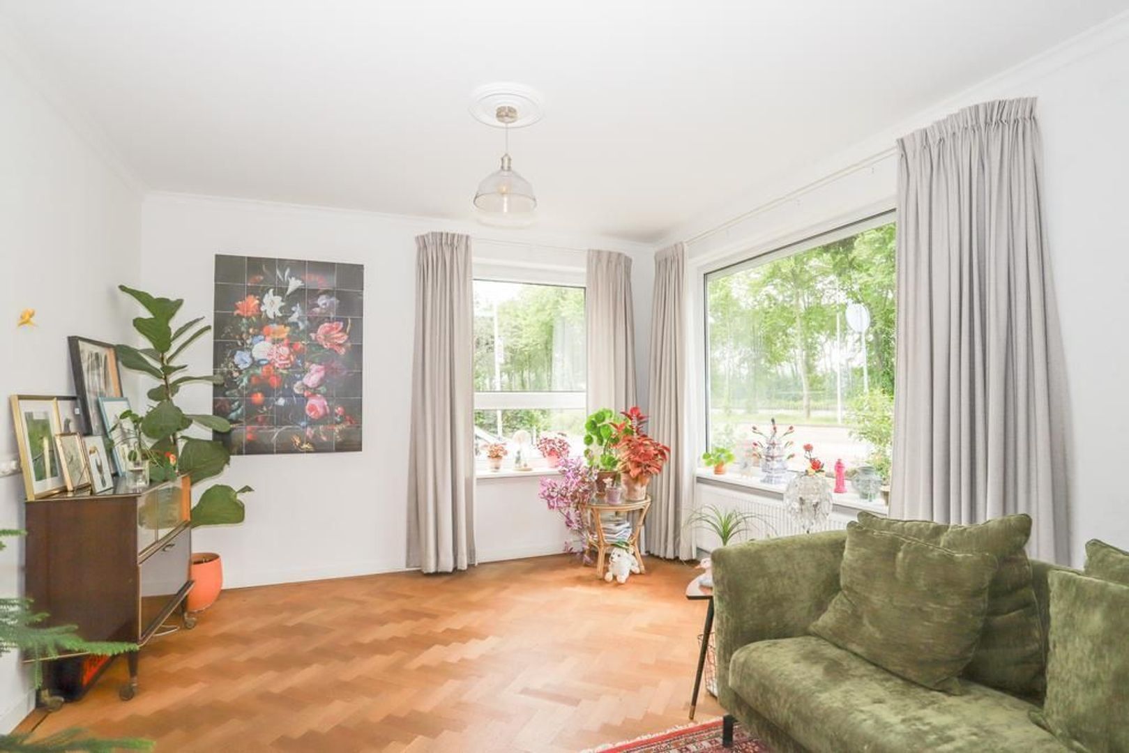 De royale woonkamer is gelegen aan de voorzijde van de woning en is voorzien van een inbouwkast. De ruimte is heerlijk licht en praktisch in te delen. De ruime eetkeuken is aan de achterzijde gelegen met uitzicht op de achtertuin. De keuken is in 2016 gerenoveerd en voorzien van een nieuwe betonnen fundering. De L-vormige keuken biedt voldoende werkblad en opbergruimte. Hij is voorzien van inbouwapparatuur zoals 6-pits gasfornuis, afzuigkap, koelkast, vriezer en een vaatwasser. Er is nog voldoende plek voor een grote eettafel waar gezellig gedineerd kan worden.