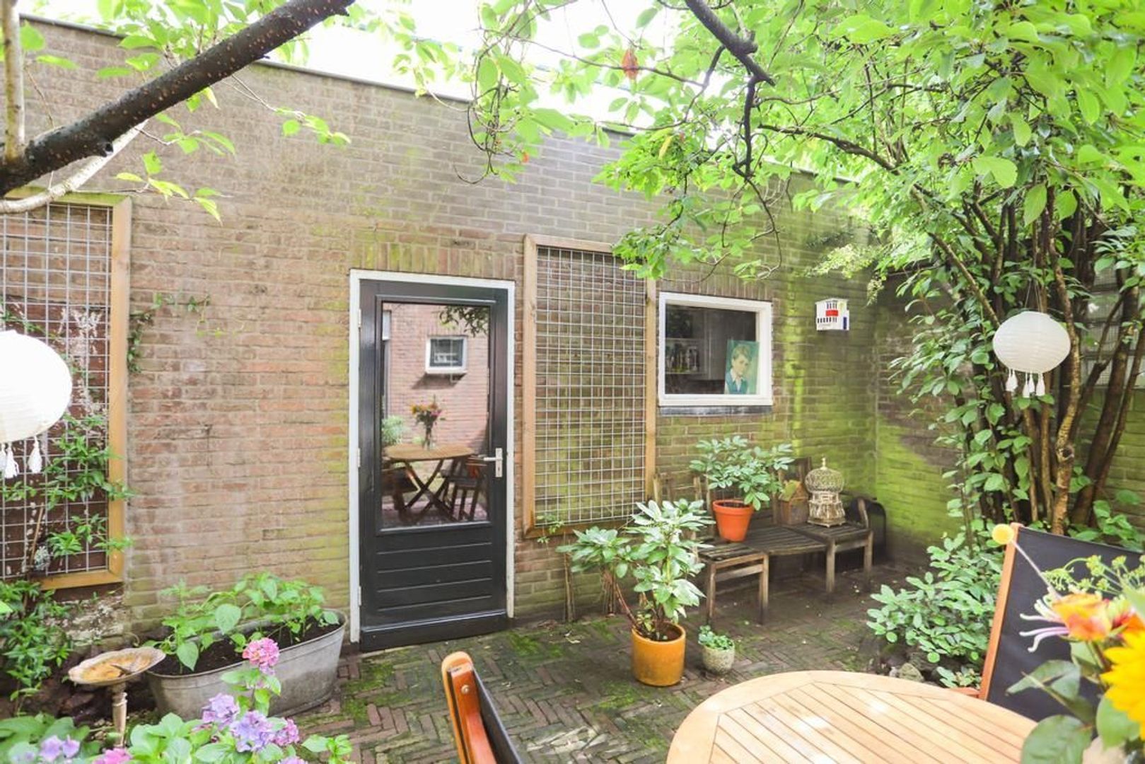 Via de deur is de fijne achtertuin te bereiken. De tuin is in 2019 aangelegd en voorzien van bestrating, verschillende plantenborders en een Japanse kers. Er is nog een ruime berging en een achterom aanwezig.