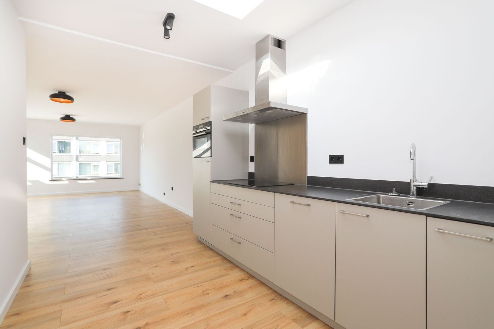 Het appartement is gelegen op de tweede woonlaag die middels een trap en via de galerij wordt bereikt. Na de voordeur is er een riante hal met toegang tot een praktische berg/stook- en wasruimte. De riante hal geeft toegang tot nagenoeg alle vertrekken en is net als de rest van de woning voorzien van een nieuwe en fraaie laminaatvloer met vloerverwarming. De hal is dermate ruim dat deze ook de mogelijkheid biedt om een werk/studeerruimte te creëren en geeft toegang tot de zeer royale woonkamer met half open keuken. Naast de grote omvang van deze ruimte is er een bijzonder prettig lichtinval dankzij de grote raampartijen. Vanuit de woonkamer is de half open keuken bereikbaar die is voorzien van diverse inbouwapparatuur waaronder een vaatwasser, combi-oven, kooktoestel en afzuigschouw.