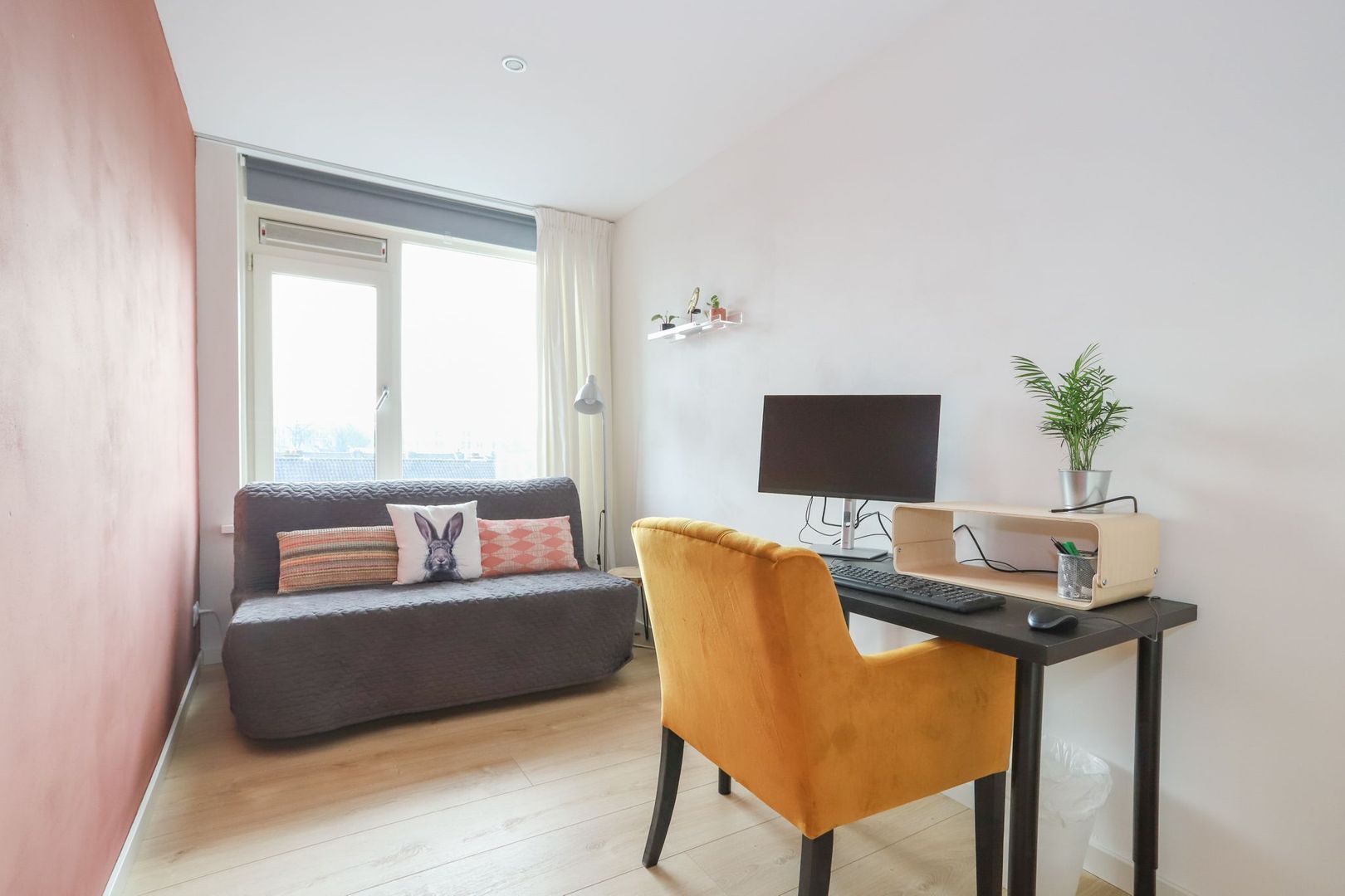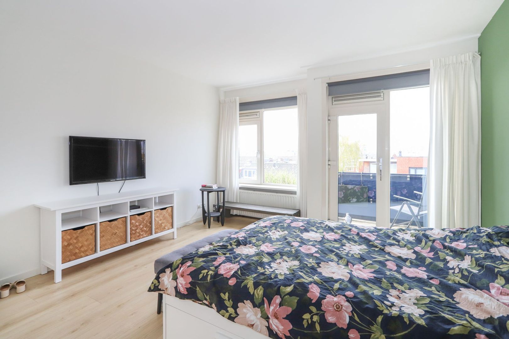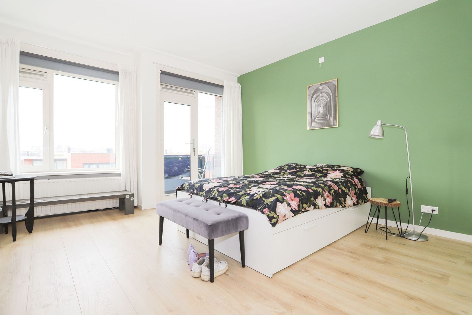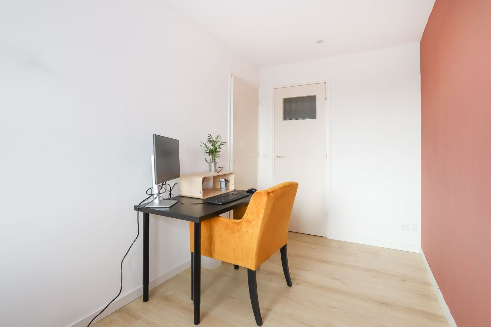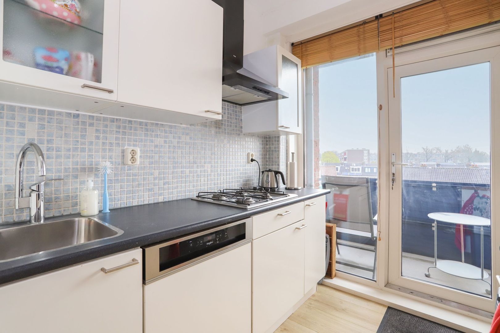 De royale woonkamer is heerlijk licht door de vele raampartijen. Hierdoor is het zowel in de winter als zomer fijn warm. D.m.v. van het zonnescherm kan de zon ook uit de woning blijven. De woonkamer is voorzien van strakke wanden en een nette laminaat vloer. Verder is de woonkamer praktisch in te delen met een fijne zithoek en een goede eethoek. De half open keuken is via de woonkamer toegankelijk en is voorzien van een net keukenblok met onder en bovenkasten die veel opbergruimte bieden. Verder is de keuken voorzien van een 4-pitsgastoestel, afzuigkap (2021), vaatwasser (2021) en een koel-vriescombinatie (2022). Het tweede balkon is hier toegankelijk.