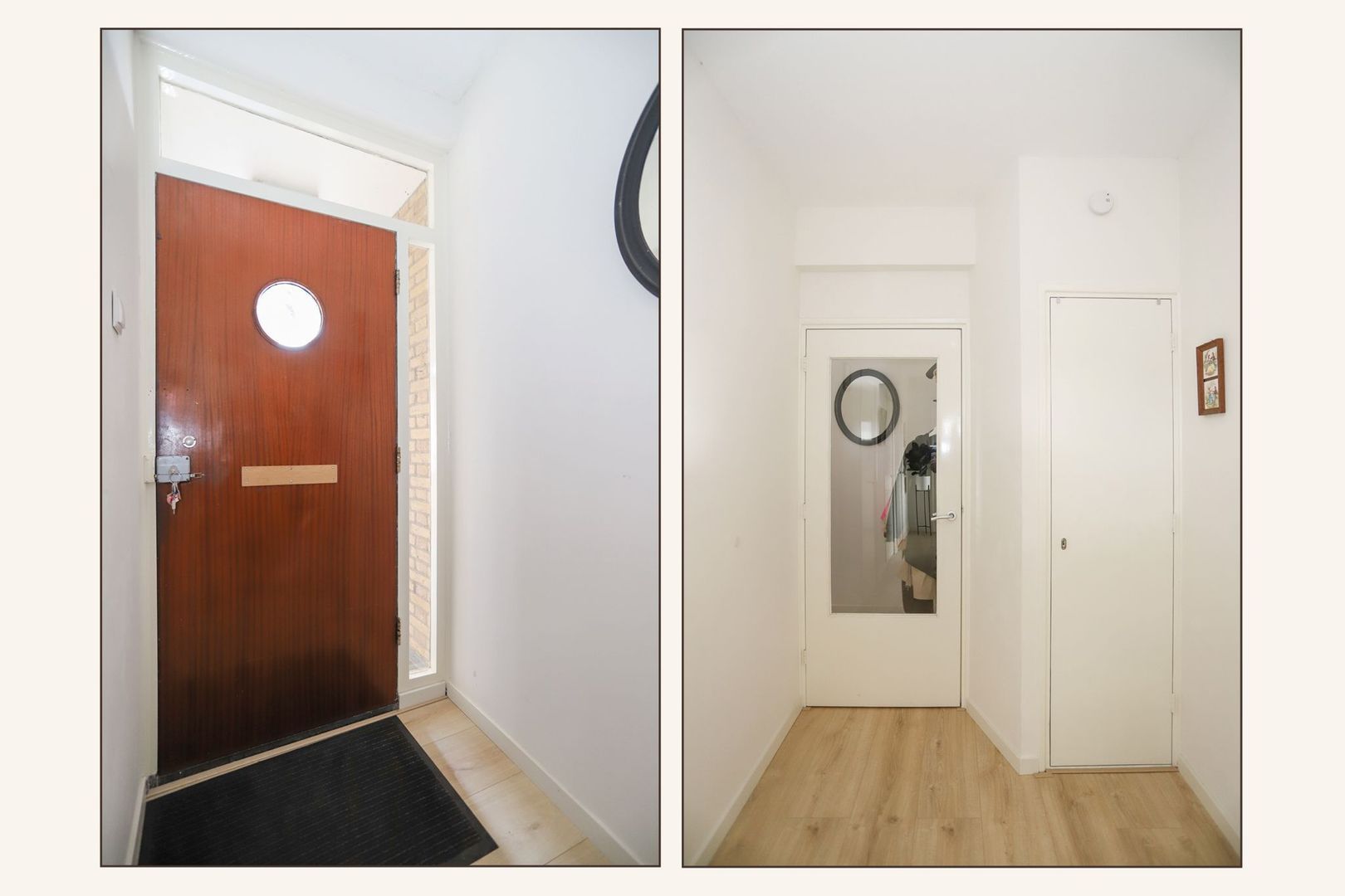Tweede verdieping: Entree. Ruime hal met meterkast en garderobe. De hal geeft toegang tot alle vertrekken. Zoals het separate toilet, de wasruimte met wasmachine aansluiting, de verzorgde badkamer die voorzien is van een douche en een wastafel met meubel. De twee ruime slaapkamers zijn verzorgd en de grote slaapkamer is voorzien van een balkon en inbouwkasten.