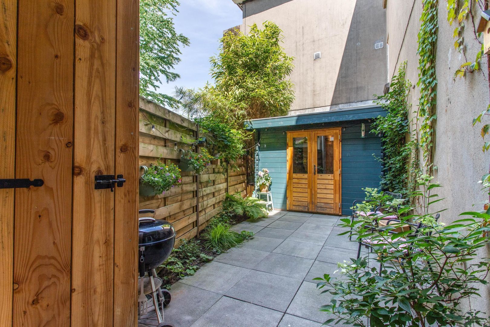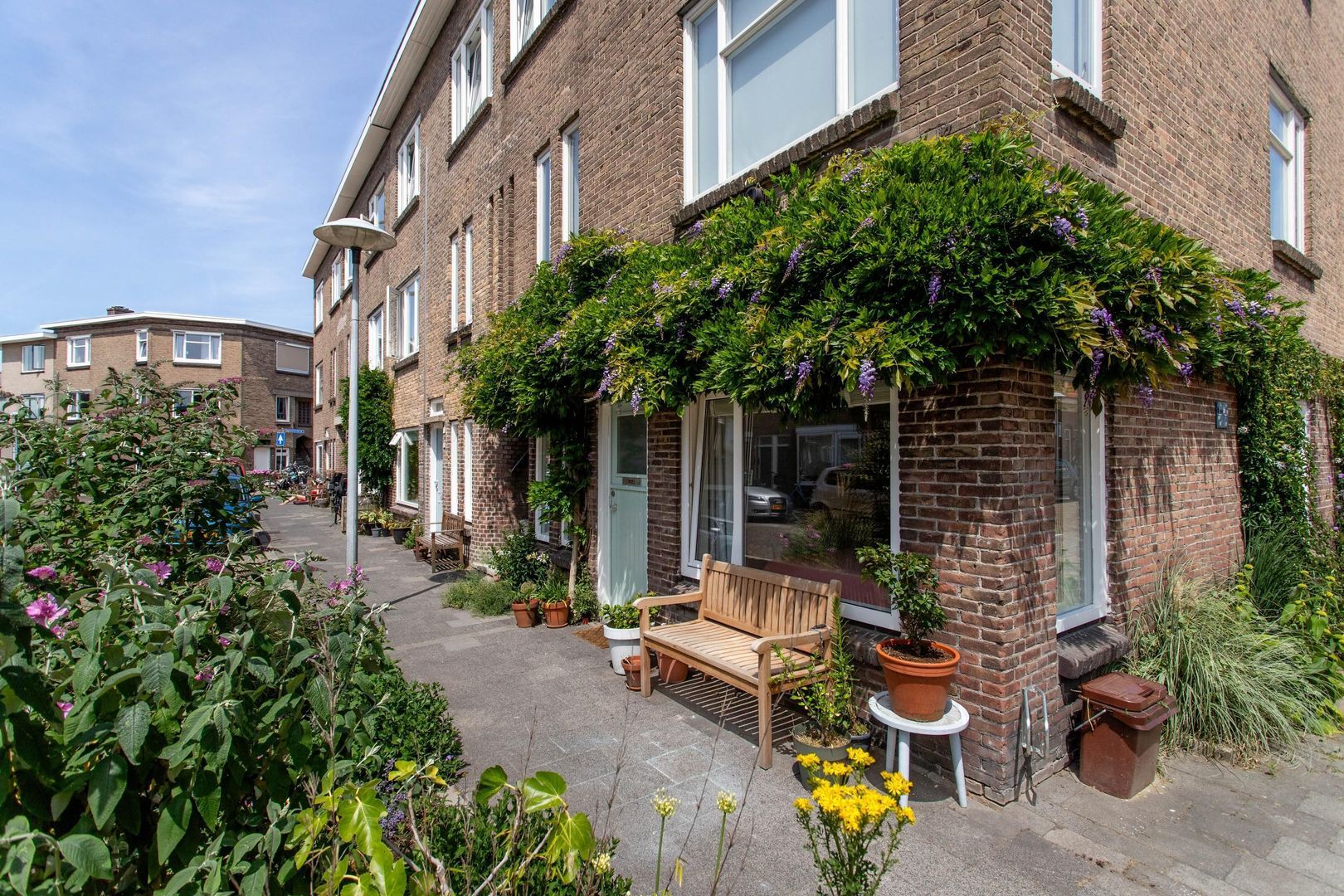Voor de heerlijke zomeravonden kan je aan de voorkant van het huis heerlijk borrelen in de zon. De fraaie stadstuin is met zorg onderhouden en geeft veel charme aan de woning.