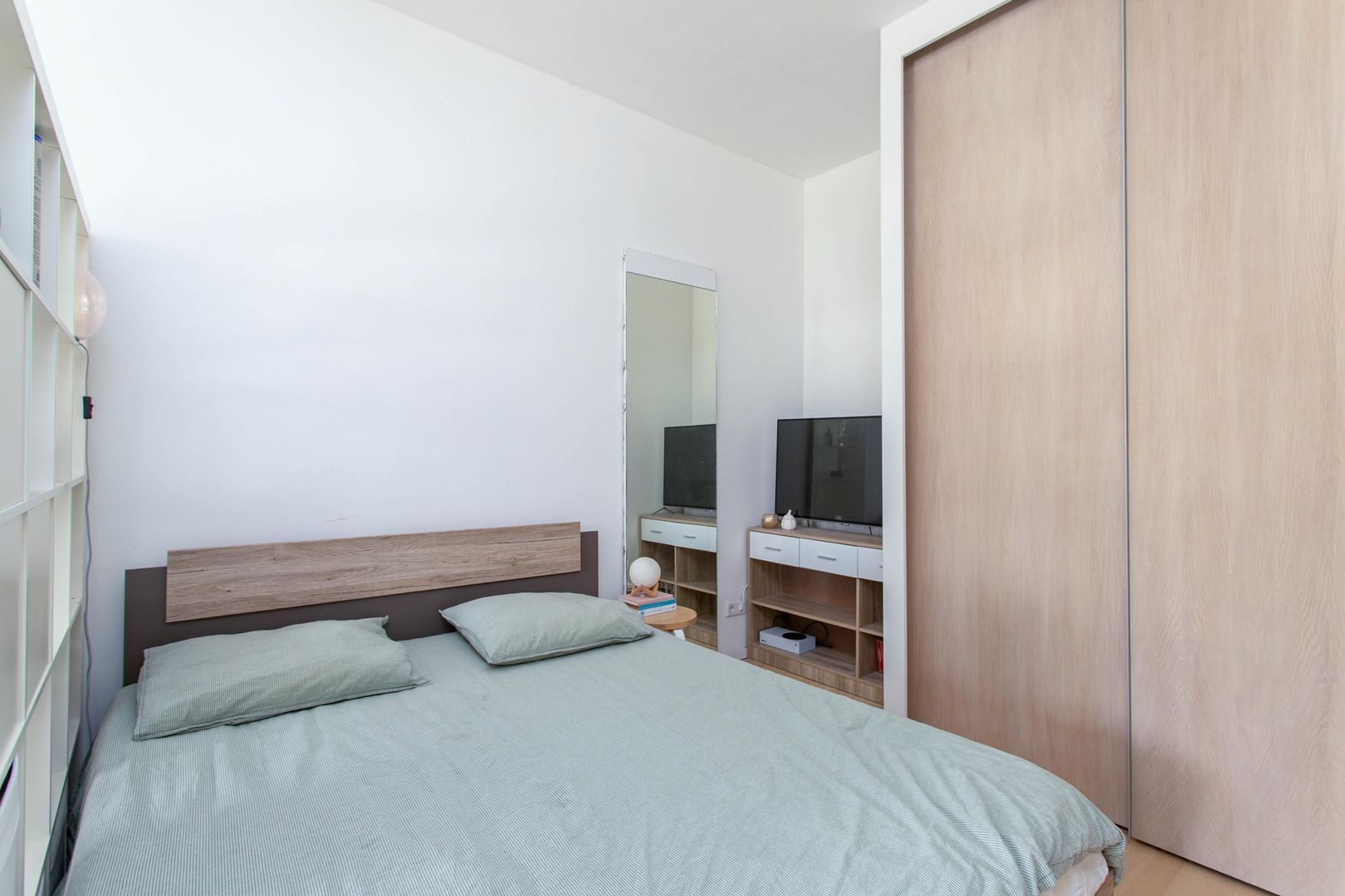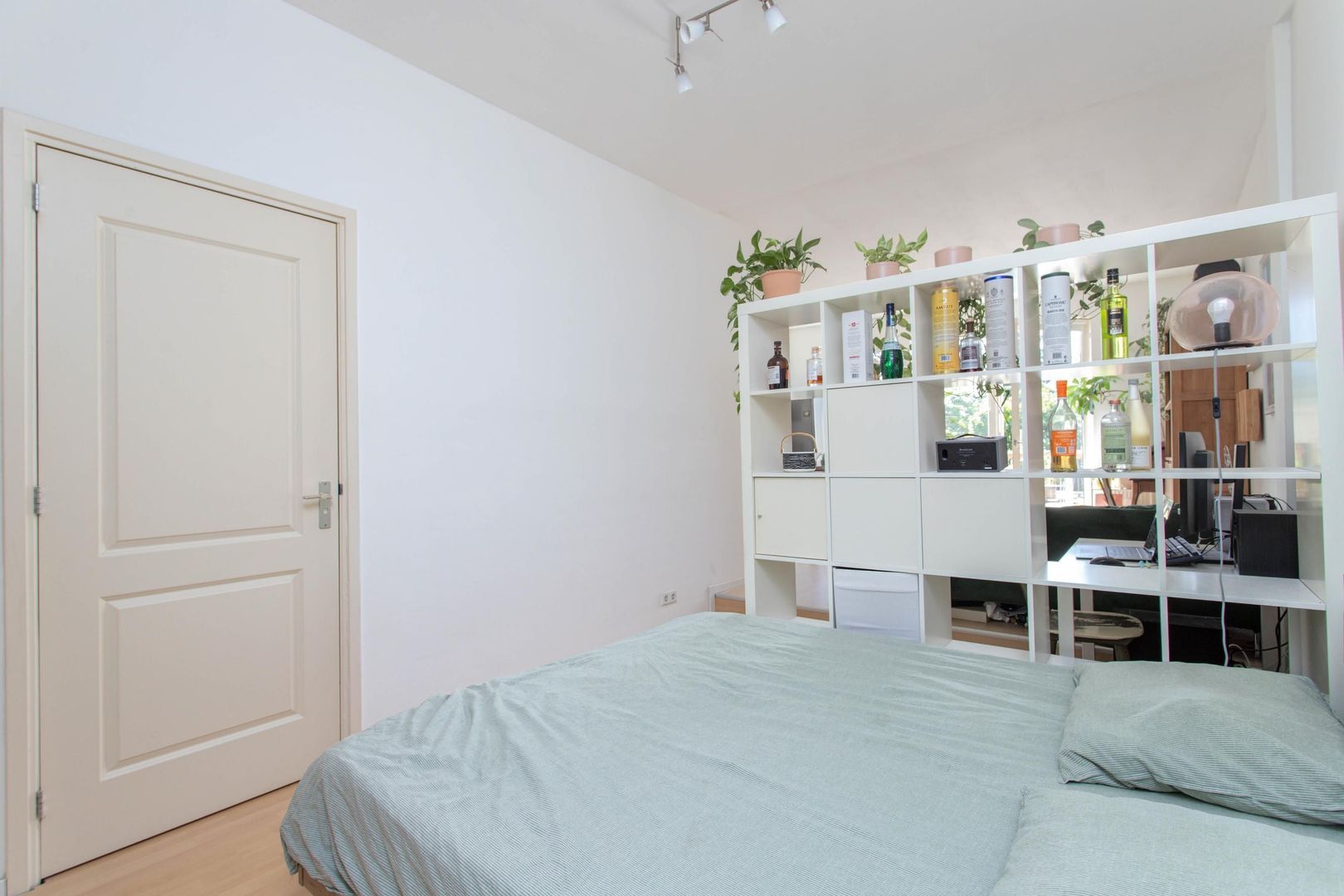Het slaapgedeelte bevindt zich aan de achterzijde van de woning en heeft een prettig formaat. Er is voldoende ruimte voor een tweepersoonsbed en een ruime kledingkast. Daarnaast is er een aansluiting aanwezig voor het plaatsen van een wasmachine.