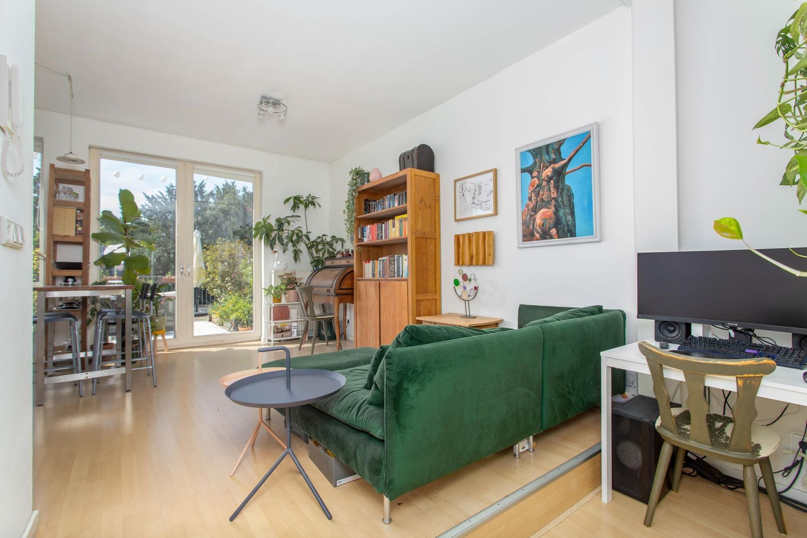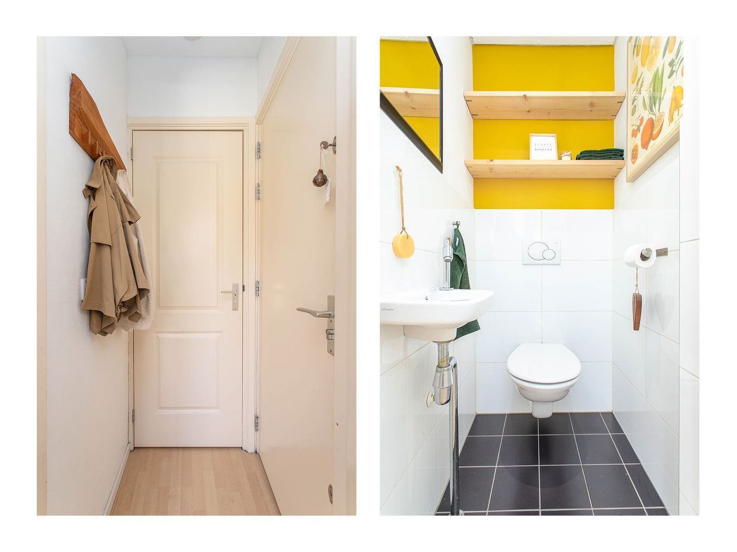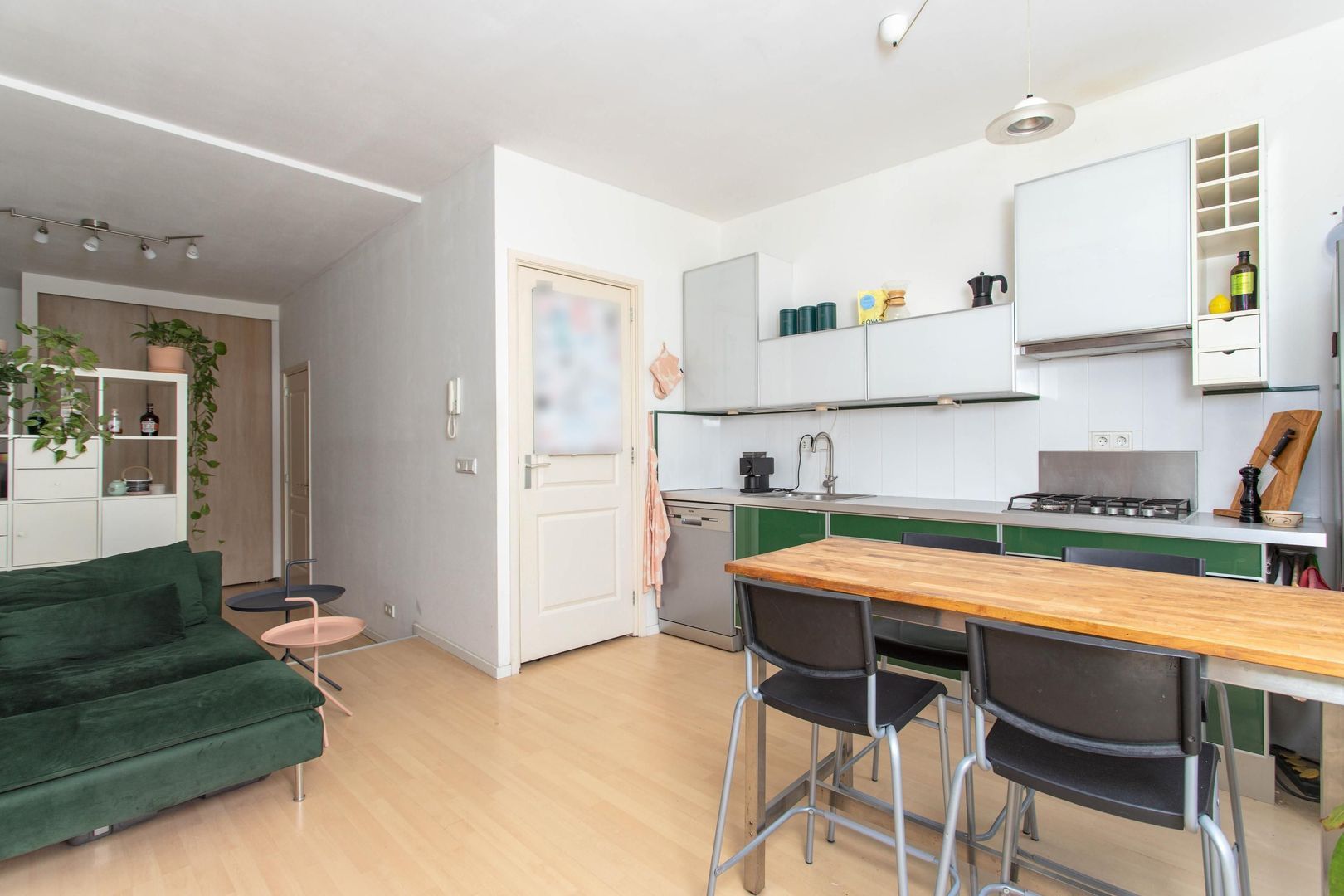 Via de gemeenschappelijke entree bereik je de woning. Vanuit de hal heb je toegang tot het separate toilet en de woon-/eetkamer. De ruimte is efficiënt ingedeeld, waardoor er voldoende plek is voor zowel een comfortabele zithoek als een royale eettafel.