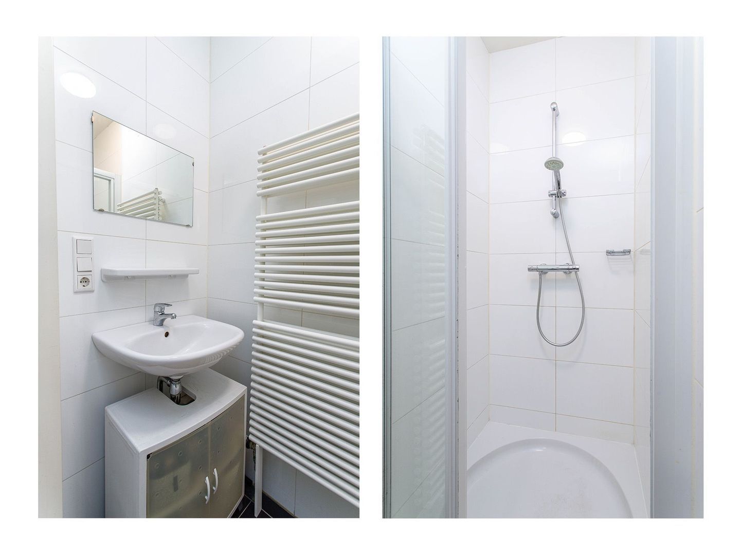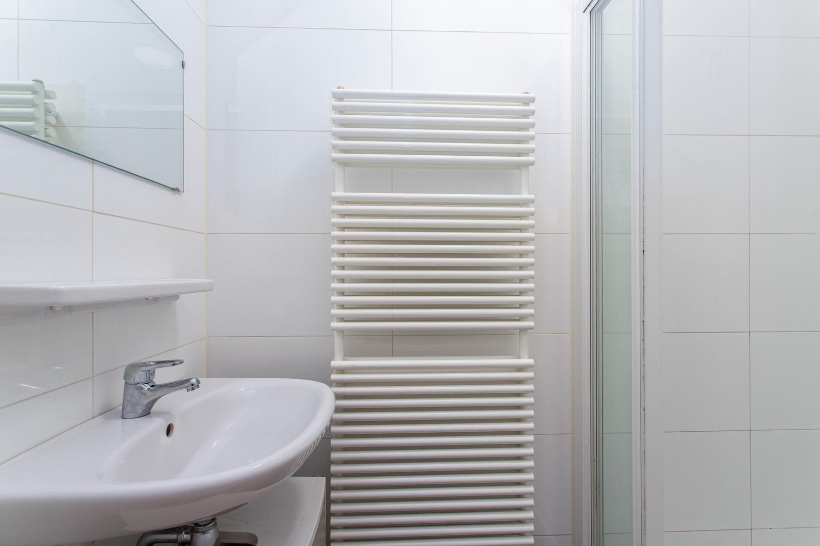Tot slot is vanuit de slaapkamer de badkamer bereikbaar. Deze is praktisch ingericht en voorzien van een douche en een wastafel.