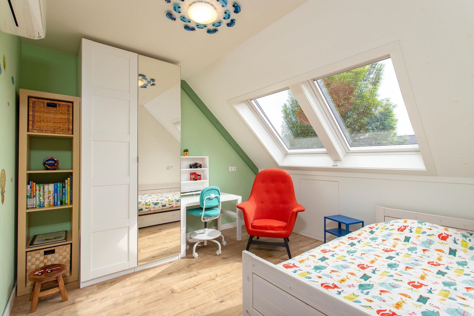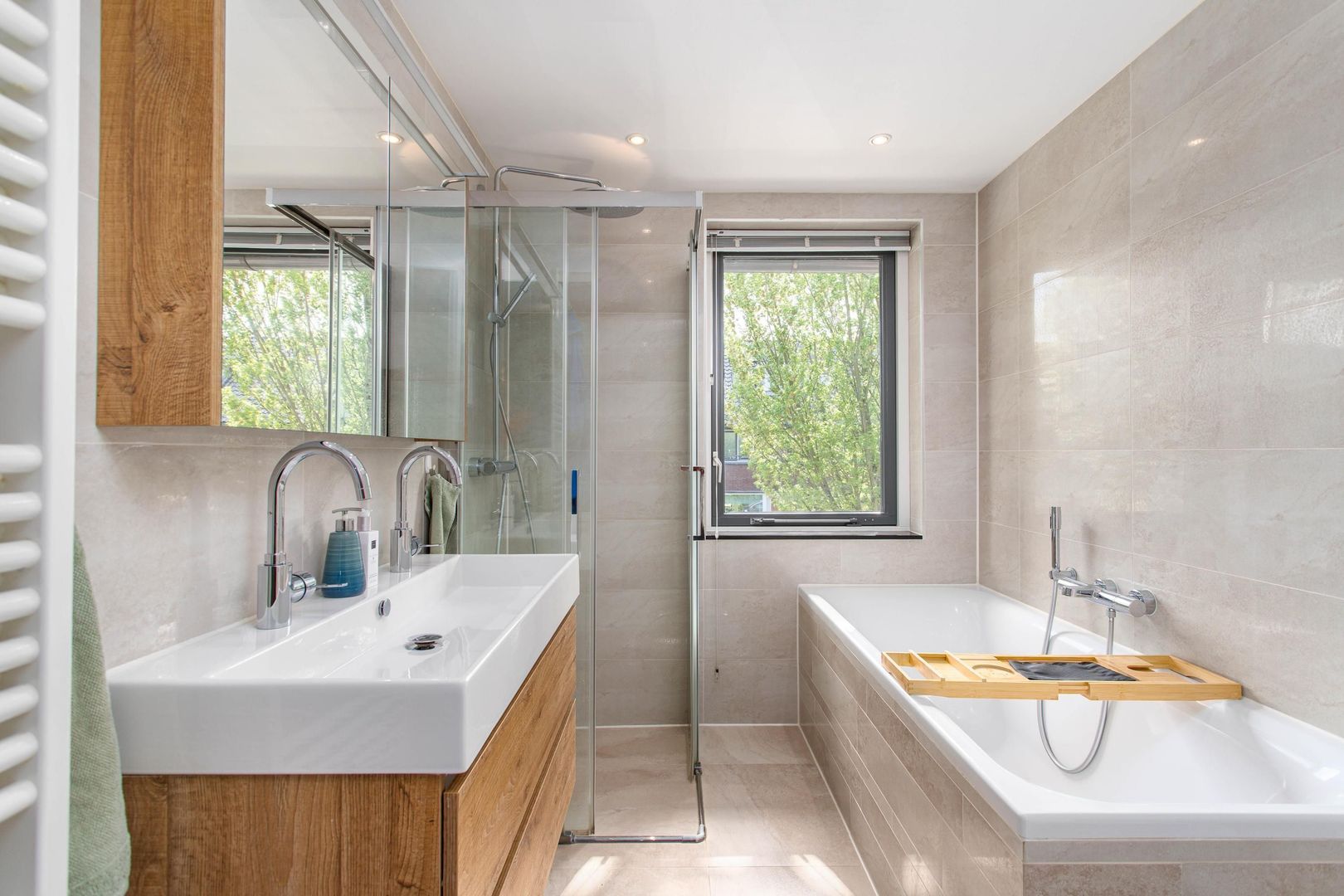 Vanaf de overloop zijn de drie slaapkamers bereikbaar van ieder een eigen formaat maar allen zeer bruikbaar als slaap- of werkkamer. De badkamer is in de afgelopen jaren vernieuwd en voorzien van fraai tegelwerk. Dankzij een doordachte indeling is er ruimte ontstaan voor zowel een ligbad, separate inloopdouche, toilet en dubbele wastafel.