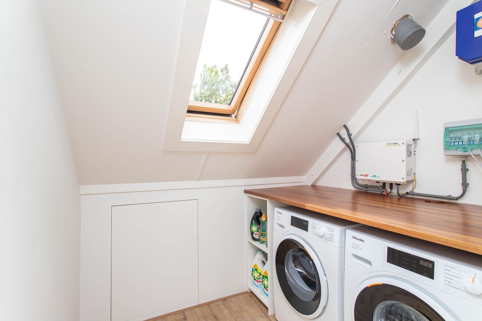 Voorzolder met wasruimte, bergruimte in de knieschotten en ruimte voor veelzijdig gebruik zoals een werkplek of speelhoek. Door het plaatsen van een dakkapel aan de achterzijde is het mogelijk geweest om nog eens twee slaapkamers te creëren waardoor de ruimte op deze verdieping is geoptimaliseerd. Tevens is er een ruime vliering te bereiken via de vlizo trap.